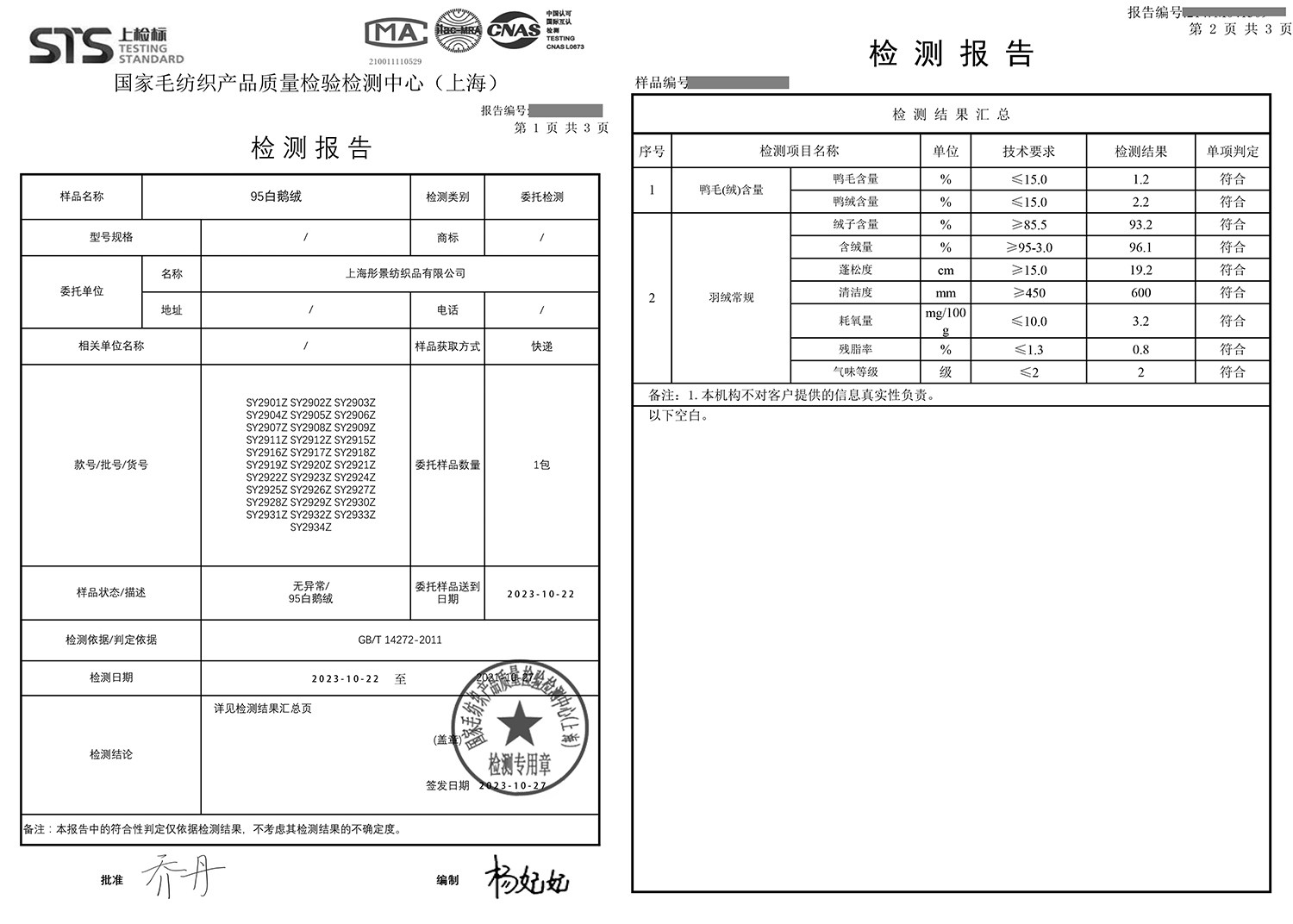 面料可以达到无胆防绒,防泼水,防风,防钻绒级别