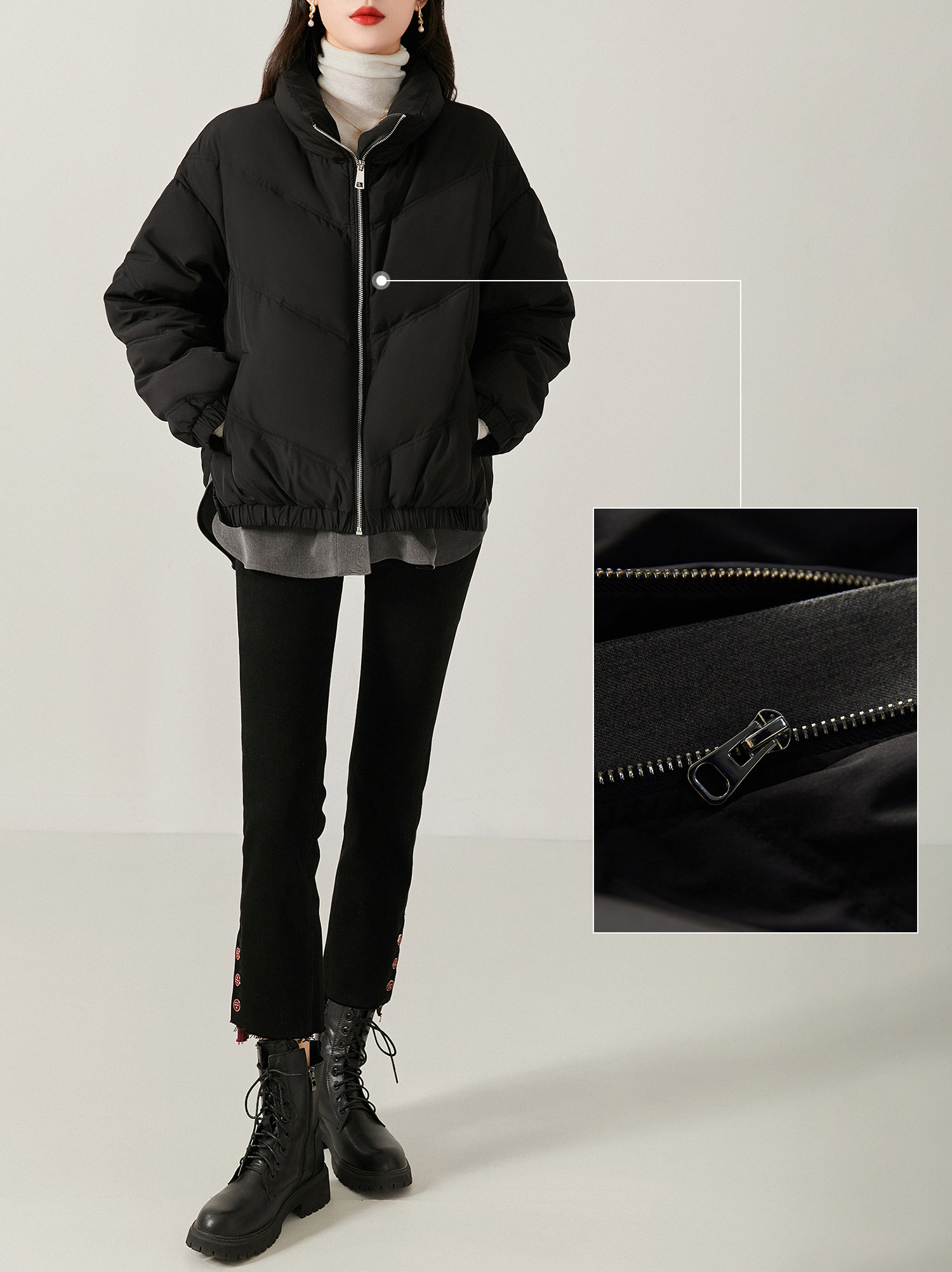 拉链开合流畅自如,节省日常穿搭时间