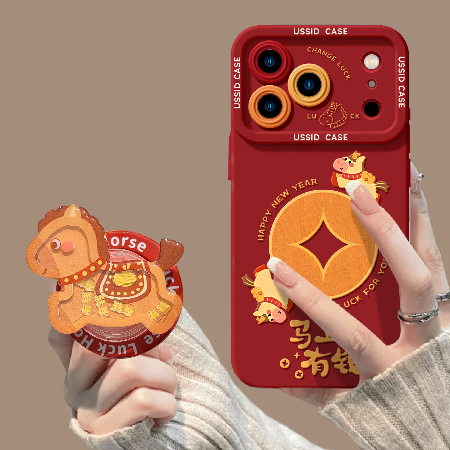 Uston Phone Case for Apple 17 Pro Max Red 13 Year of the Horse Limited Edition 16 Pro Stand 14 New Year 15 Silicone 12 Anti-Drop 11 Super Stylish Zodiac Year iPhone 17 Little Horse 2026