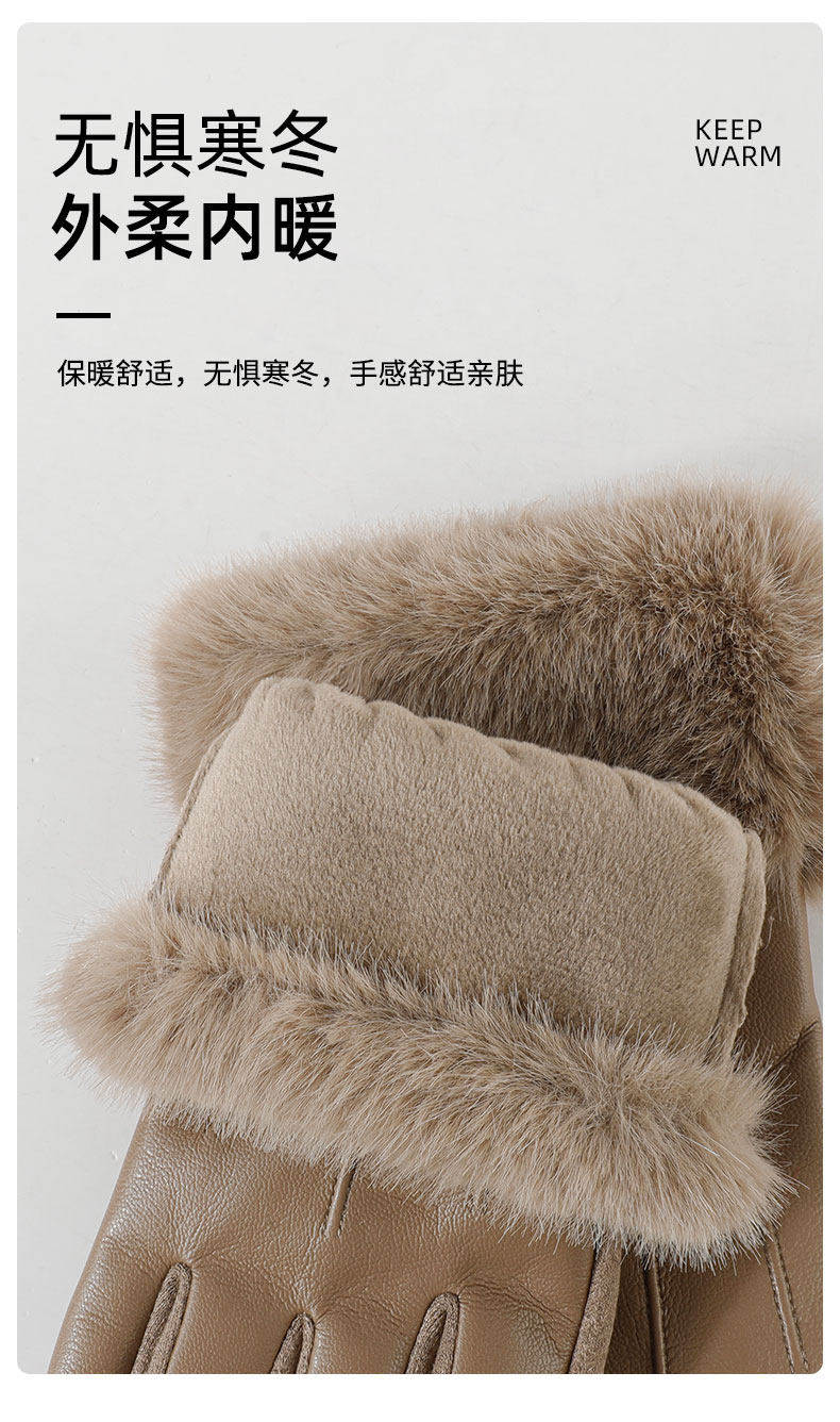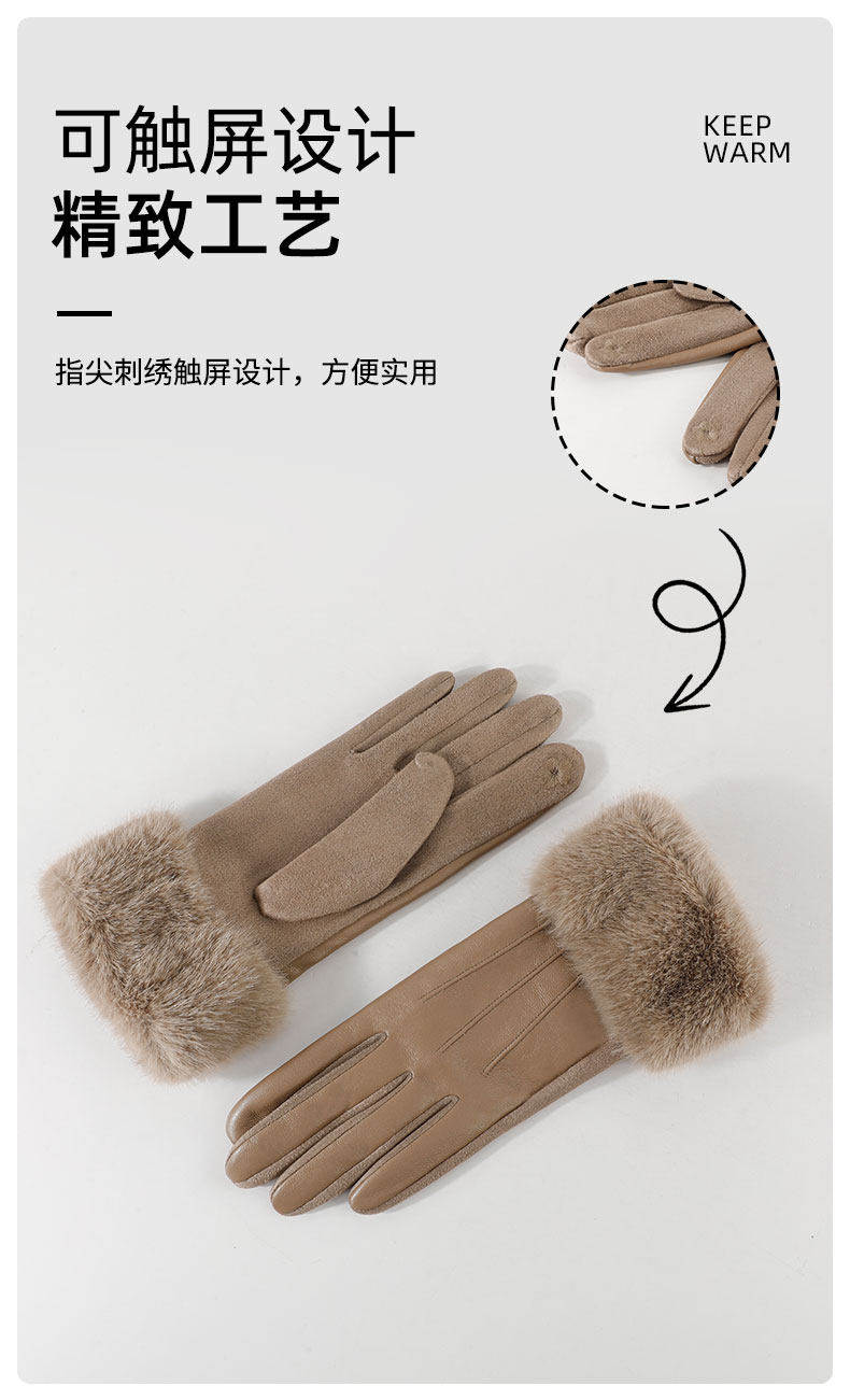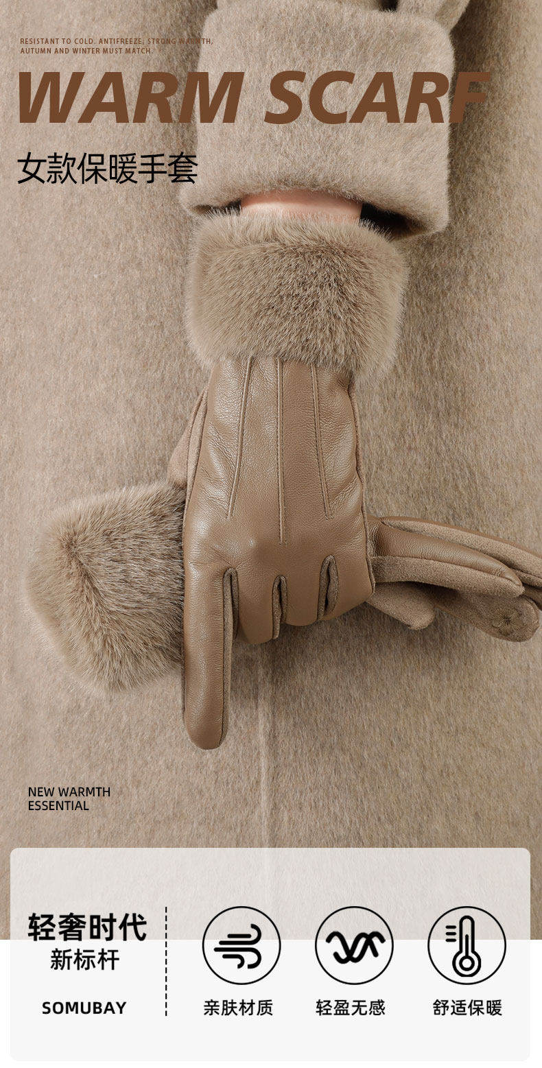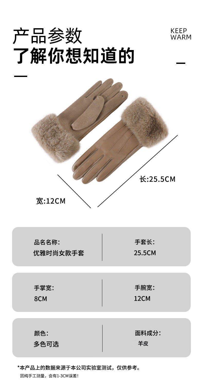Hong Kong Bng Sheepskin Gloves for Women, Winter Fleece-Lined, Cold-Proof, Suitable for Cycling and Driving, Touchscreen-Compatible, Windproof Outdoor Gloves