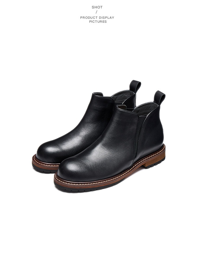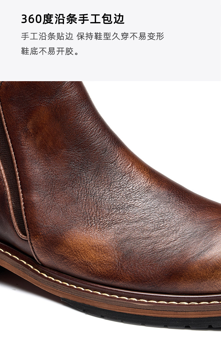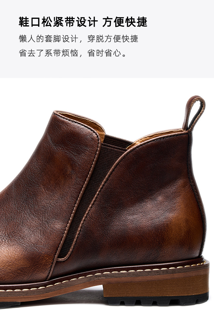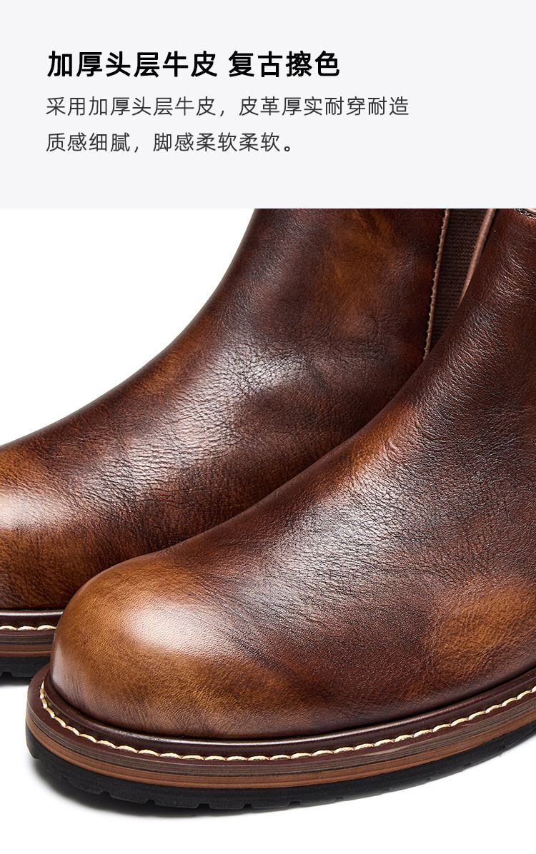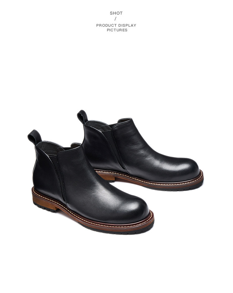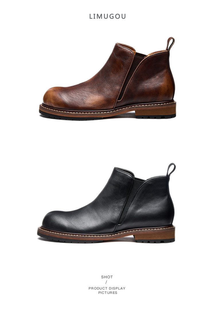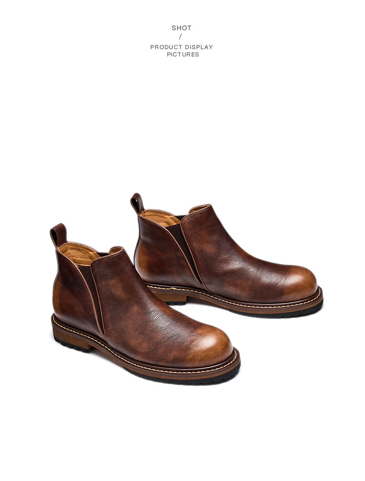 Chelsea Boots for Men, Retro British Style, Genuine Leather Mid-Top Martin Boots, Winter Fleece-Lined Men's Round-Toe Slip-On Short Boots