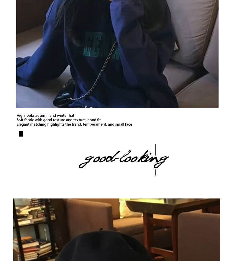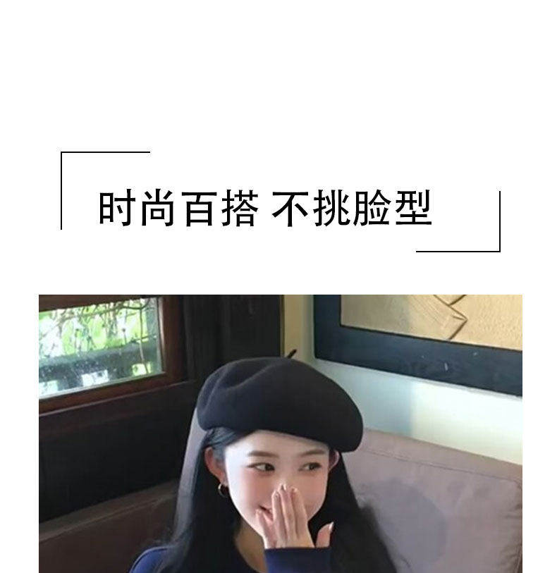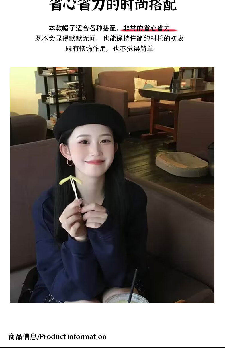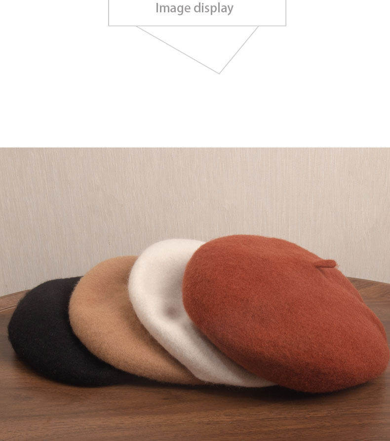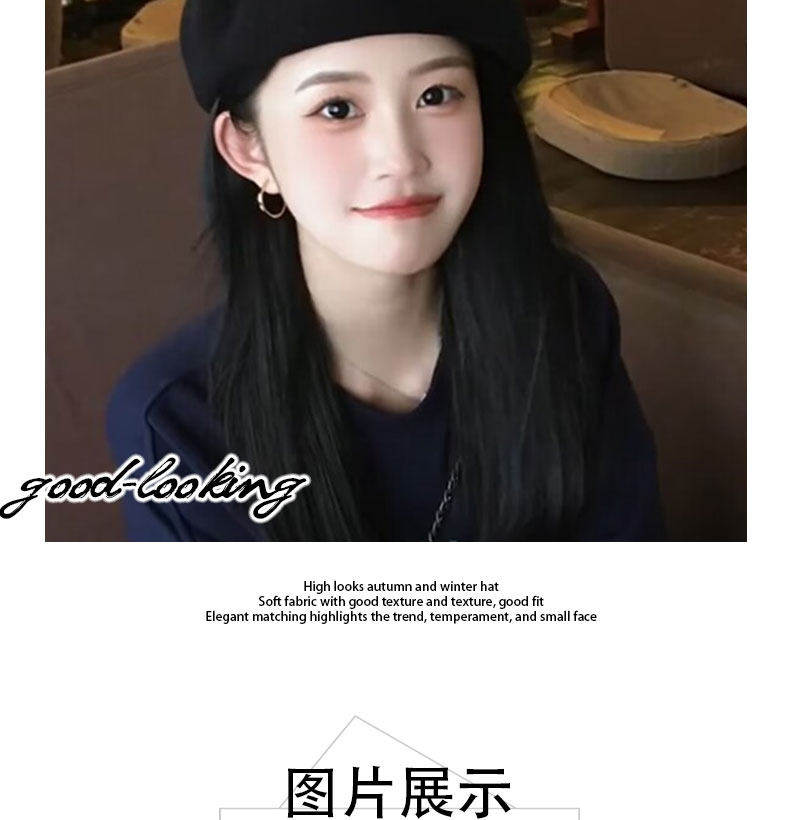 Hong Kong Bng Wool Beret Hat for Women, Autumn and Winter, Black Versatile Artist Hat, Face-Slimming, Preppy Style Beret Hat for Women