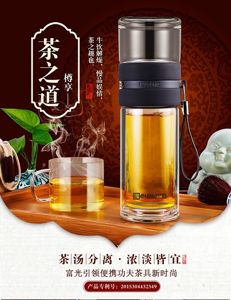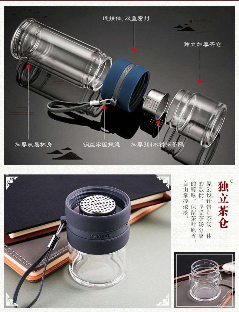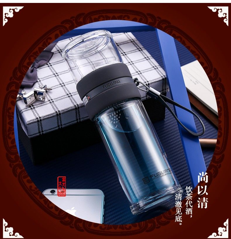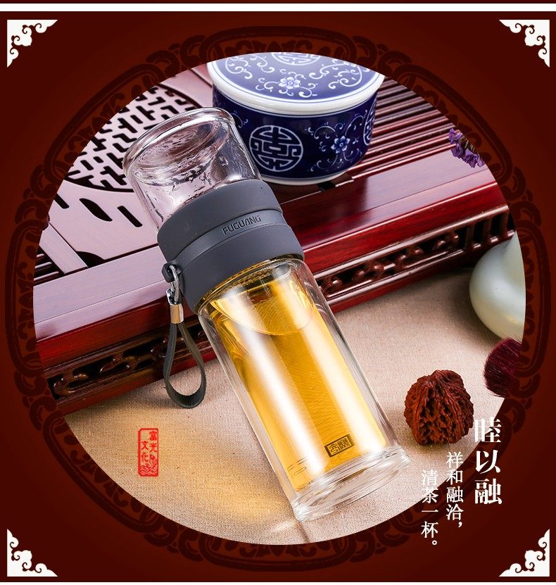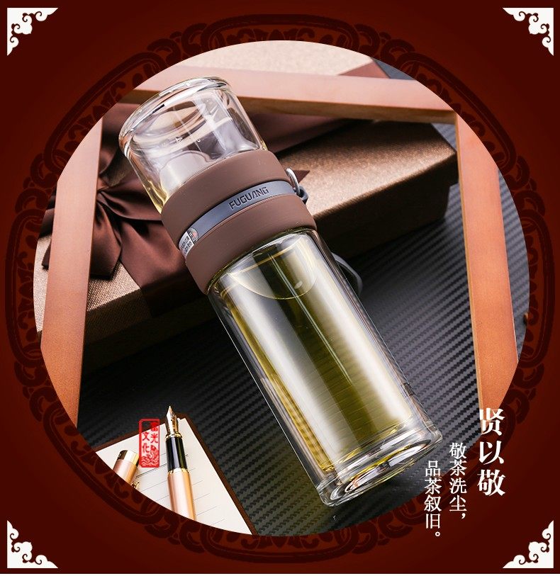 Fuguang Tea Water Separation Tea Cup Double-Layer Glass Cup with Tea Compartment High-End Portable Large Capacity Water Cup for Men and Women