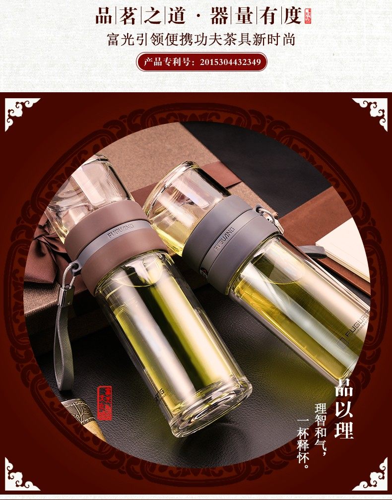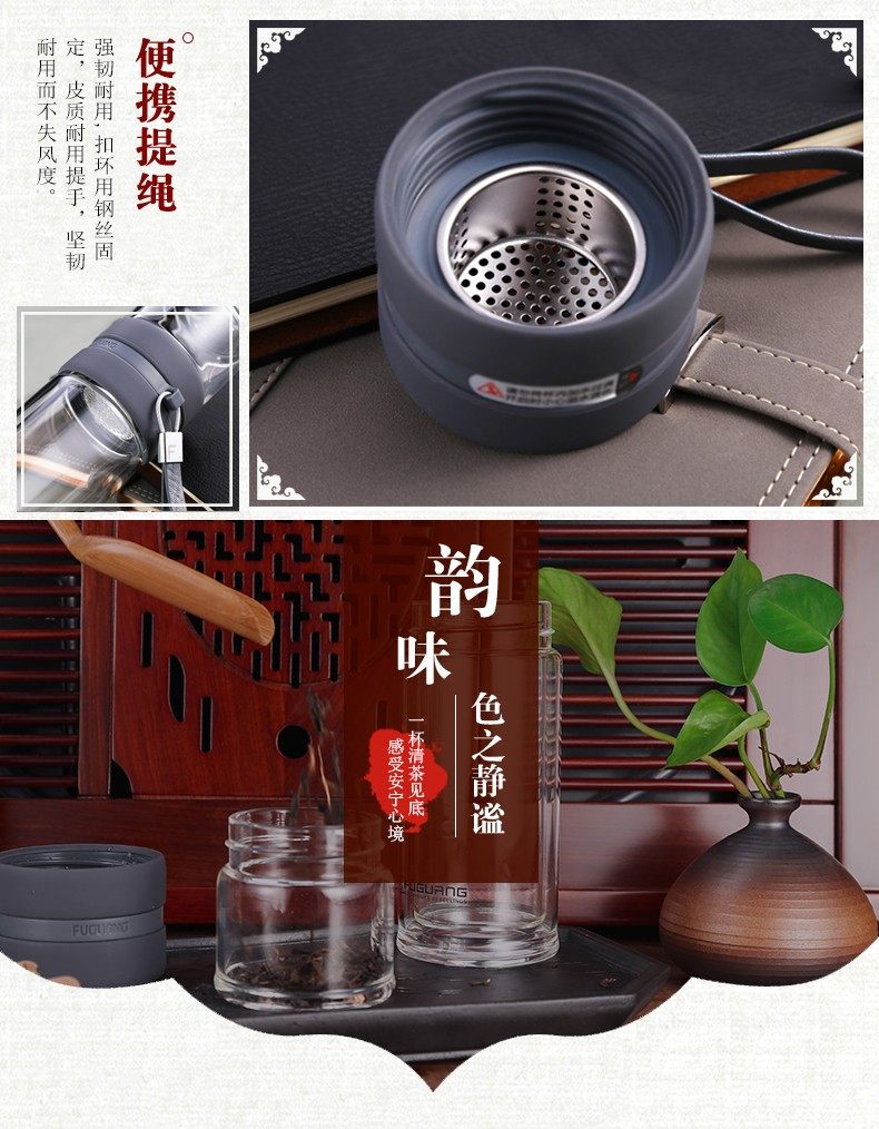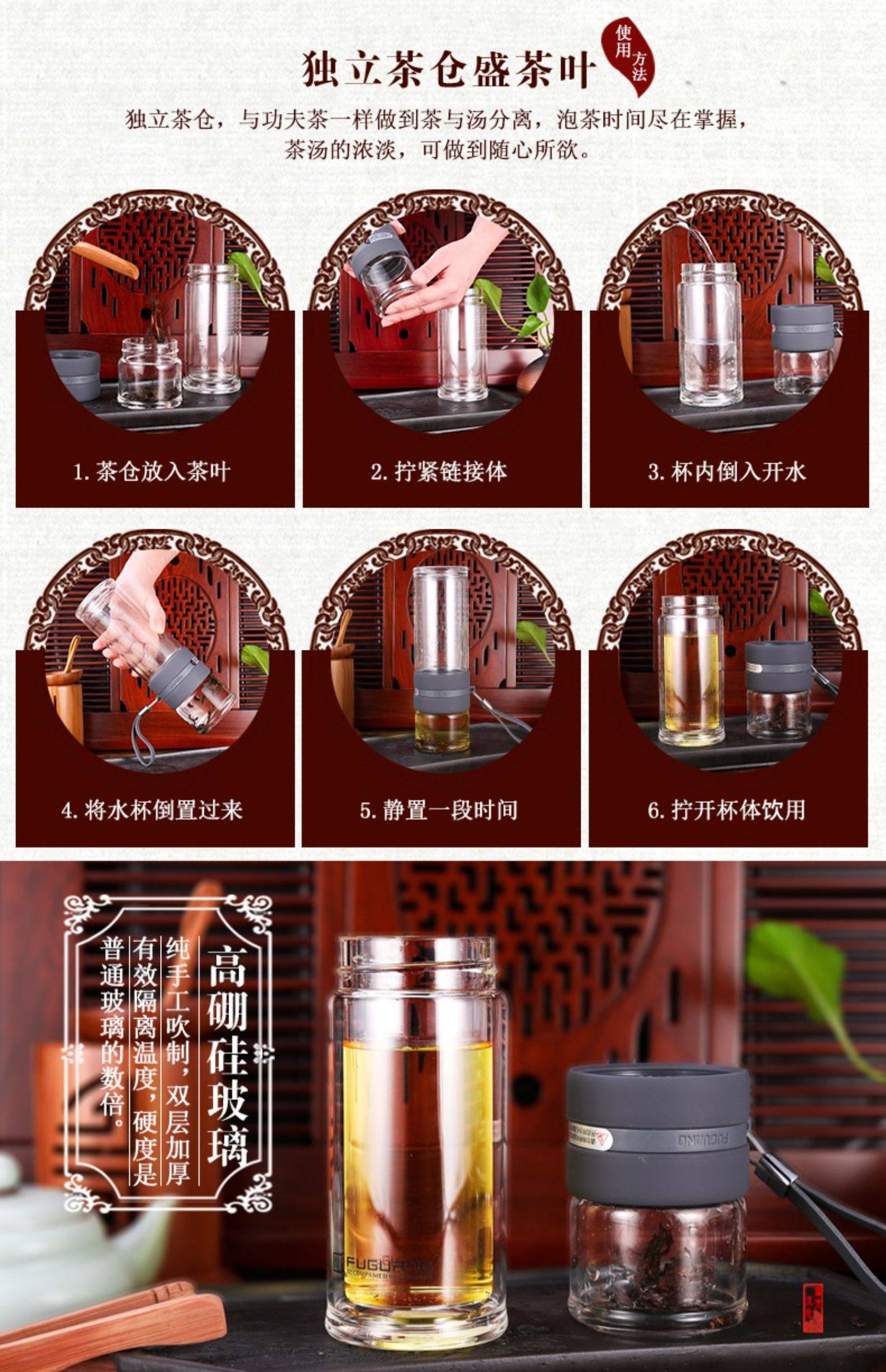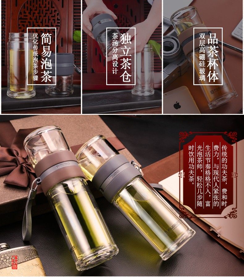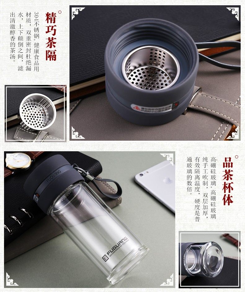Fuguang Tea Water Separation Tea Cup Double-Layer Glass Cup with Tea Compartment High-End Portable Large Capacity Water Cup for Men and Women