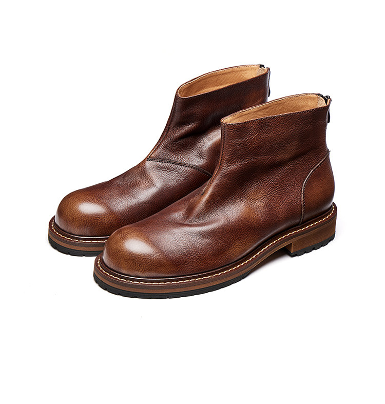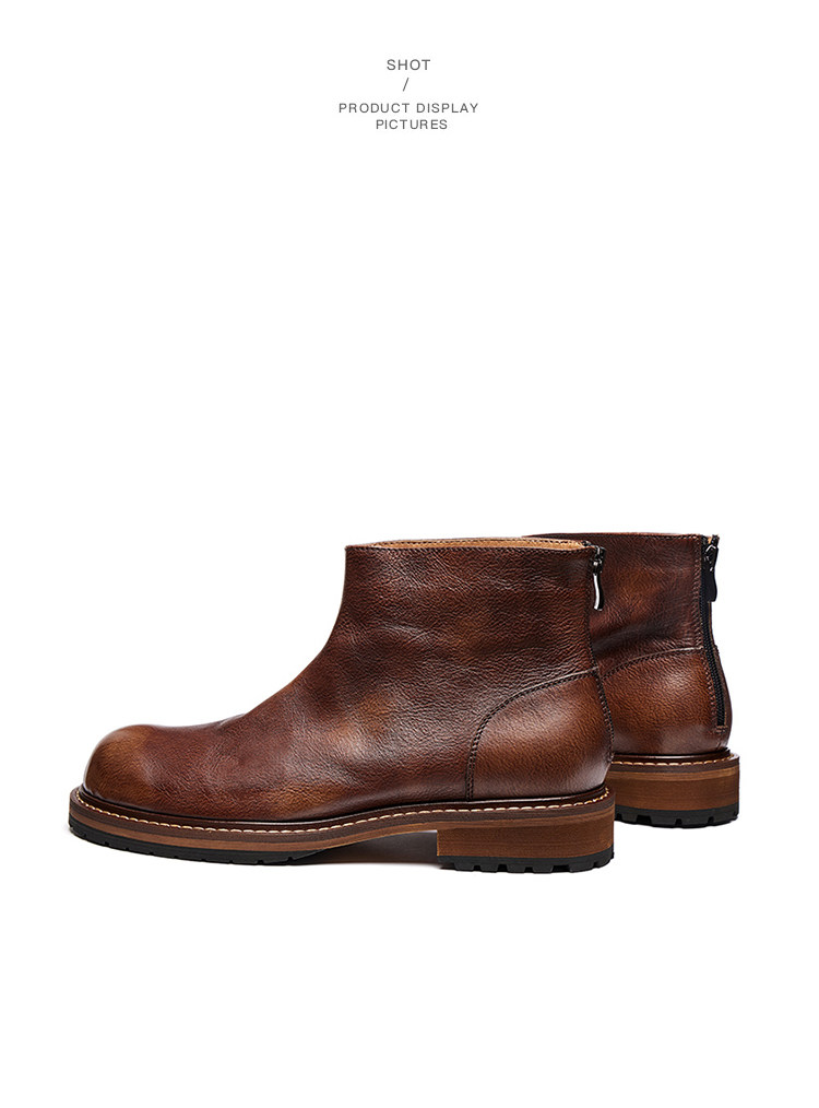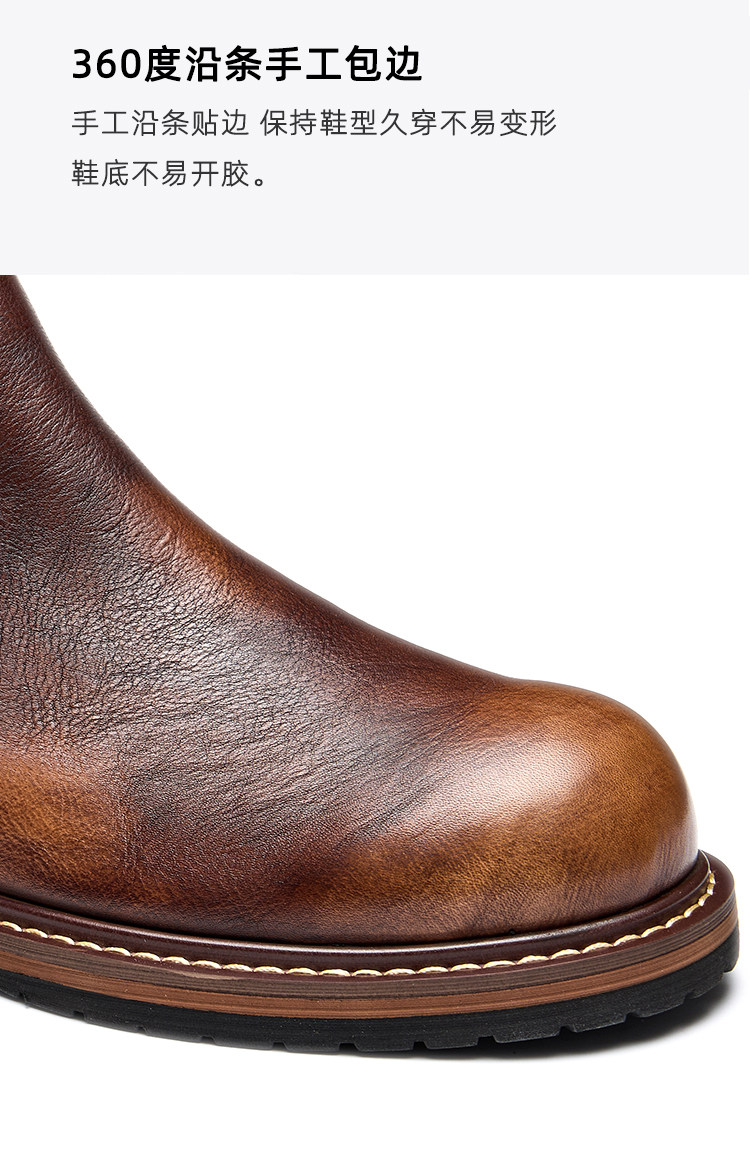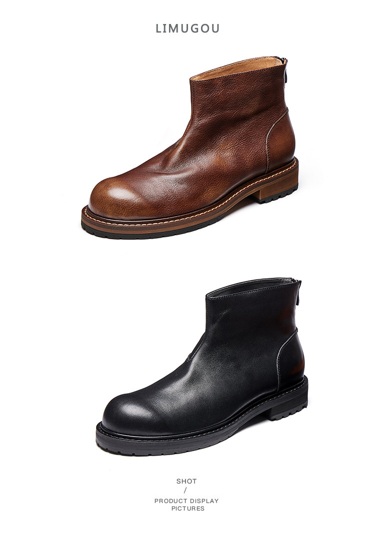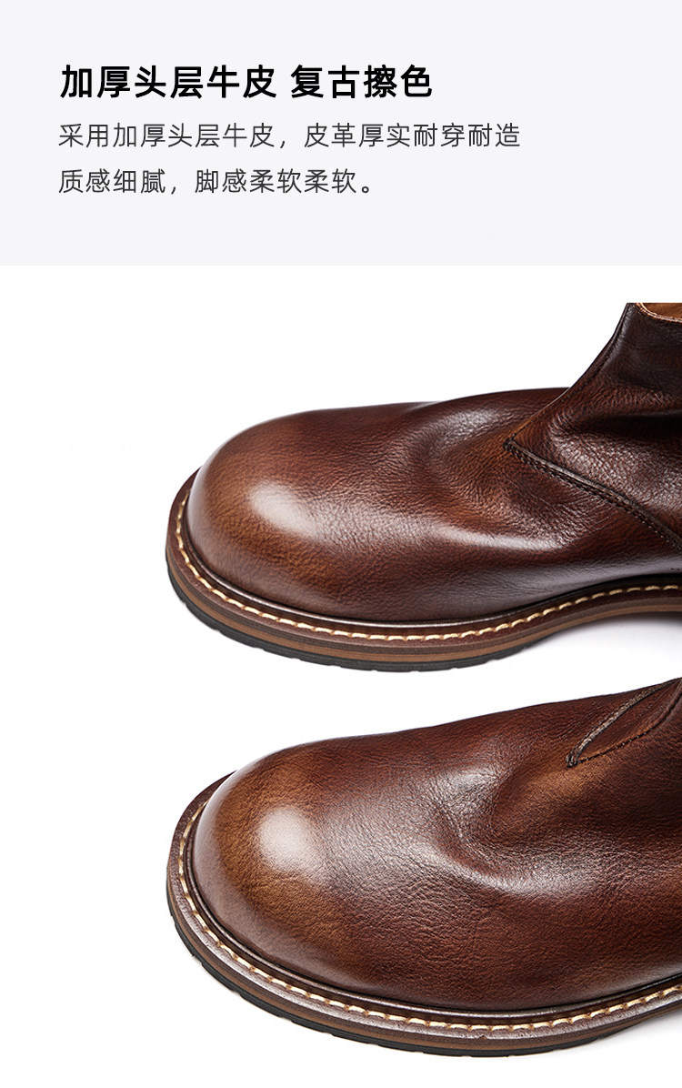 Chelsea Boots for Men, Genuine Leather Retro High-Top Leather Shoes, Winter Fleece-Lined Martin Boots, Men's First-Layer Cowhide British-Style Short Boots
