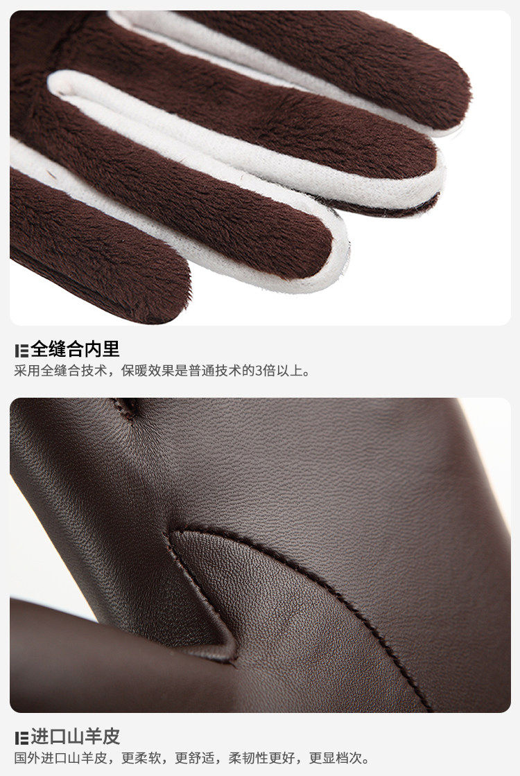 Hong Kong Bng Full-Grain Leather Gloves for Autumn and Winter, Touchscreen-Compatible, Fleece-Lined, First-Layer Sheepskin, Outdoor Cycling and Driving, Gift Box Set
