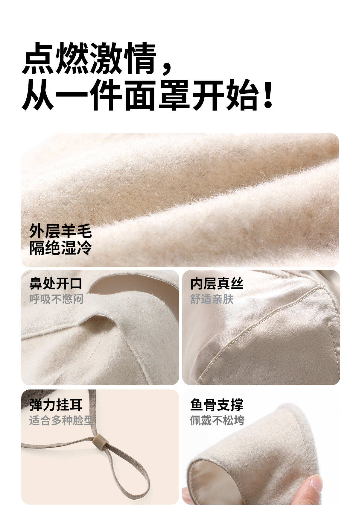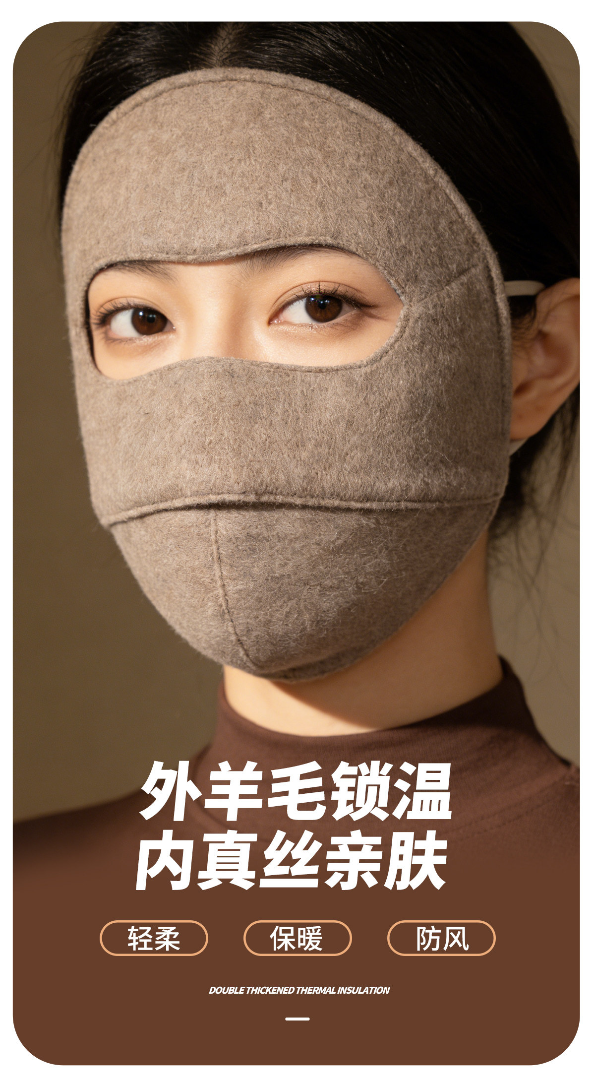 Wool Face Mask for Women, Winter Cycling Anti-Freeze Face Shield, Cold-Proof and Warm Face Mask, Medical Beauty Sun Protection Mulberry Silk Mask