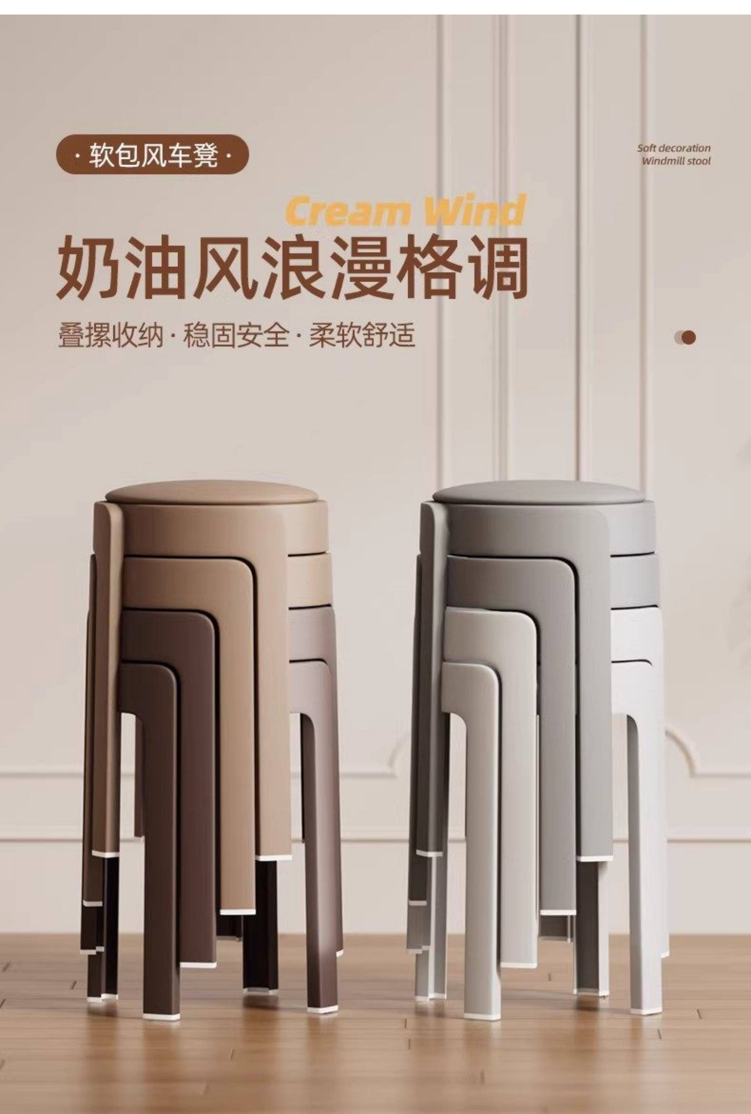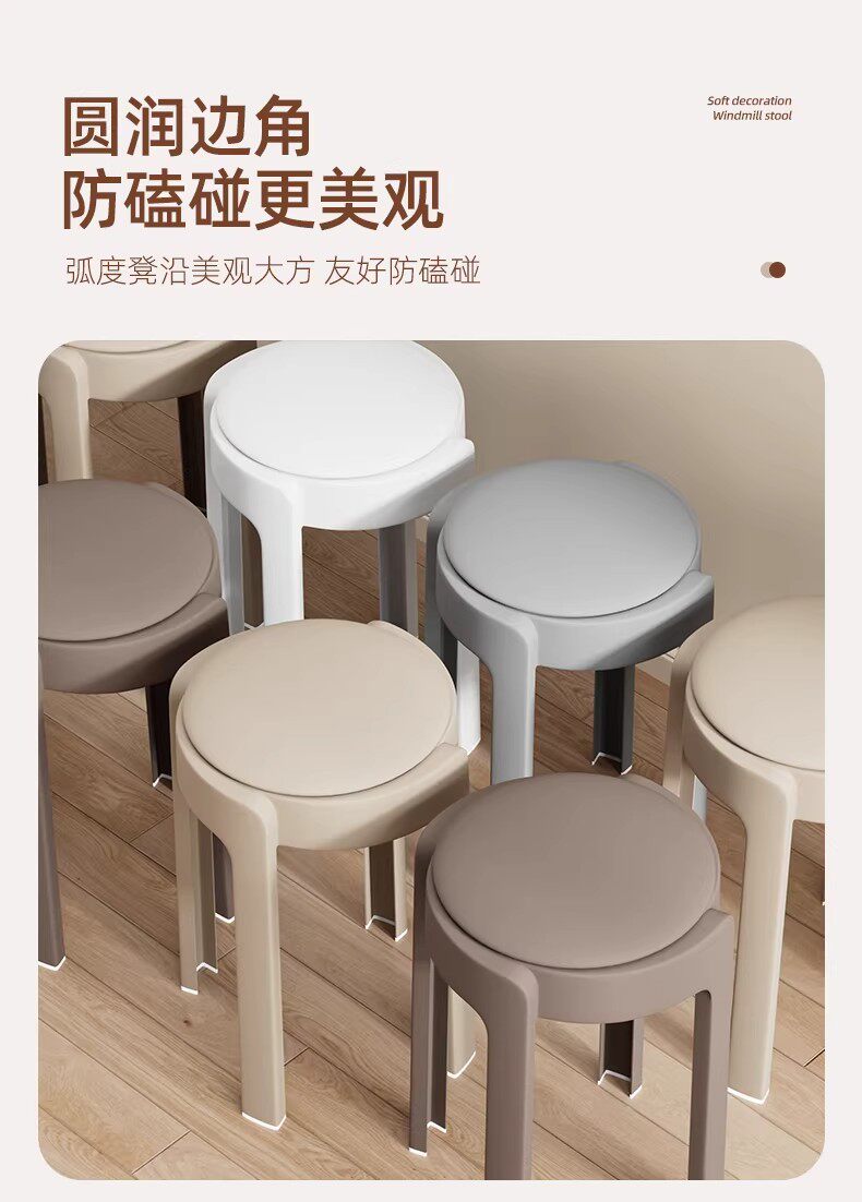 Plastic Soft-Pack Stools for Home Use, Thickened, Sturdy, Durable, Stackable, Round Plastic Windmill High Stools, Spare Chairs for Dining Tables