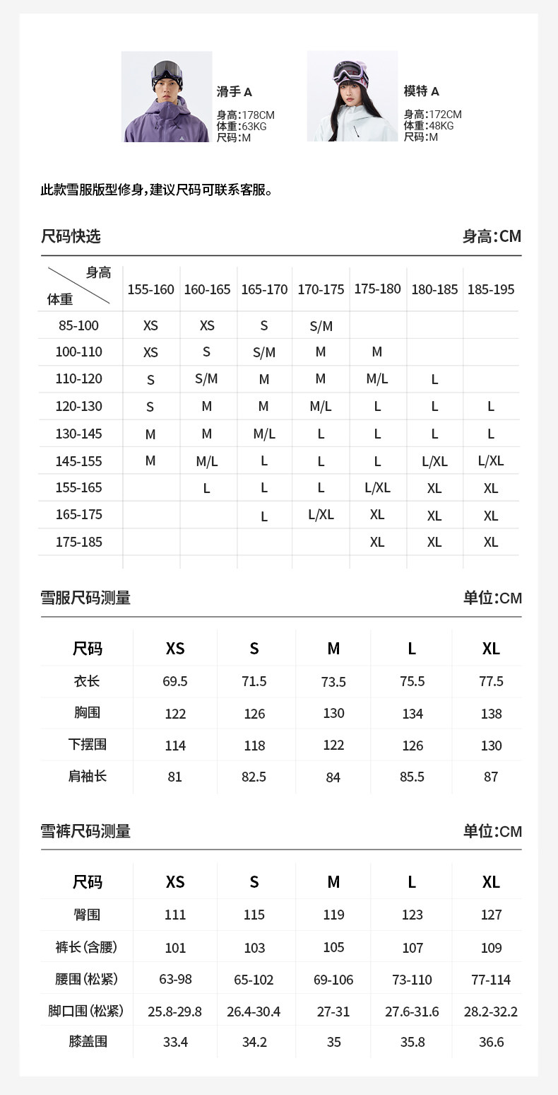China (cm) 160-165/84-86 165-170 / 88-90 167-172 / 92-96 168-173 / 98-102 170-176 / 106-110