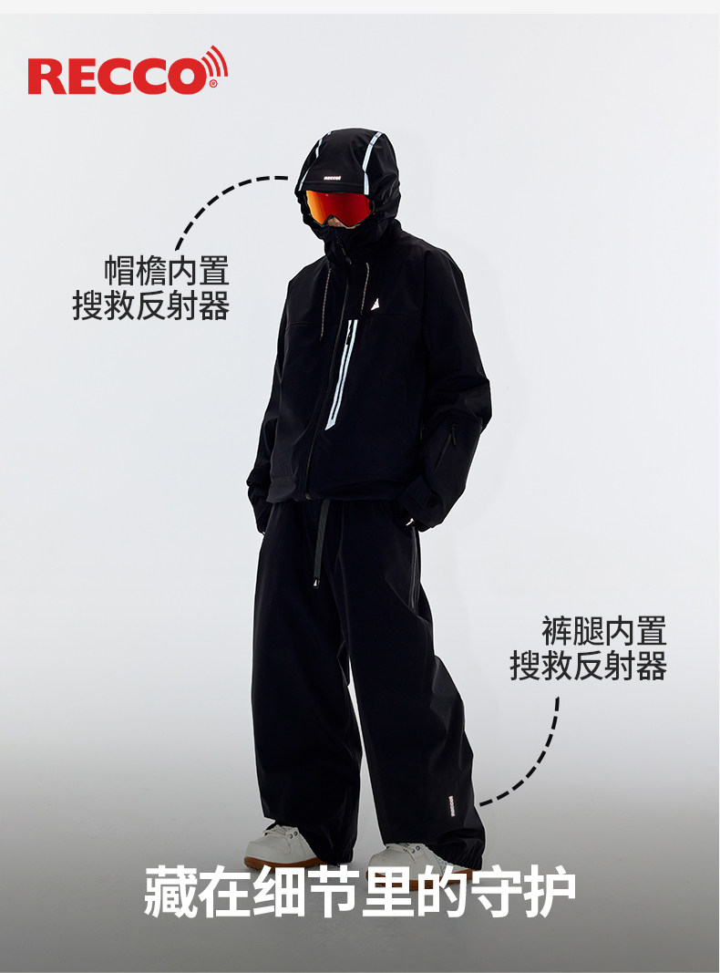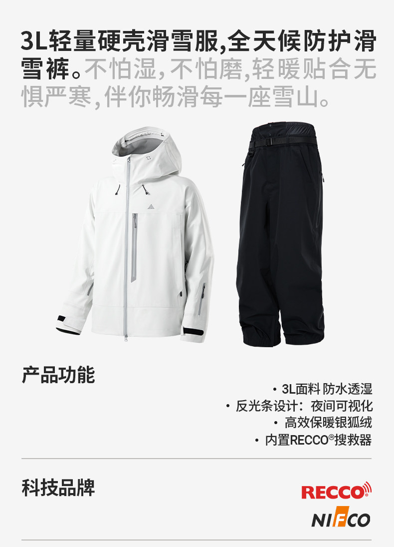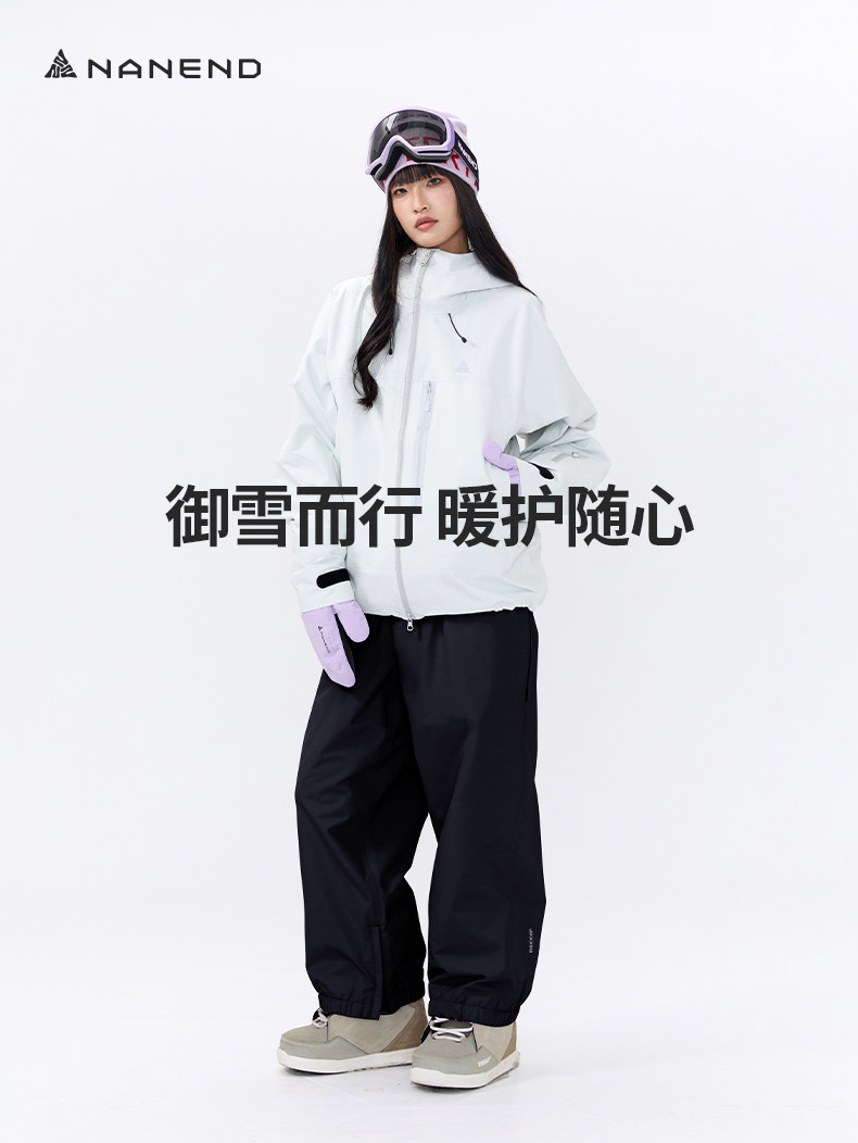Nanen 25-Year Reflective Strip Ski Suit Set for Men and Women, Hardshell Jacket, Outdoor Waterproof Fleece-Lined Pants