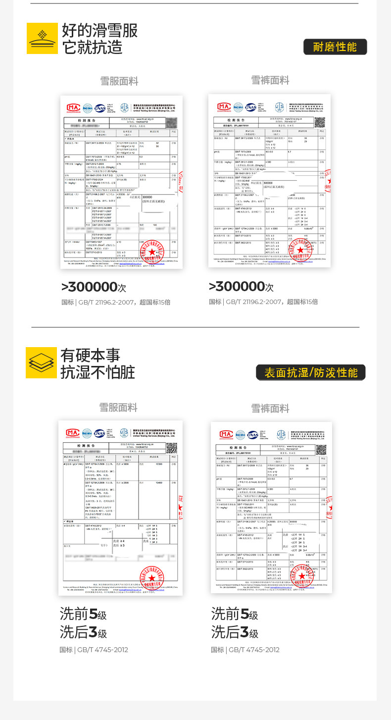 Waterproof Surface Moisture Resistance: ≥4-5 Levels before Washing, ≥3-4 Levels after Washing