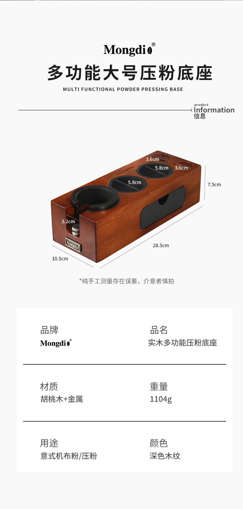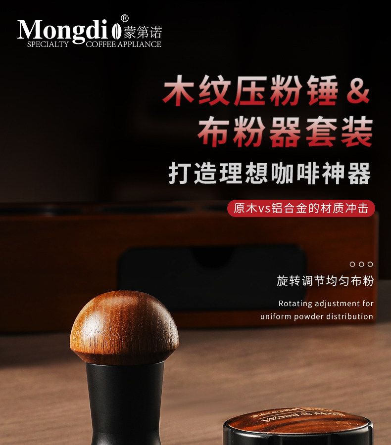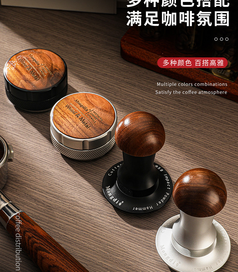 Mongdio Coffee Tamper Walnut Wood Tamper Base Powder Hammer Coffee Machine Accessories Tool Set