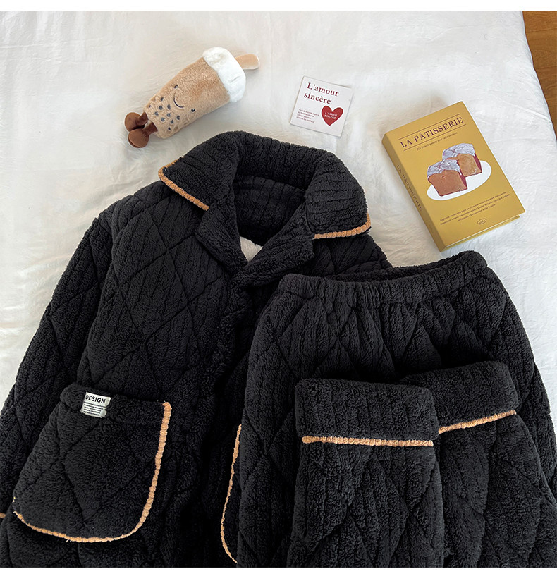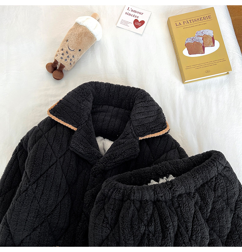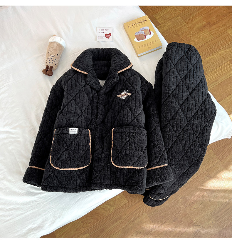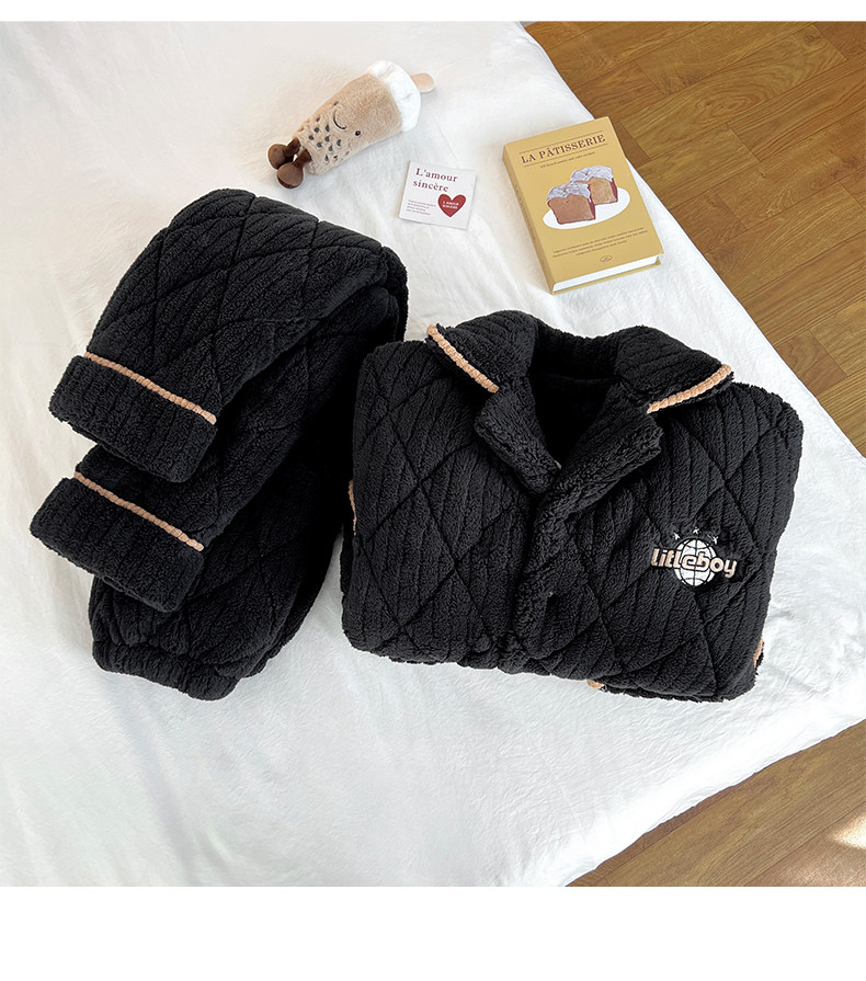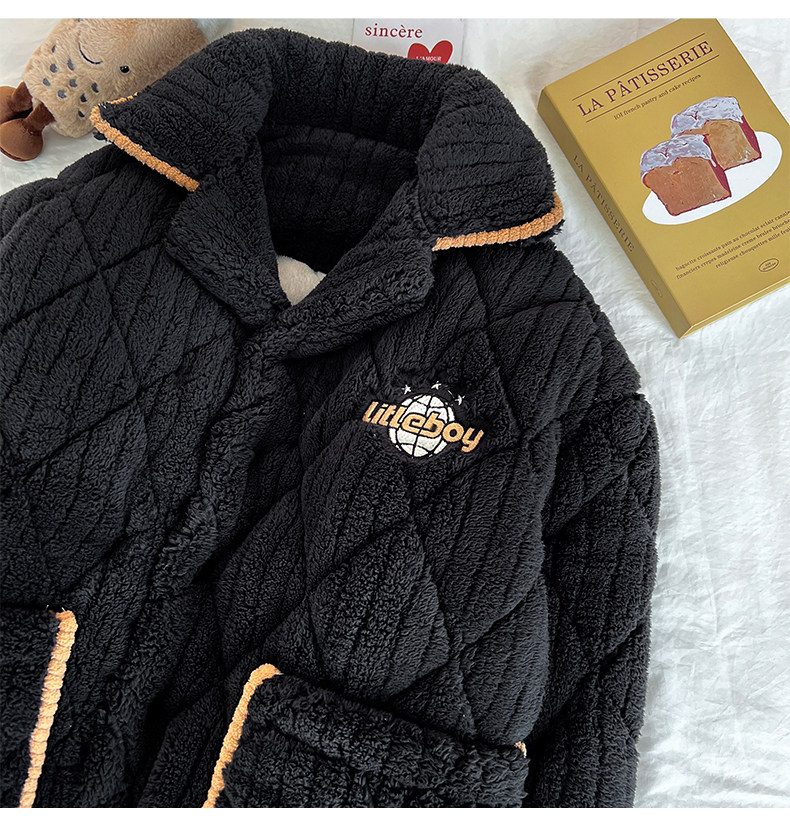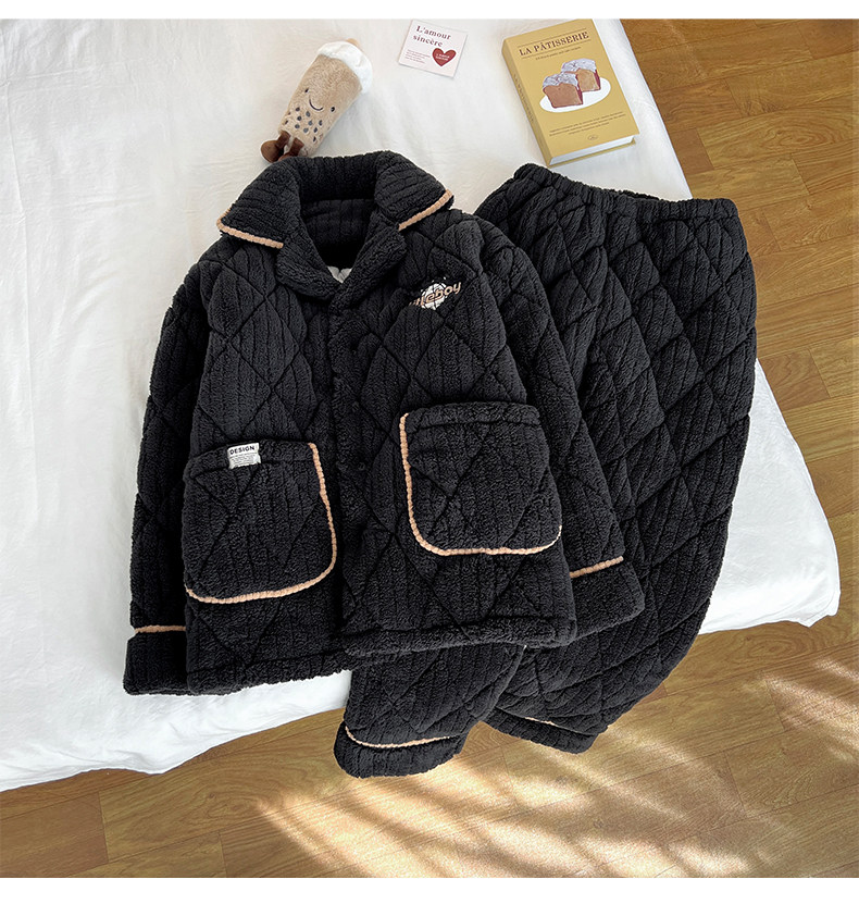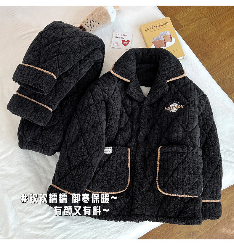 2026 New High-End Coral Velvet Pajamas for Men, Winter Three-Layer Quilted Cotton, Fleece-Lined and Thickened, Youth Loungewear