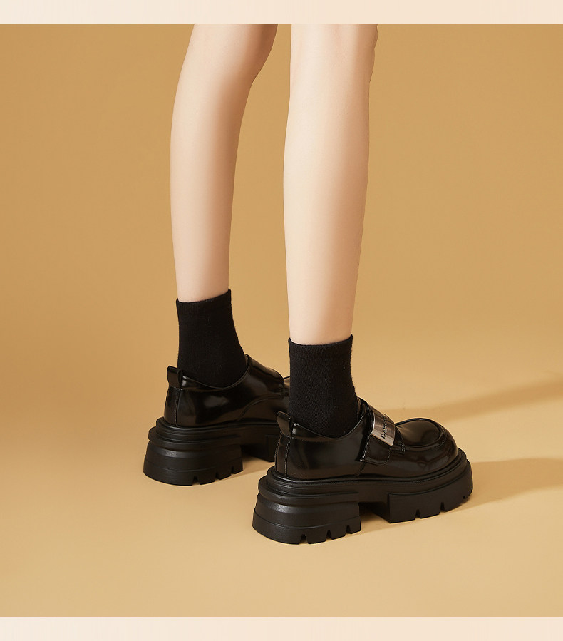 Daphne thick-soled loafers for women 2026 new winter velvet British style black small leather shoes popular derby shoes