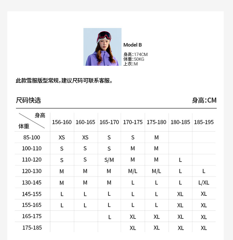 China (cm) 160-165/84-86 165-170 / 88-90 167-172 / 92-96 168-173 / 98-102 170-176 / 106-110