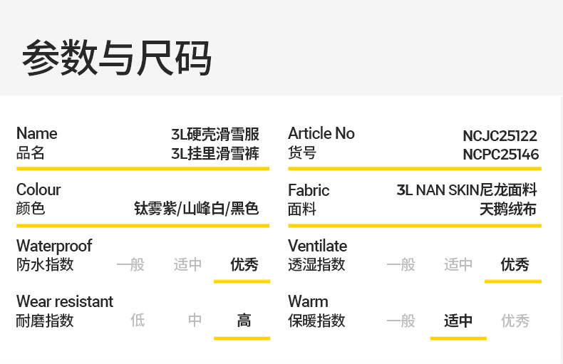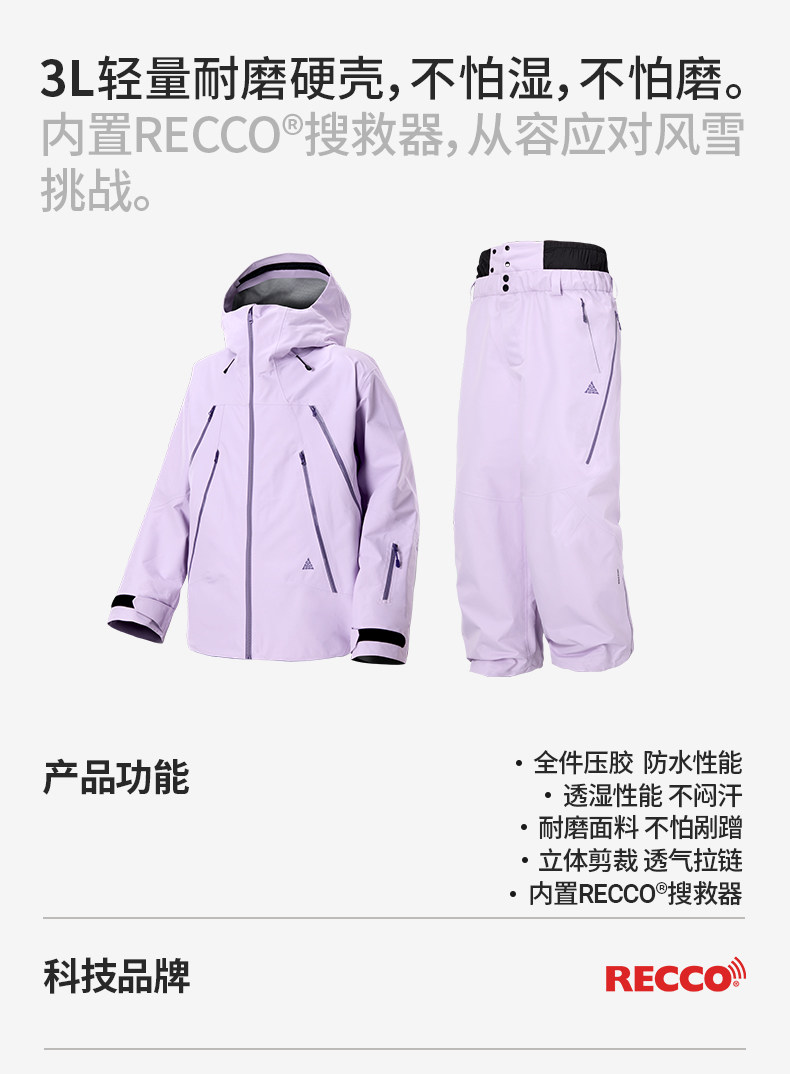 Nanen Sweetspot25 Lightweight Ski Suit Set for Women, 3L Waterproof Hard Shell Single and Double Board Clothing Set for Men
