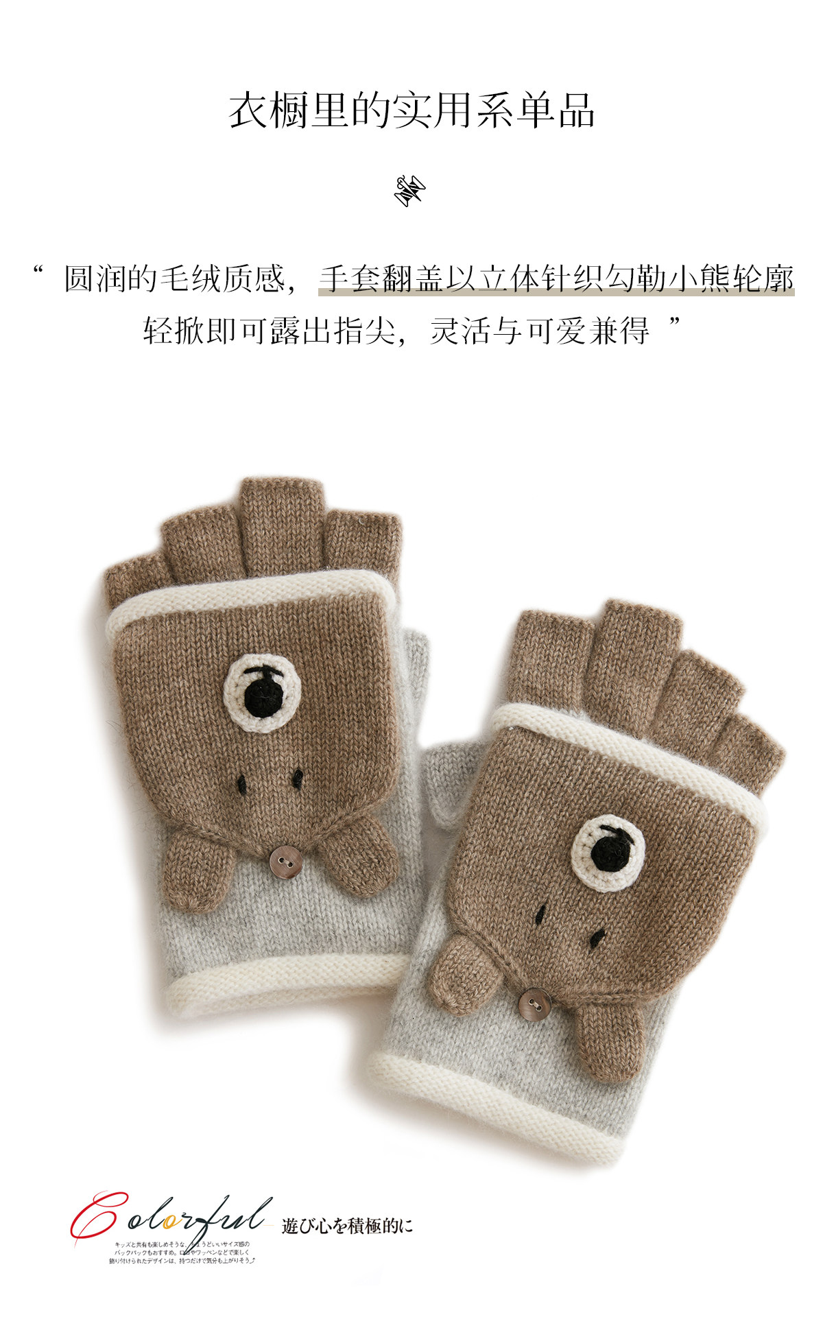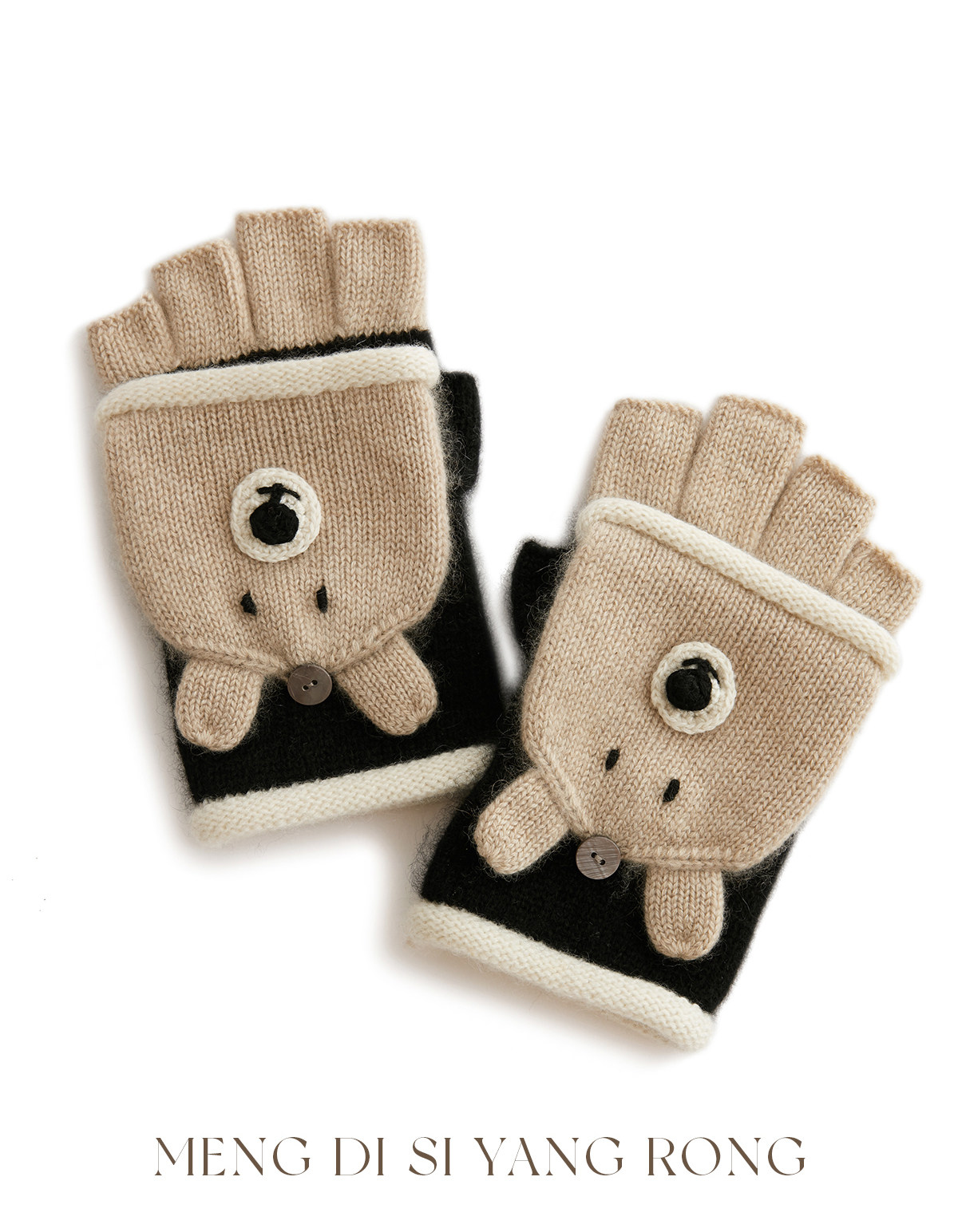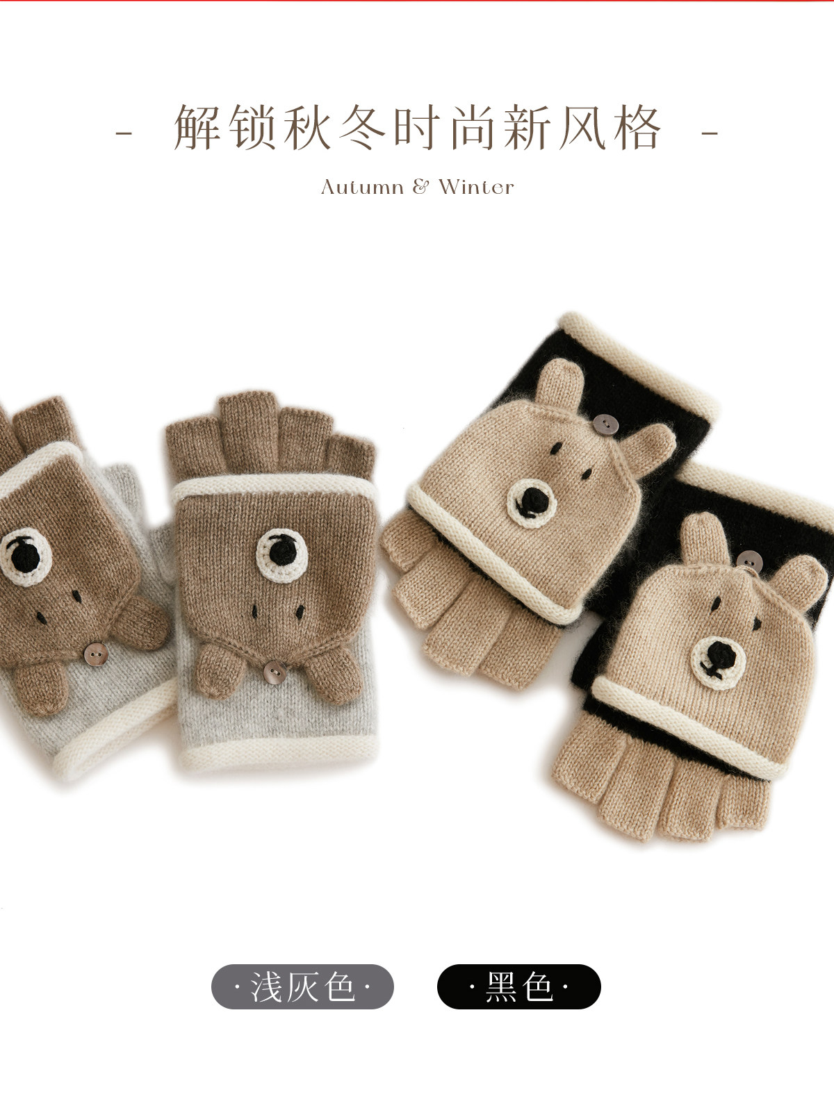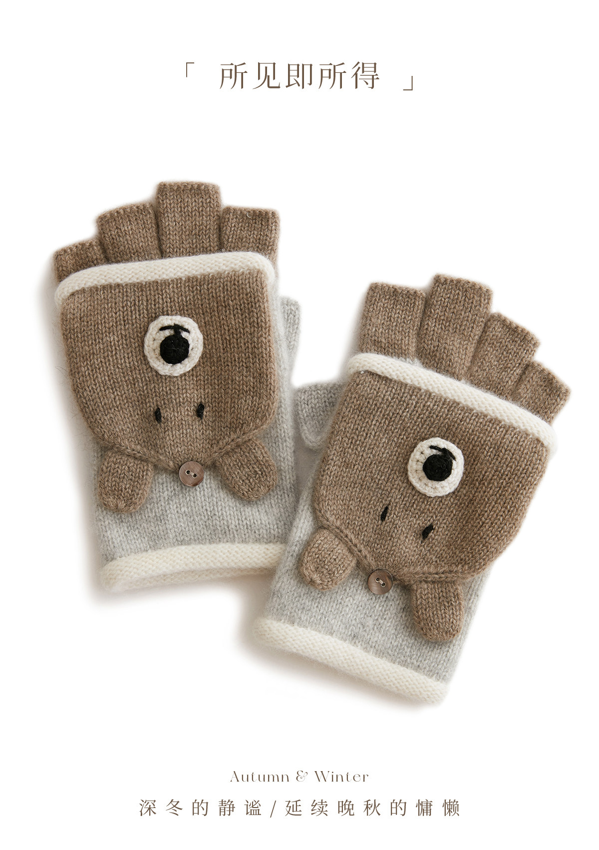 Autumn and Winter 100% Cashmere Gloves for Girls, Cute Fingerless Cycling Gloves, Cold-Proof and Warm Woolen Knitted Half-Finger Gloves