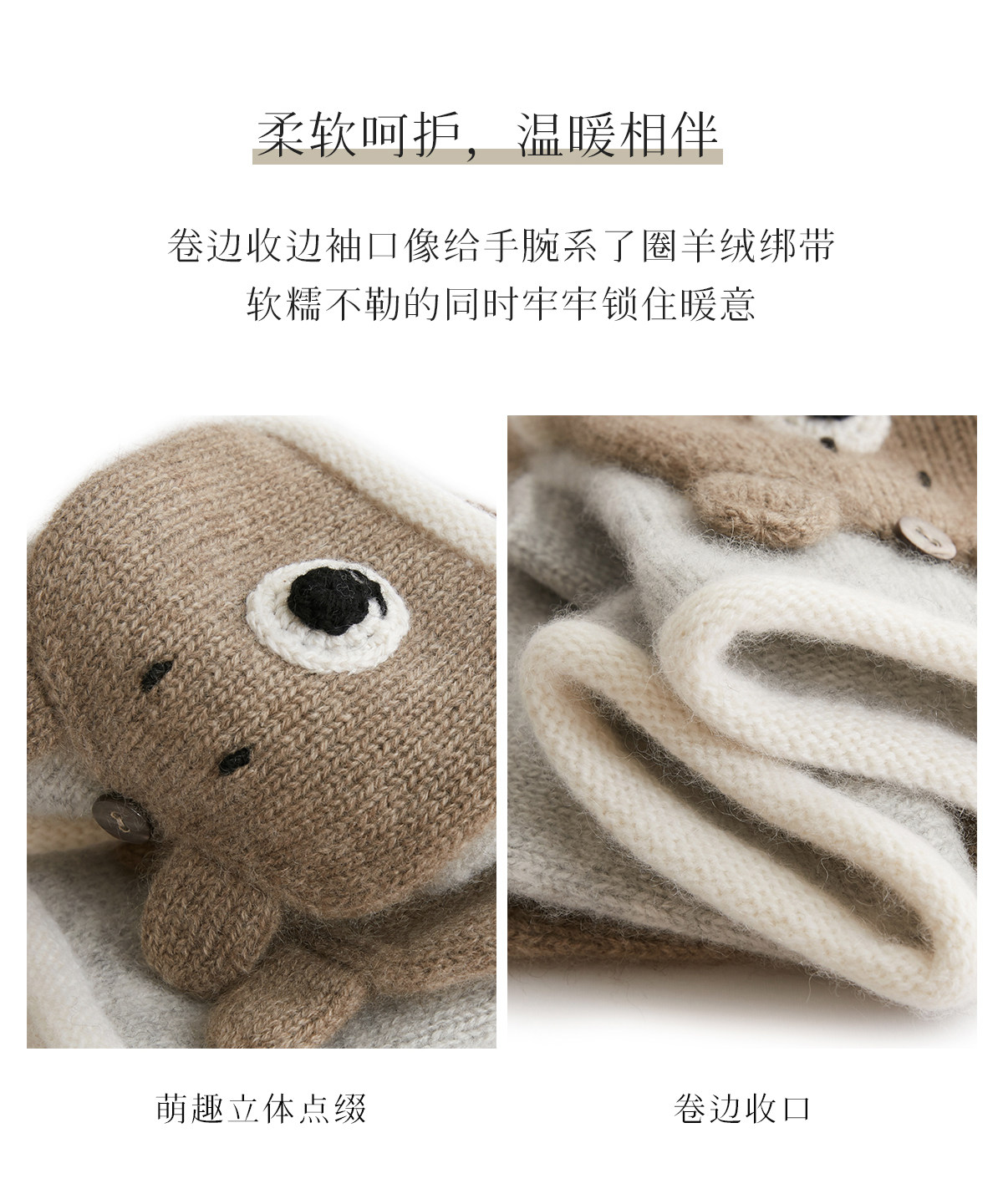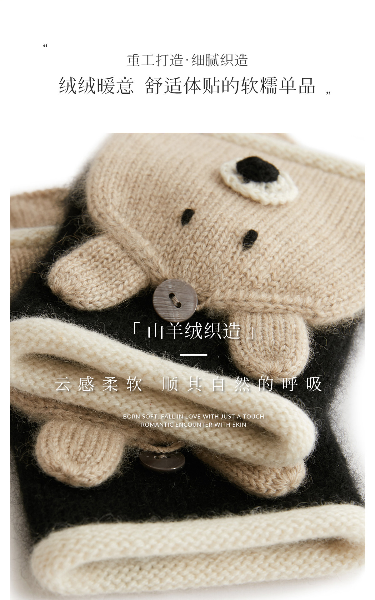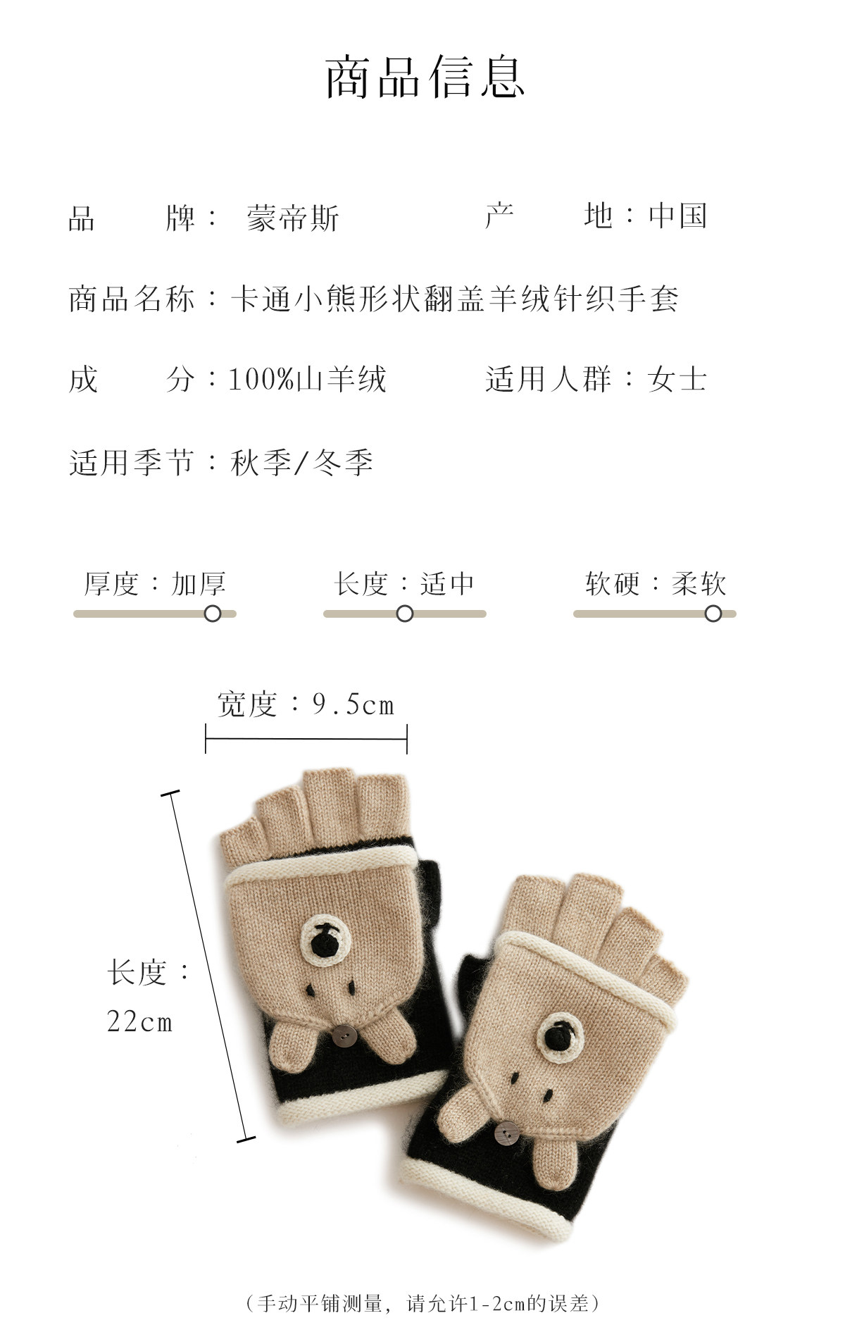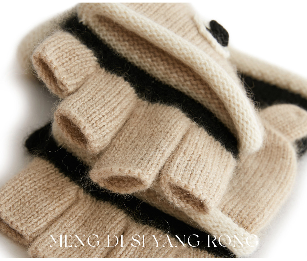Autumn and Winter 100% Cashmere Gloves for Girls, Cute Fingerless Cycling Gloves, Cold-Proof and Warm Woolen Knitted Half-Finger Gloves