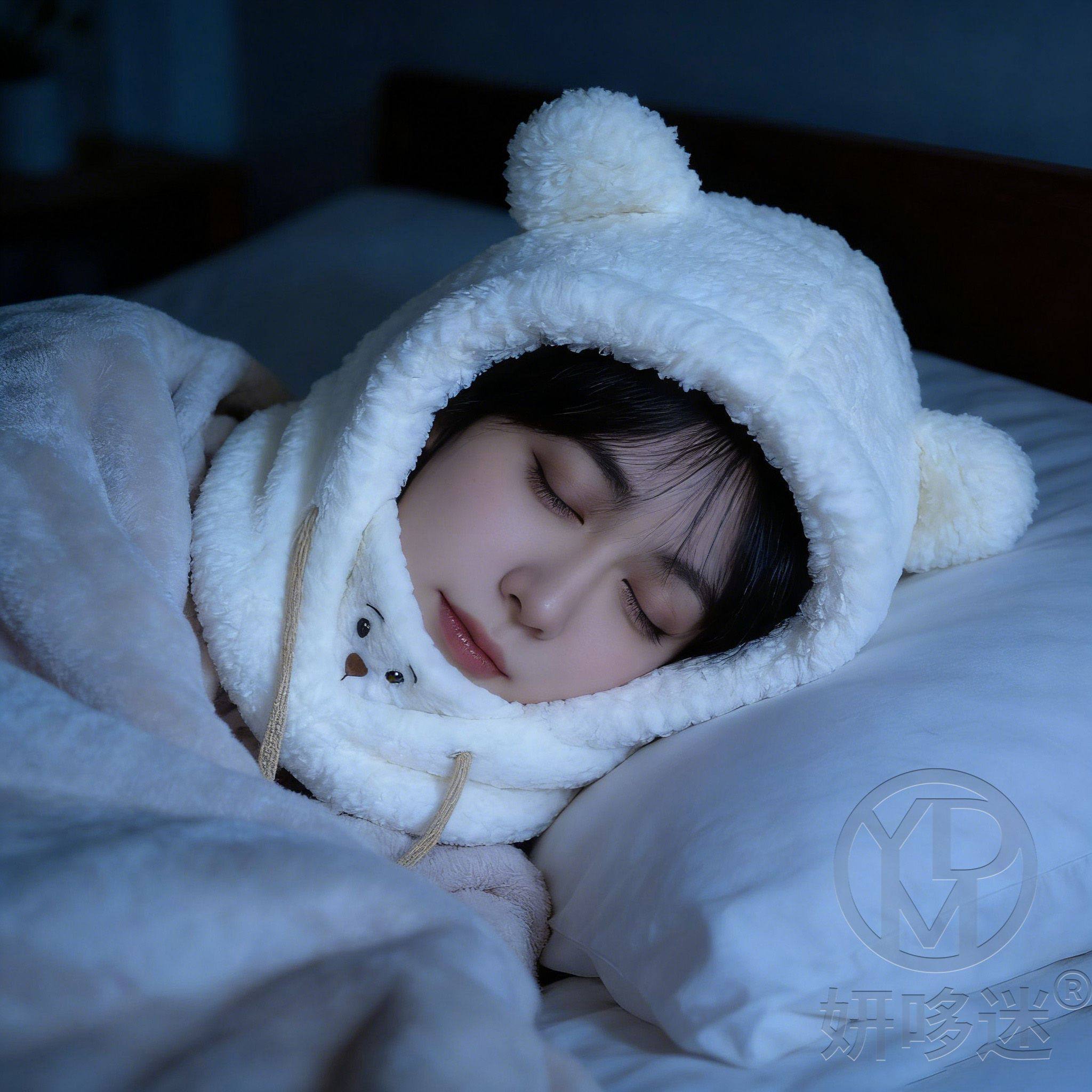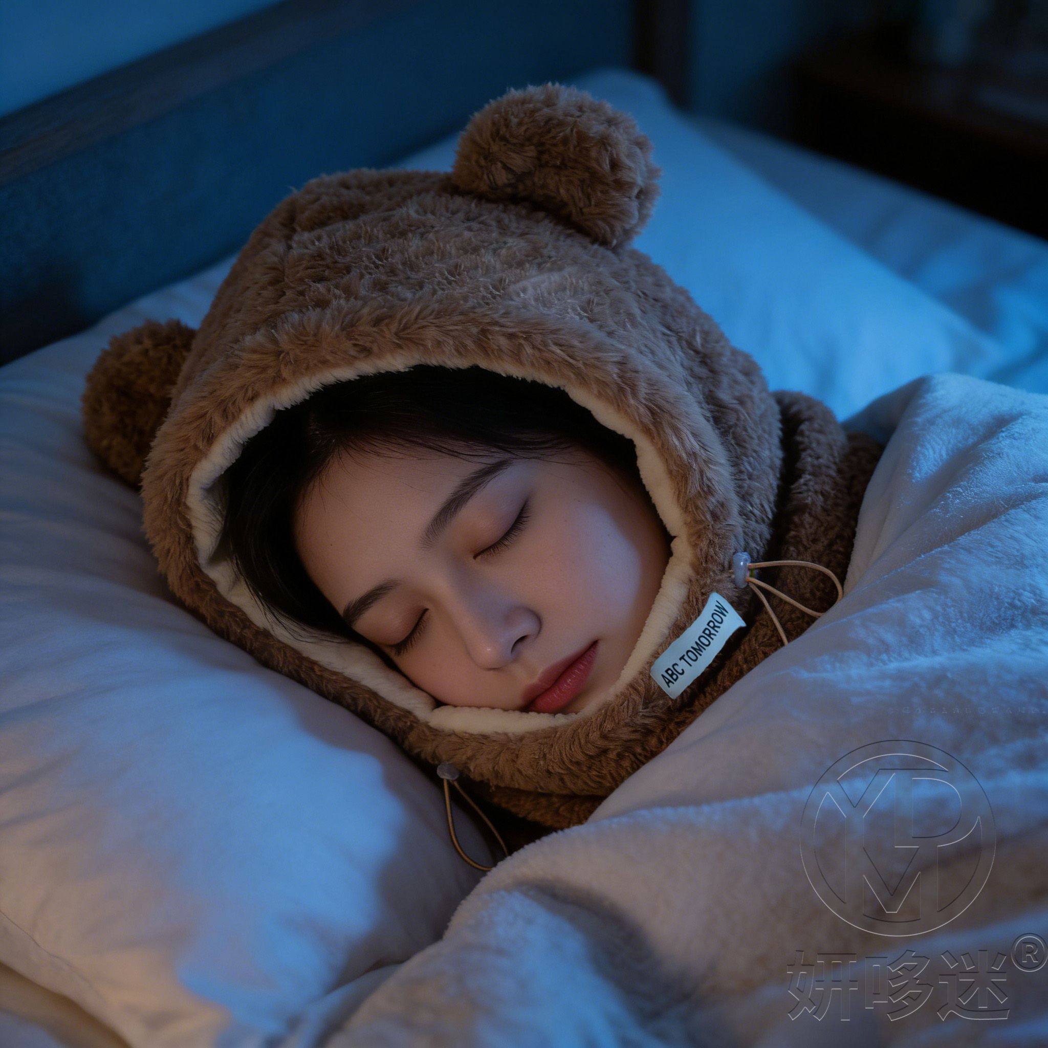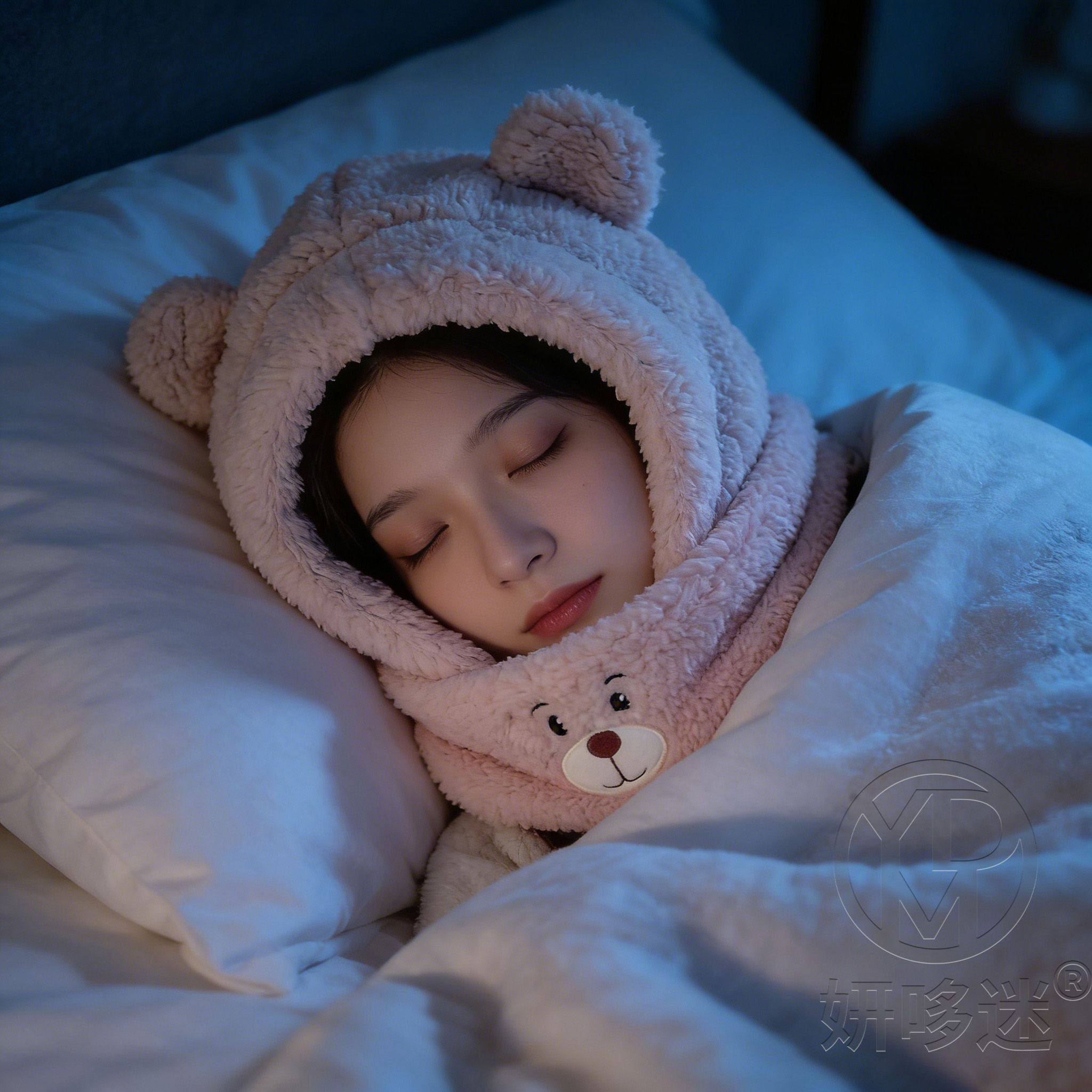 Special Sleep Cap for Migraine Sufferers, Cute Bear Hat for Women, Plush Ear Protection Hat, Mask and Scarf All-In-One for Sleeping at Night