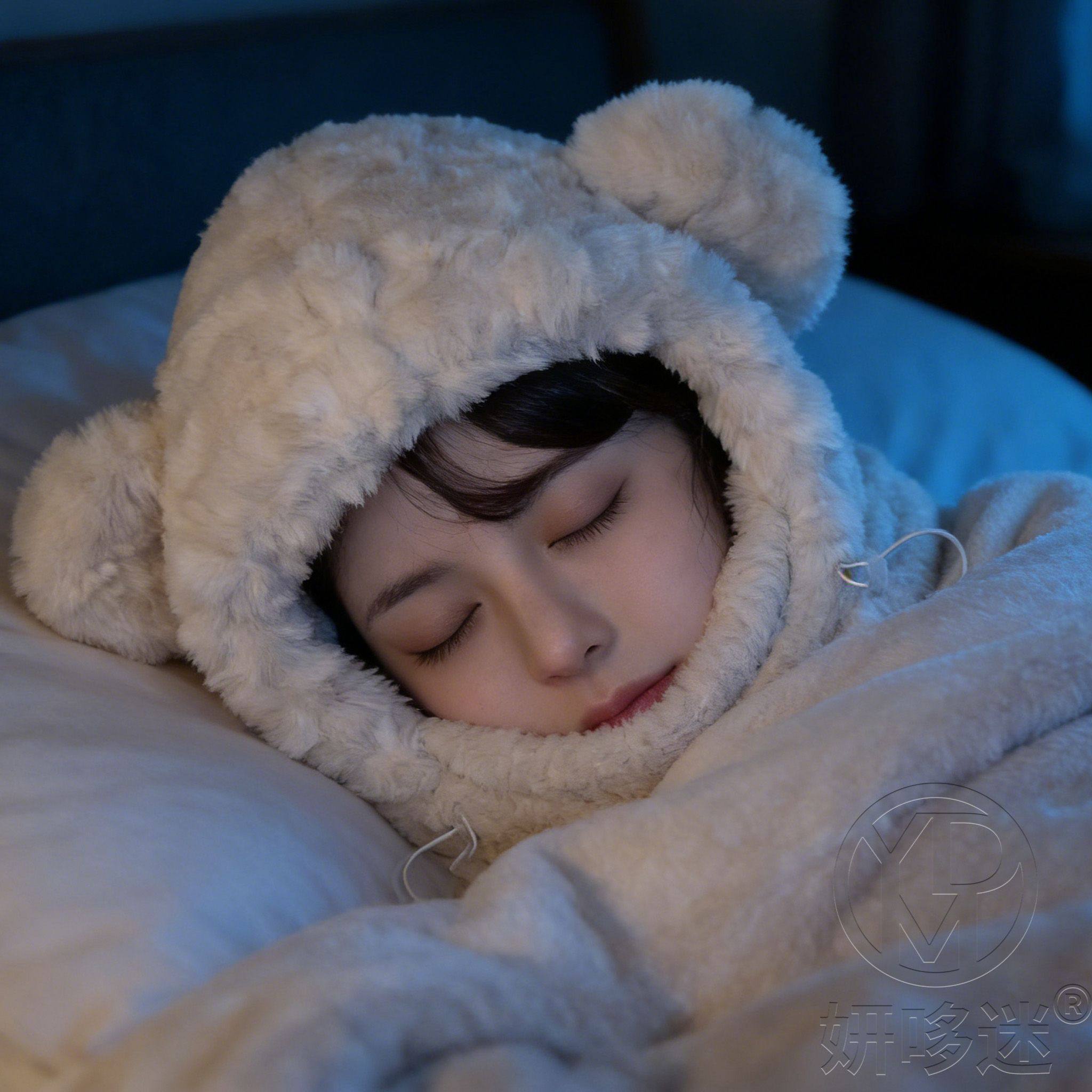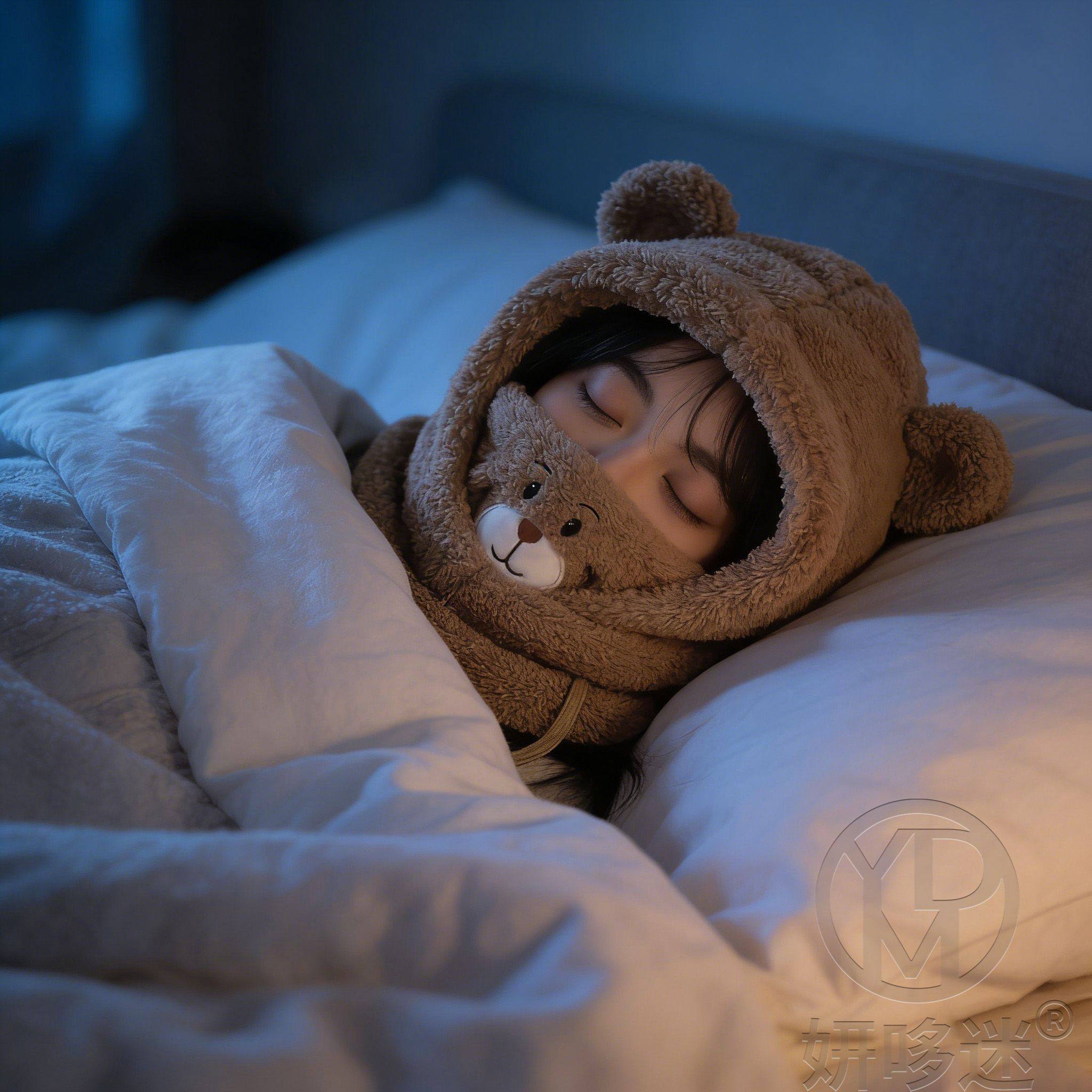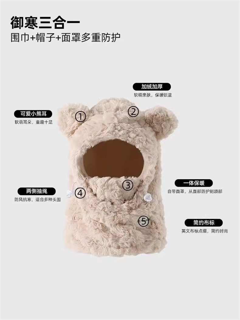 Special Sleep Cap for Migraine Sufferers, Cute Bear Hat for Women, Plush Ear Protection Hat, Mask and Scarf All-In-One for Sleeping at Night