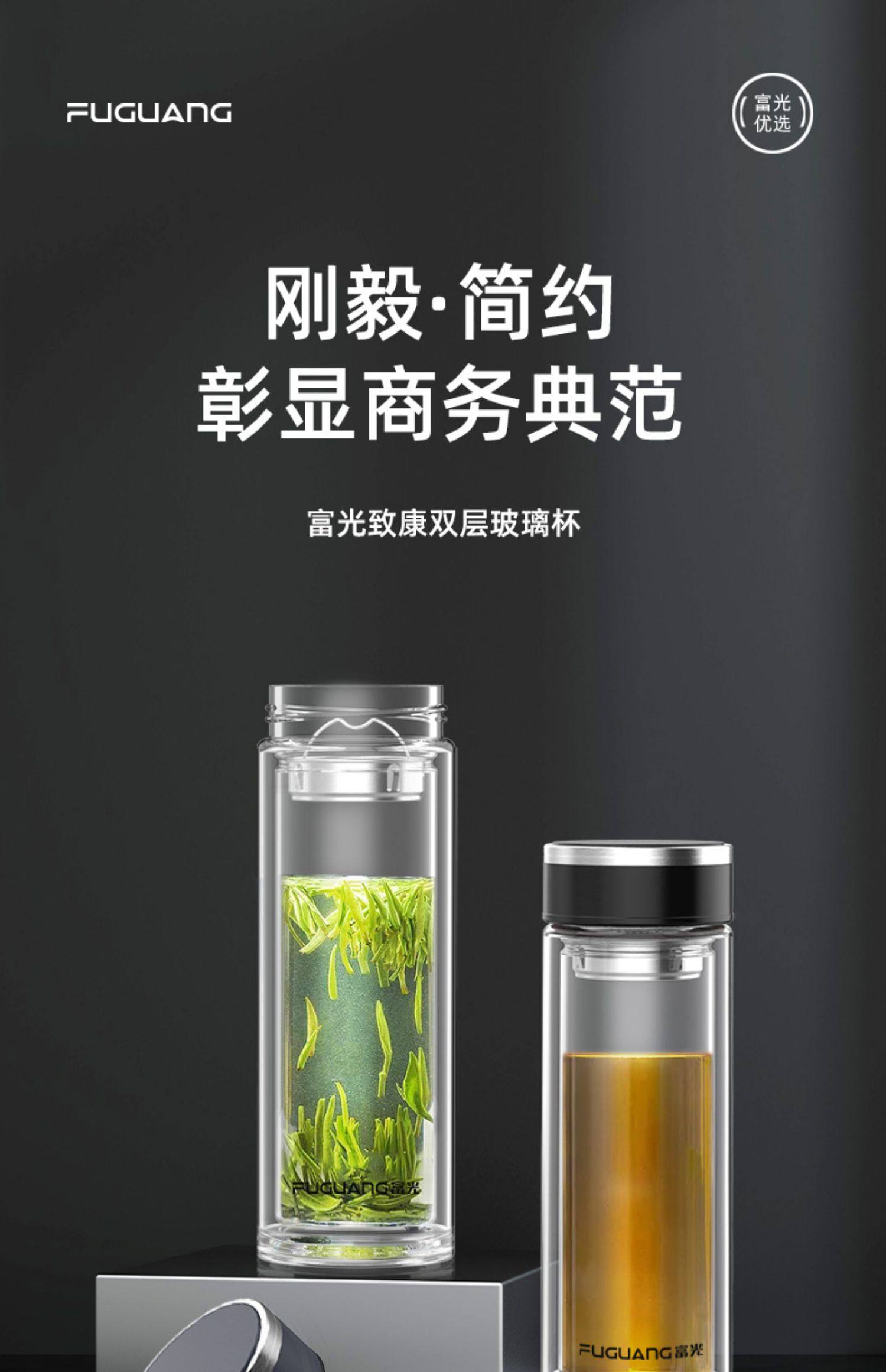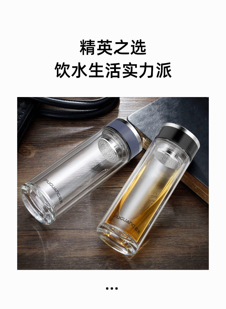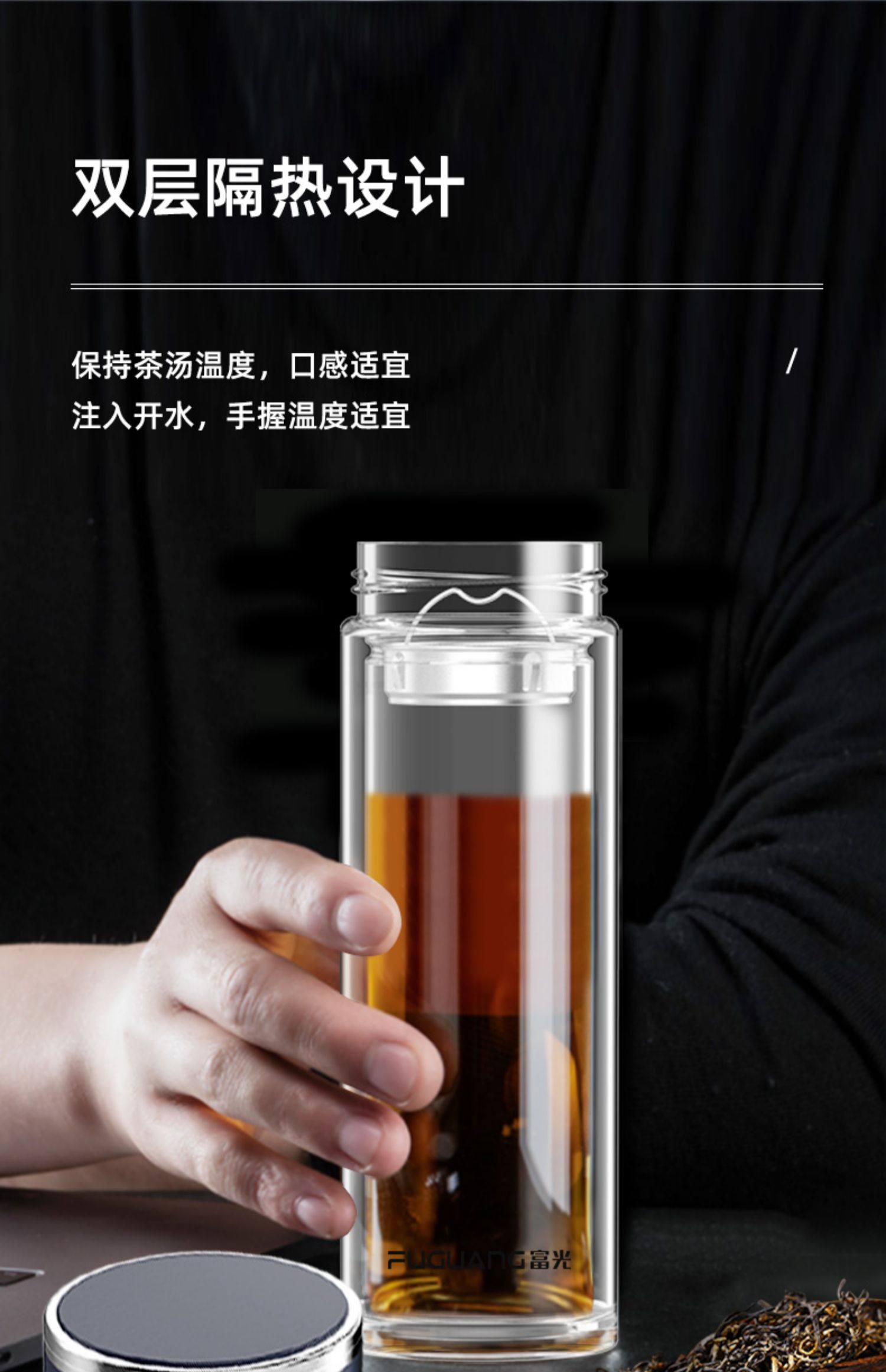 Fuguang Double-Layer Glass Cup, High-End Men's and Women's Tea and Water Separation Cup, Personal Use Cup for Home Drinking