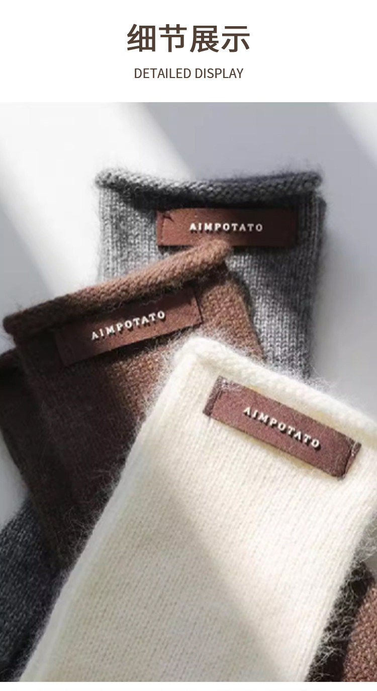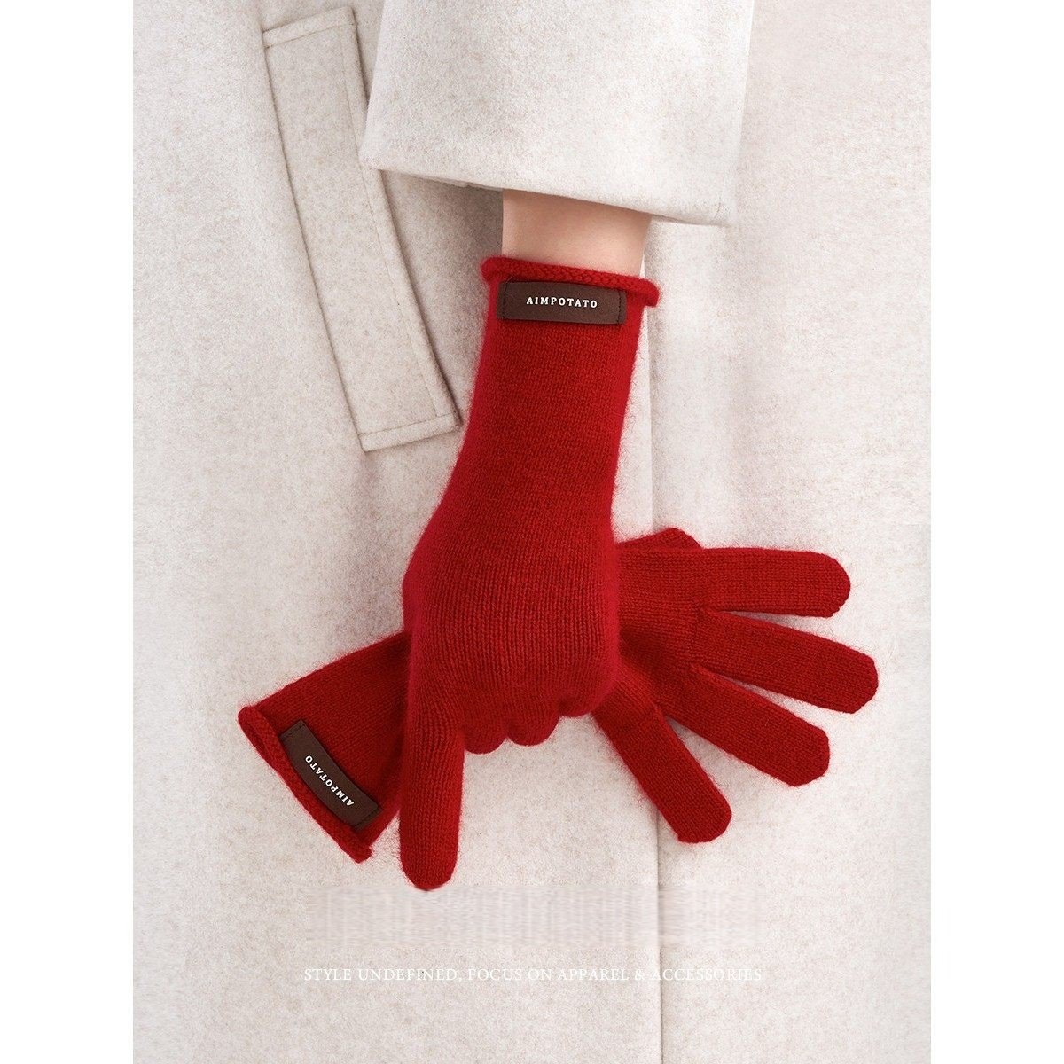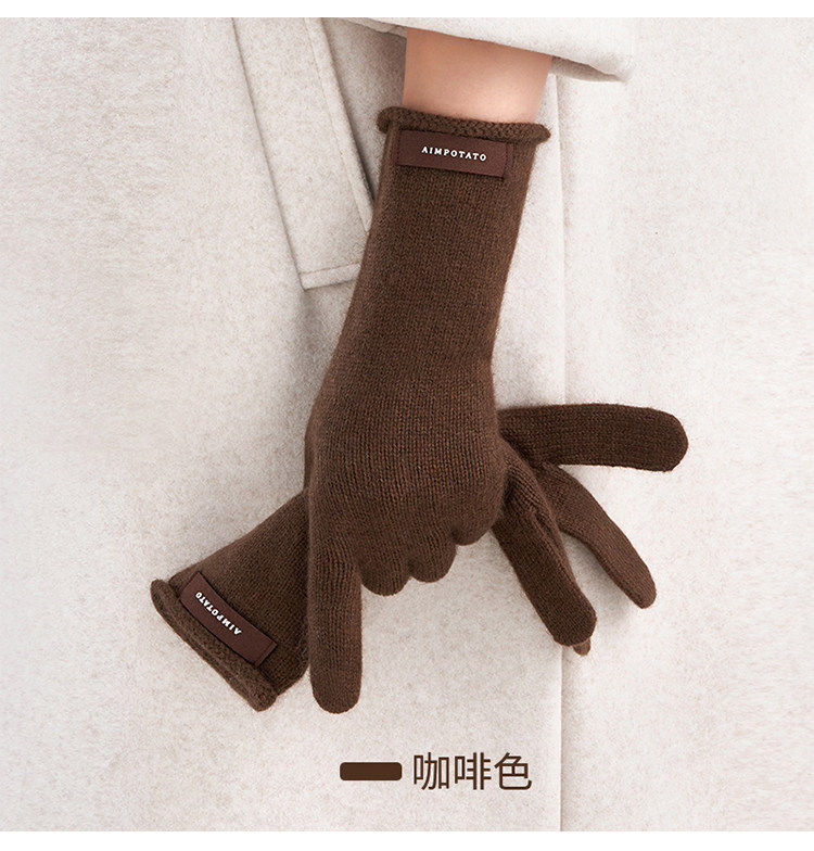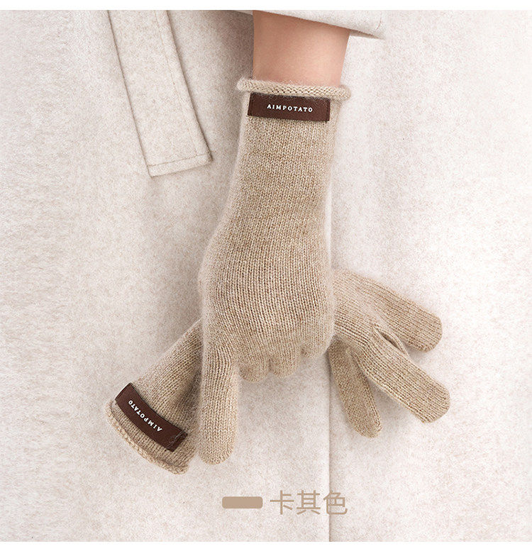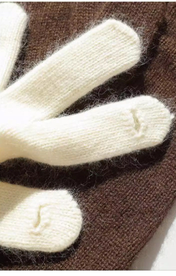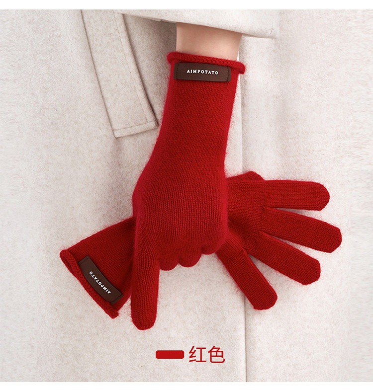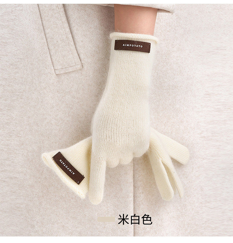 Hong Kong Bng Raccoon Wool Pure Color Knitted Gloves for Women, Winter Warm Touch-Screen Compatible High-End Gift Gloves