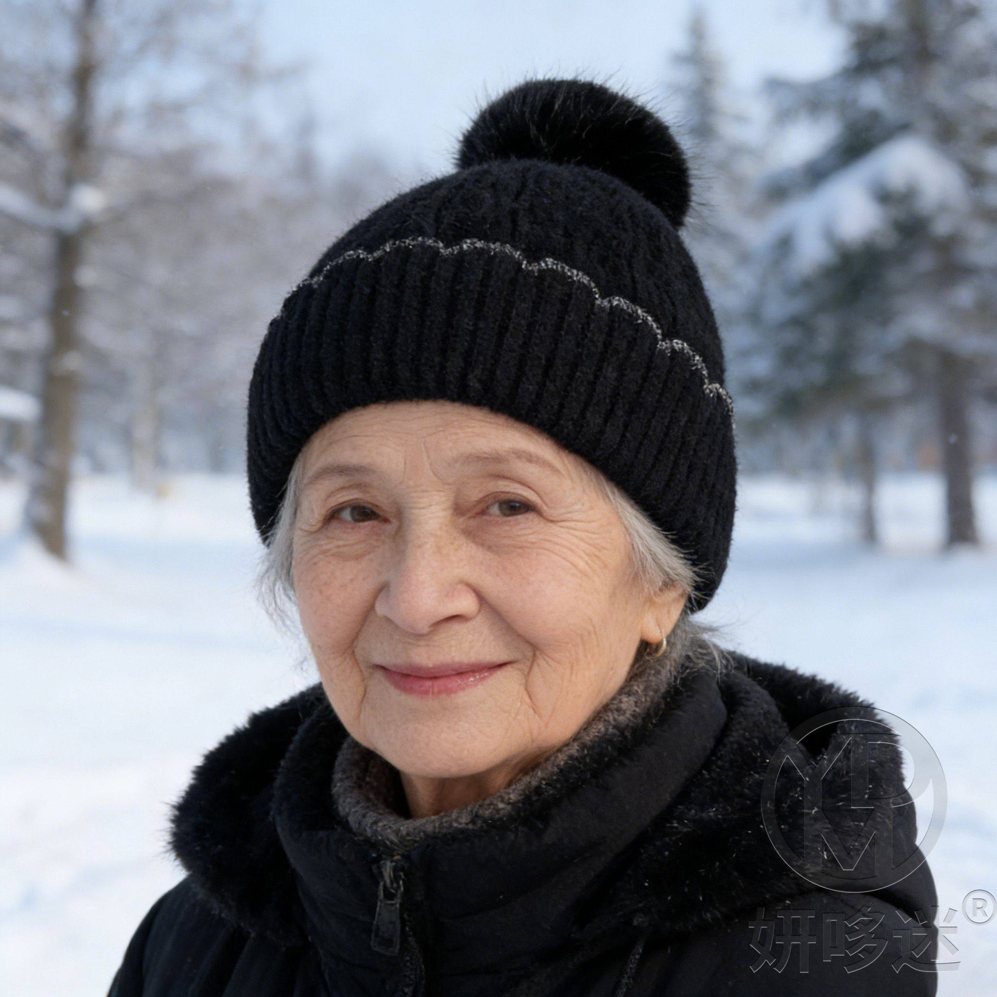 Elderly People's Hats, Woolen Hats, Ear Protection, Large Head Circumference, Mother's Hats, Middle-Aged Knitted Hats, Double-Layered Old Lady's Winter Hats for Women