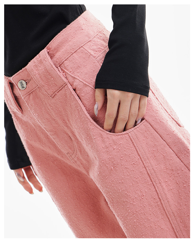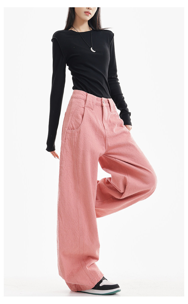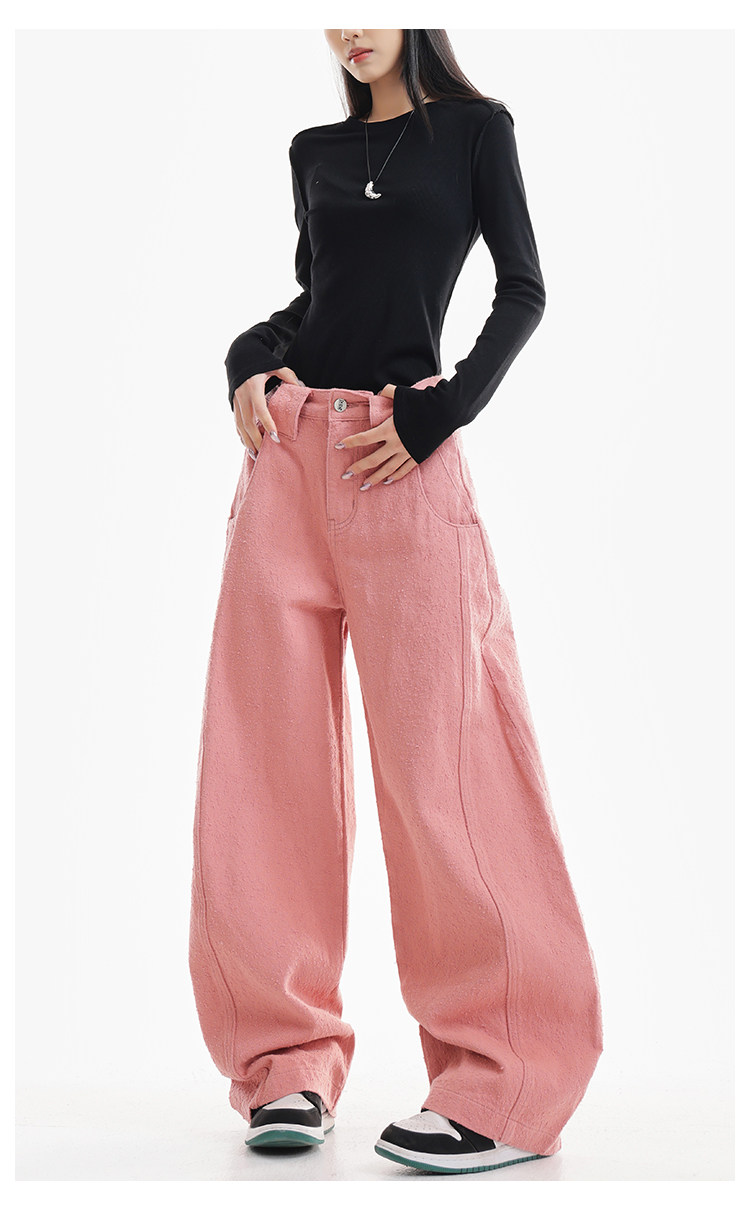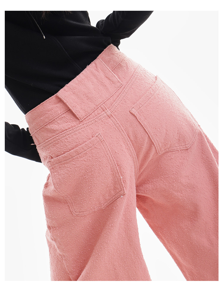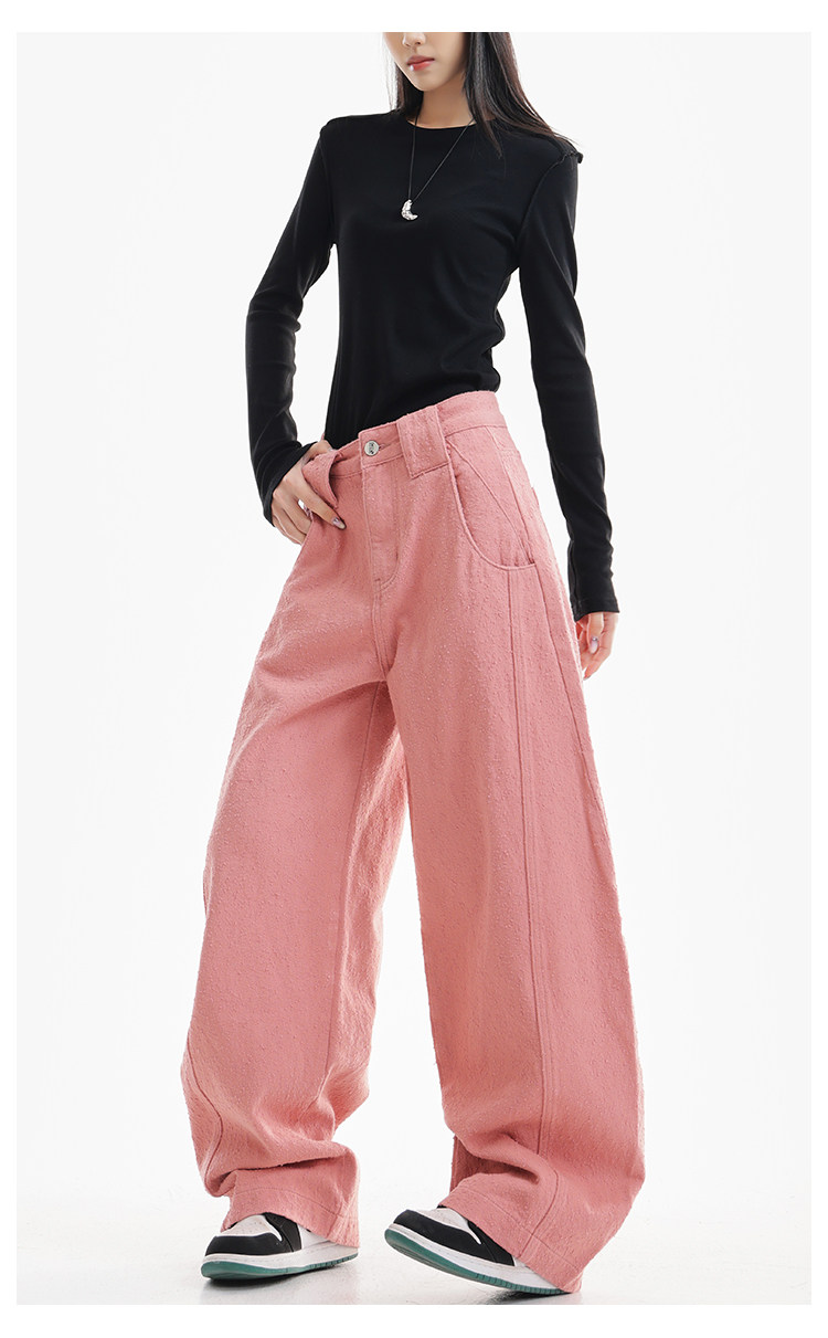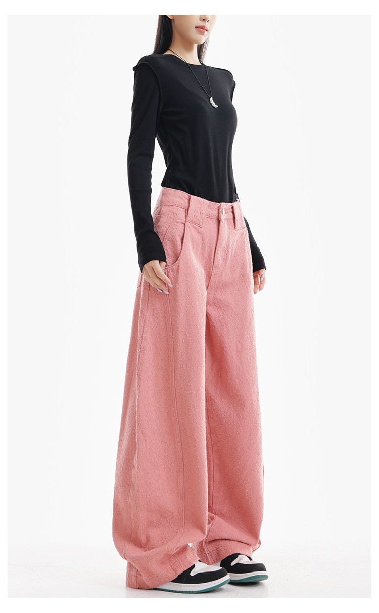 Kenabstudio Coral Red Wide-Leg Jeans for Women, Jacquard Craftsmanship, Loose Fit, Slimming, Versatile, Floor-Length Pants