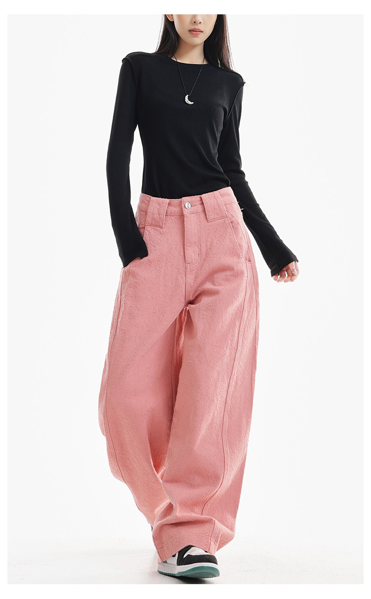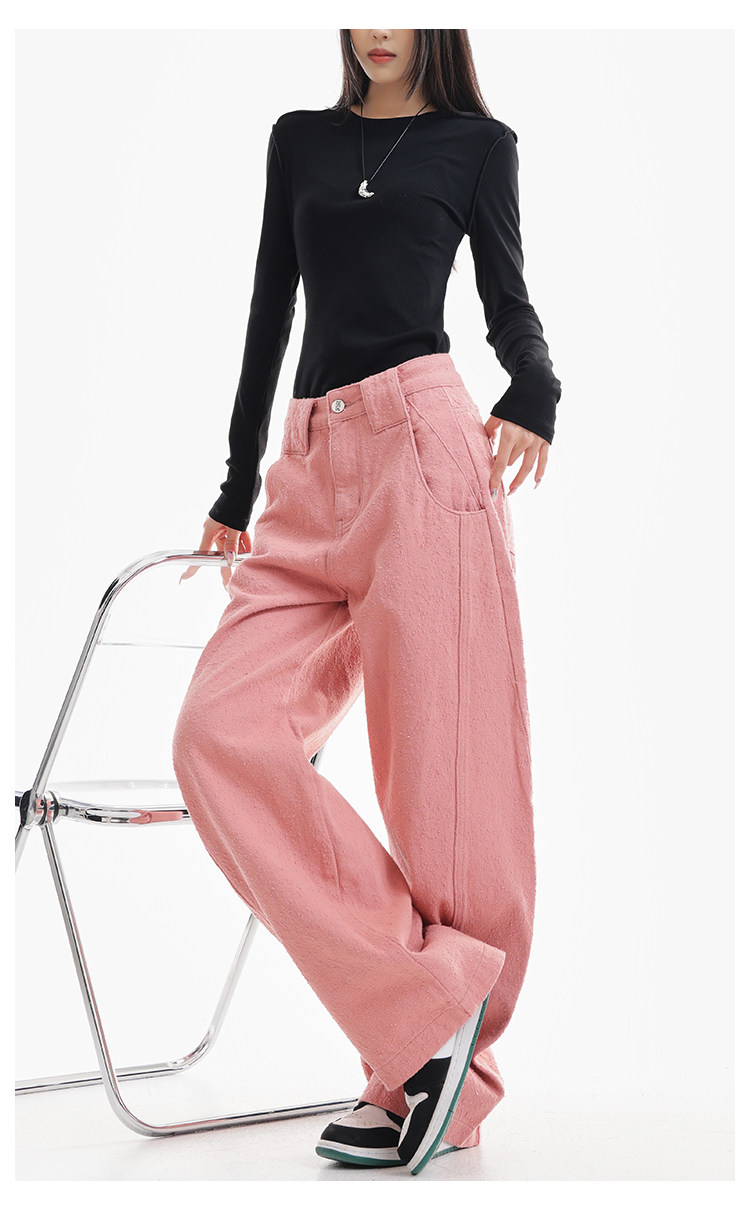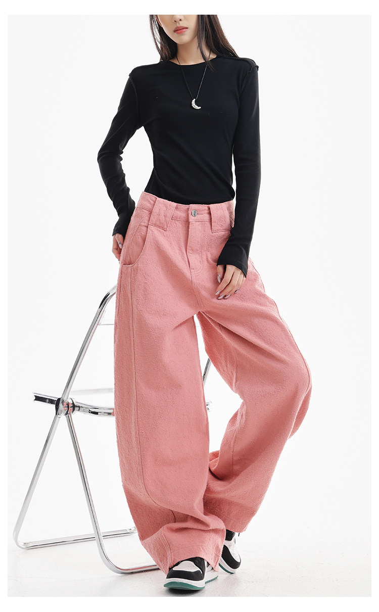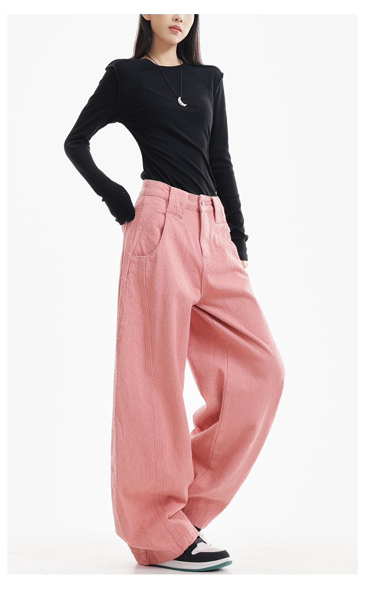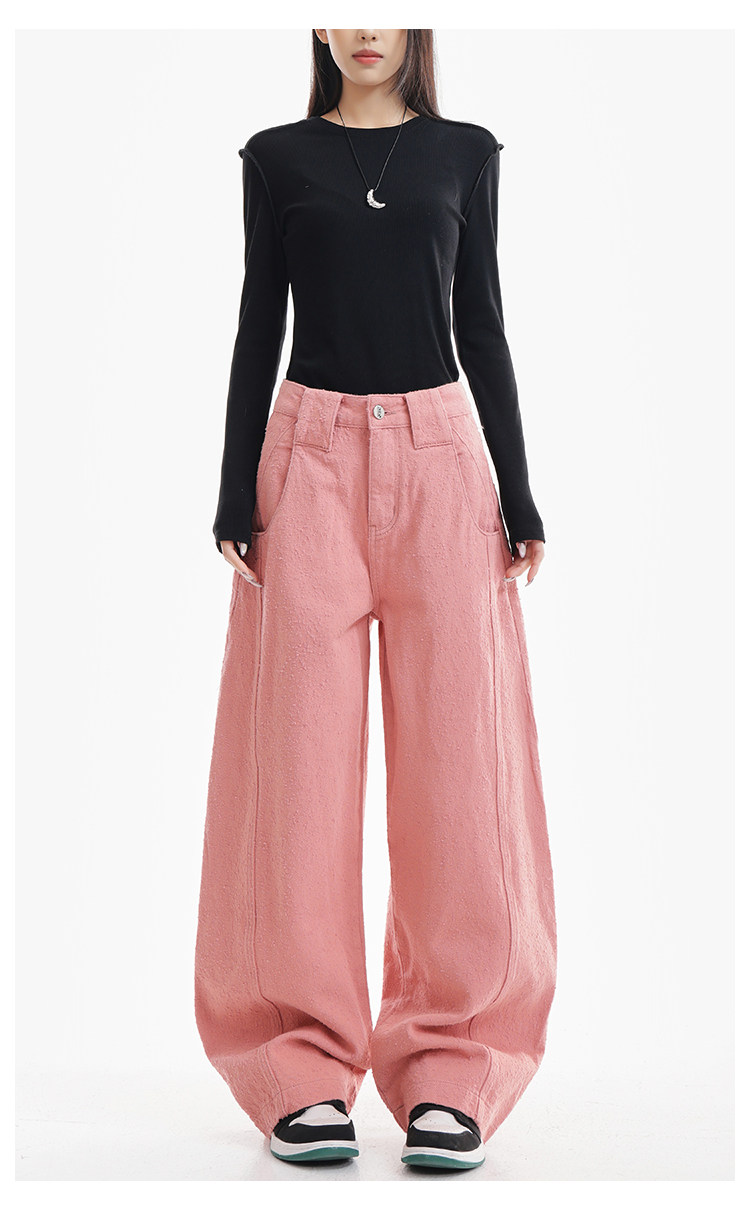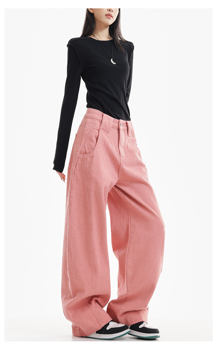 Kenabstudio Coral Red Wide-Leg Jeans for Women, Jacquard Craftsmanship, Loose Fit, Slimming, Versatile, Floor-Length Pants