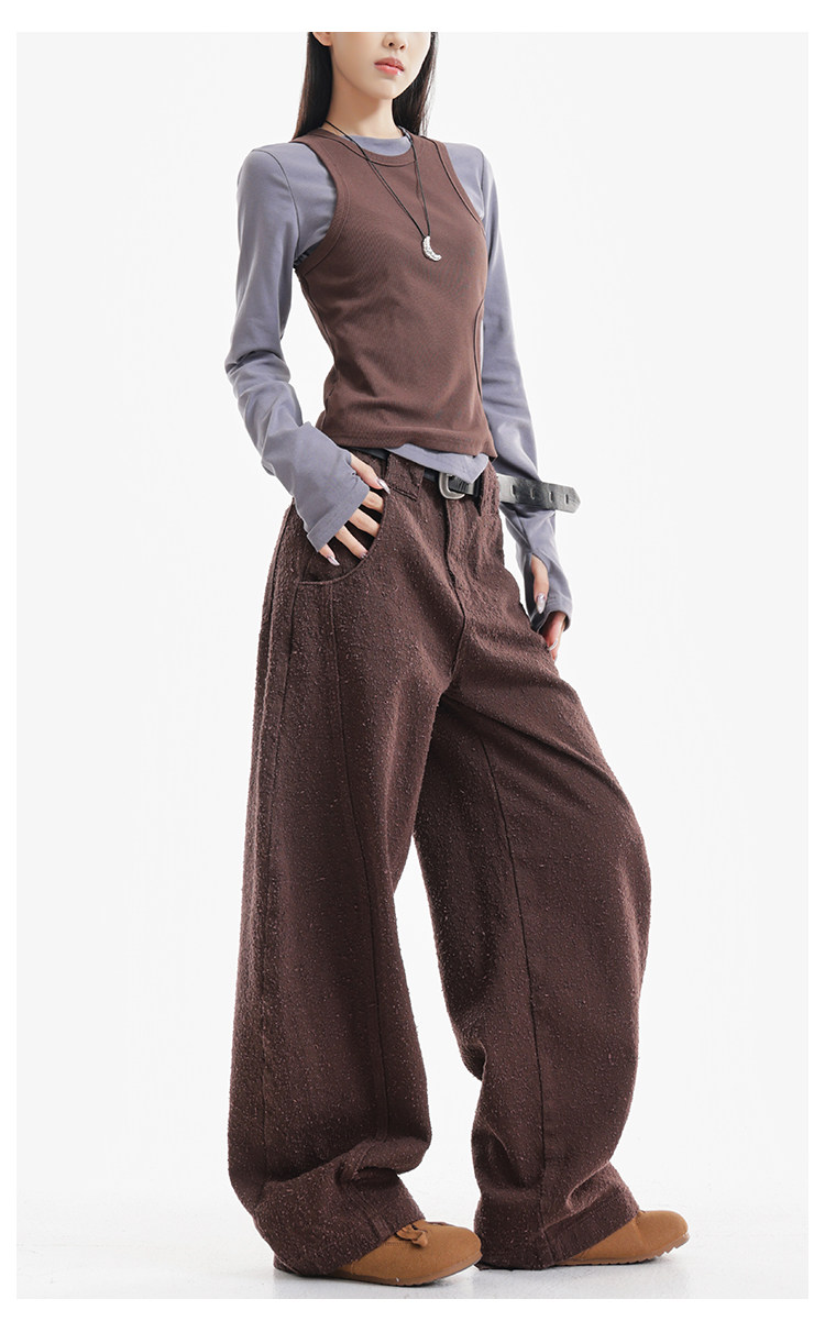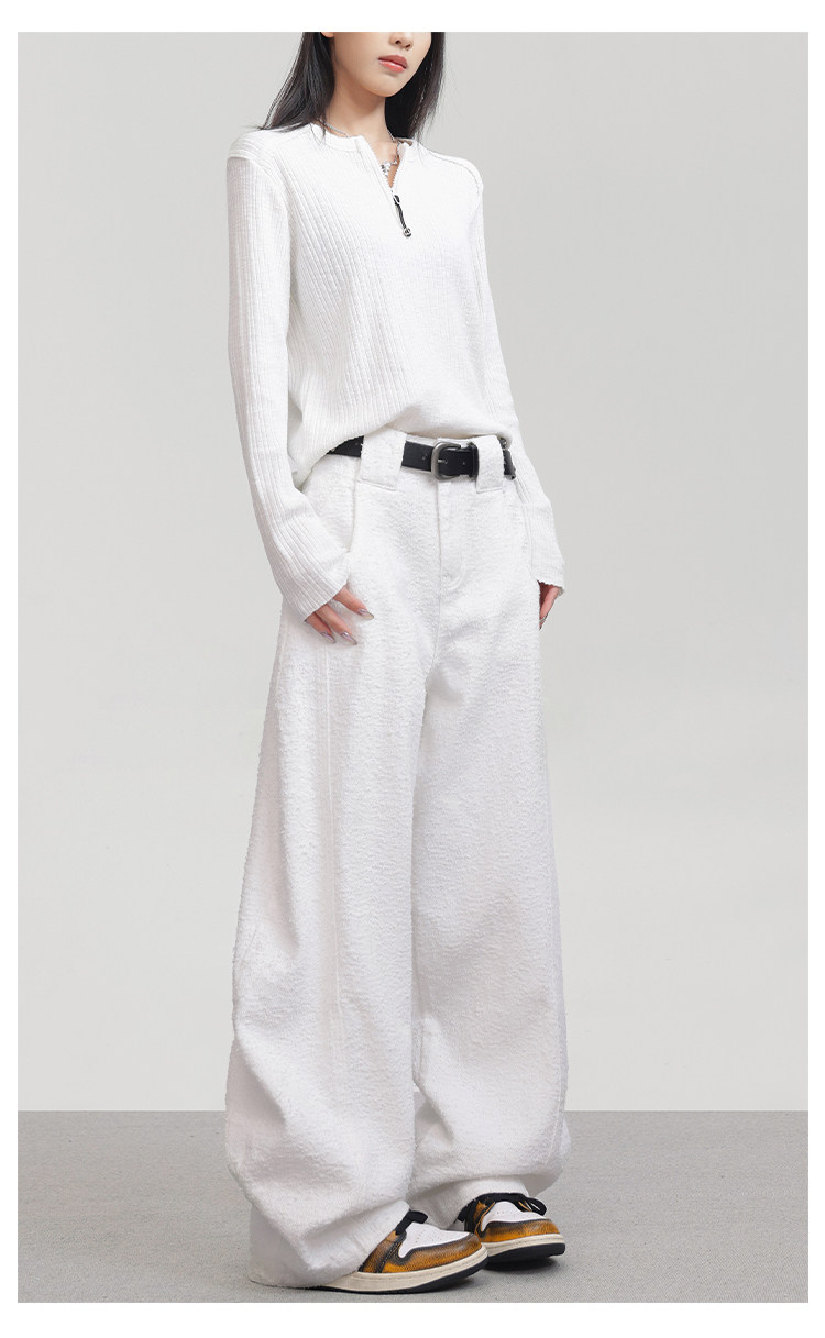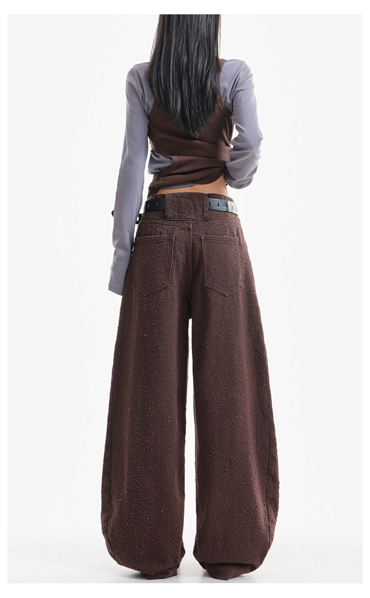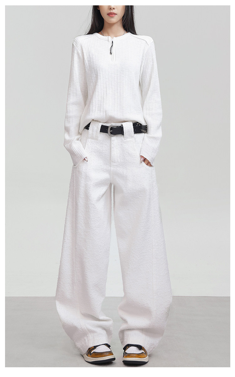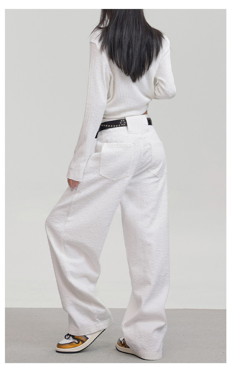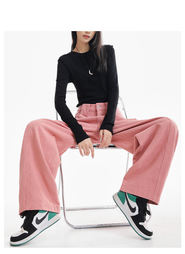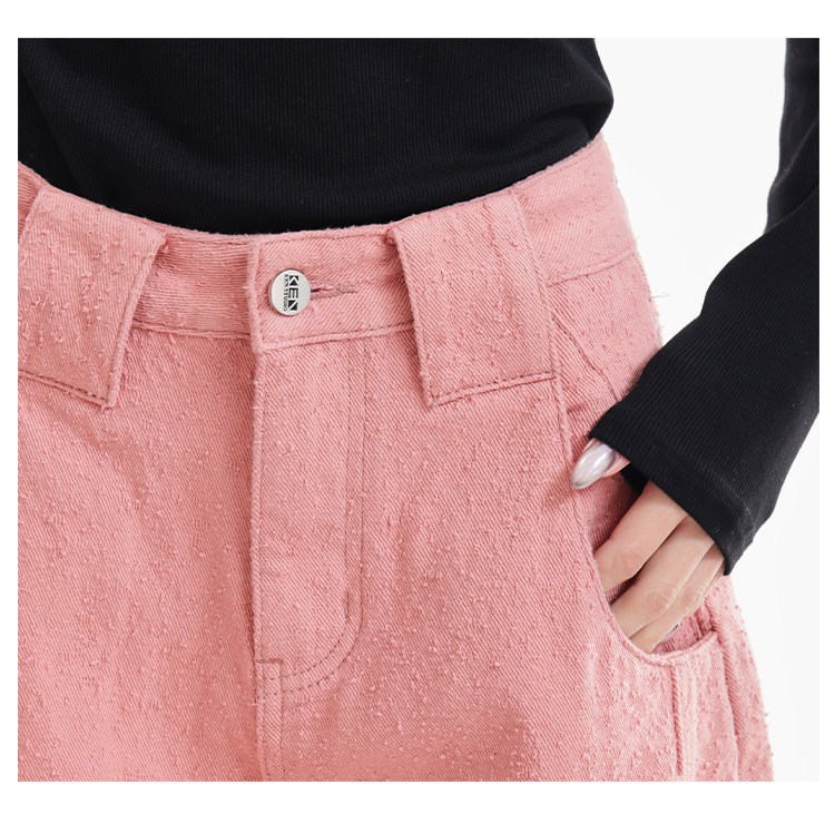 Kenabstudio Coral Red Wide-Leg Jeans for Women, Jacquard Craftsmanship, Loose Fit, Slimming, Versatile, Floor-Length Pants