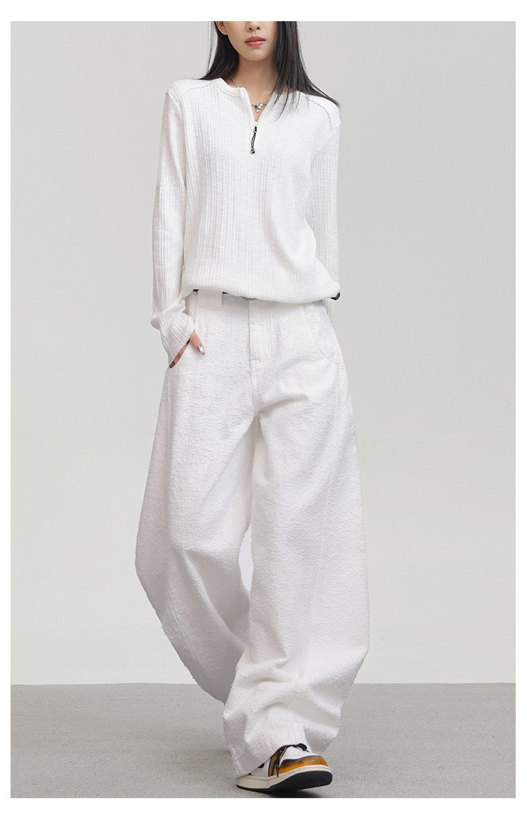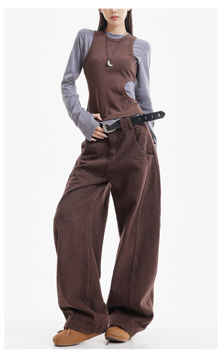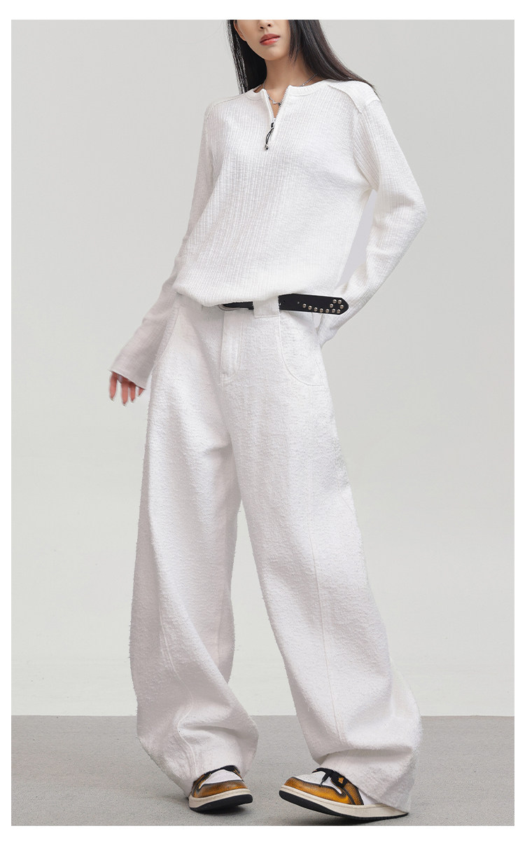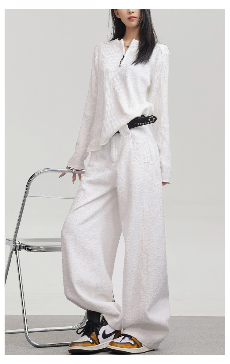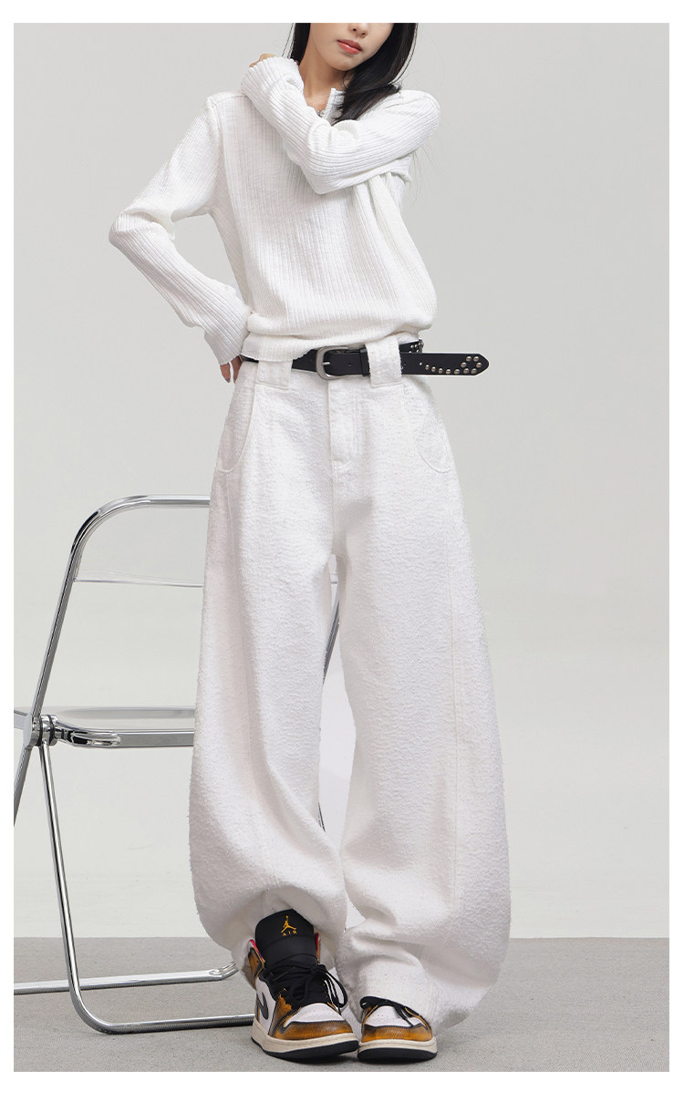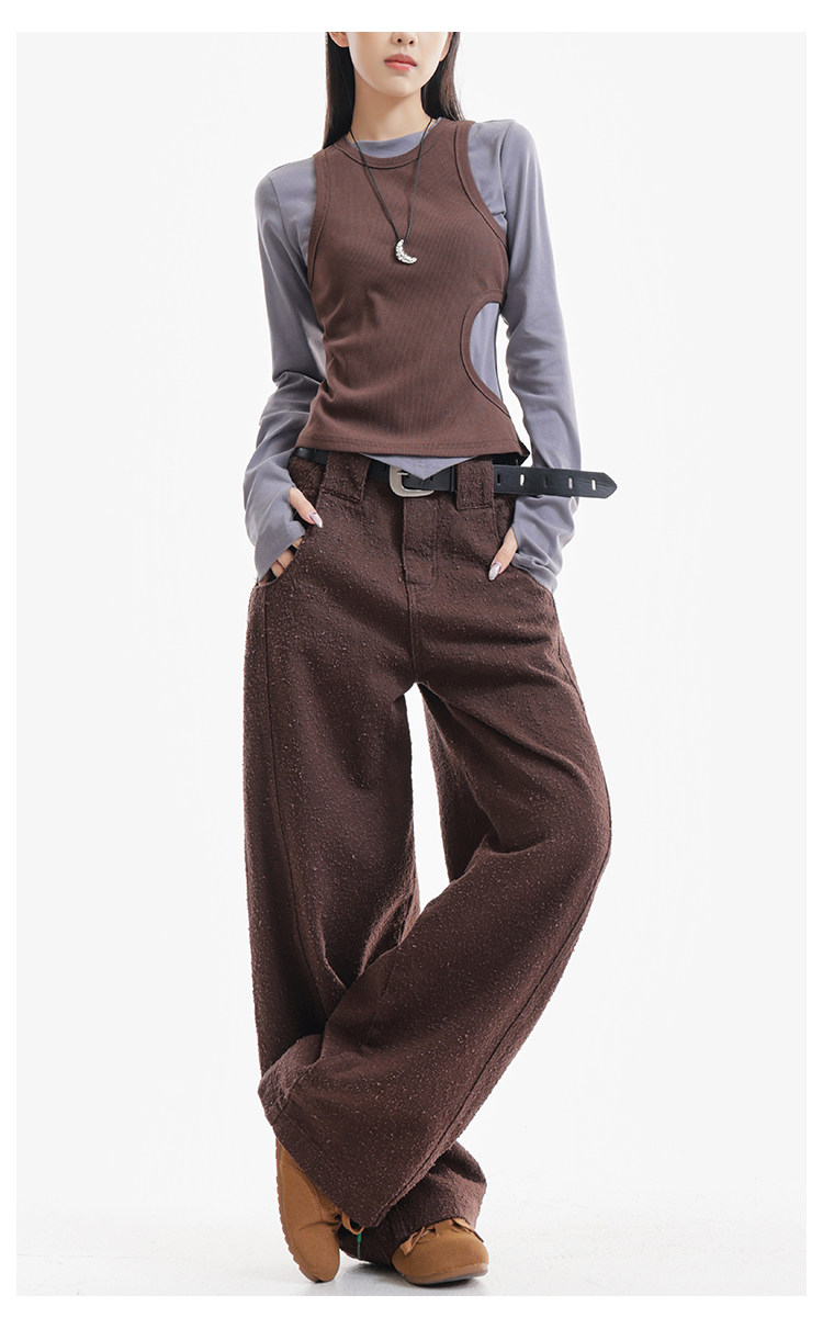 Kenabstudio Coral Red Wide-Leg Jeans for Women, Jacquard Craftsmanship, Loose Fit, Slimming, Versatile, Floor-Length Pants