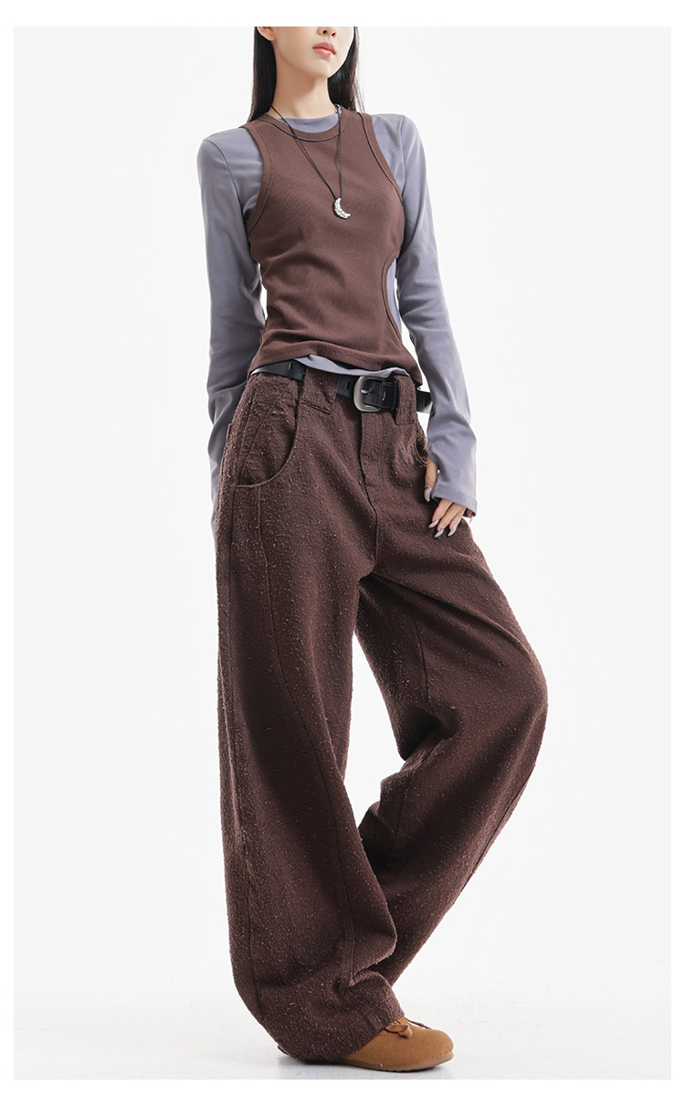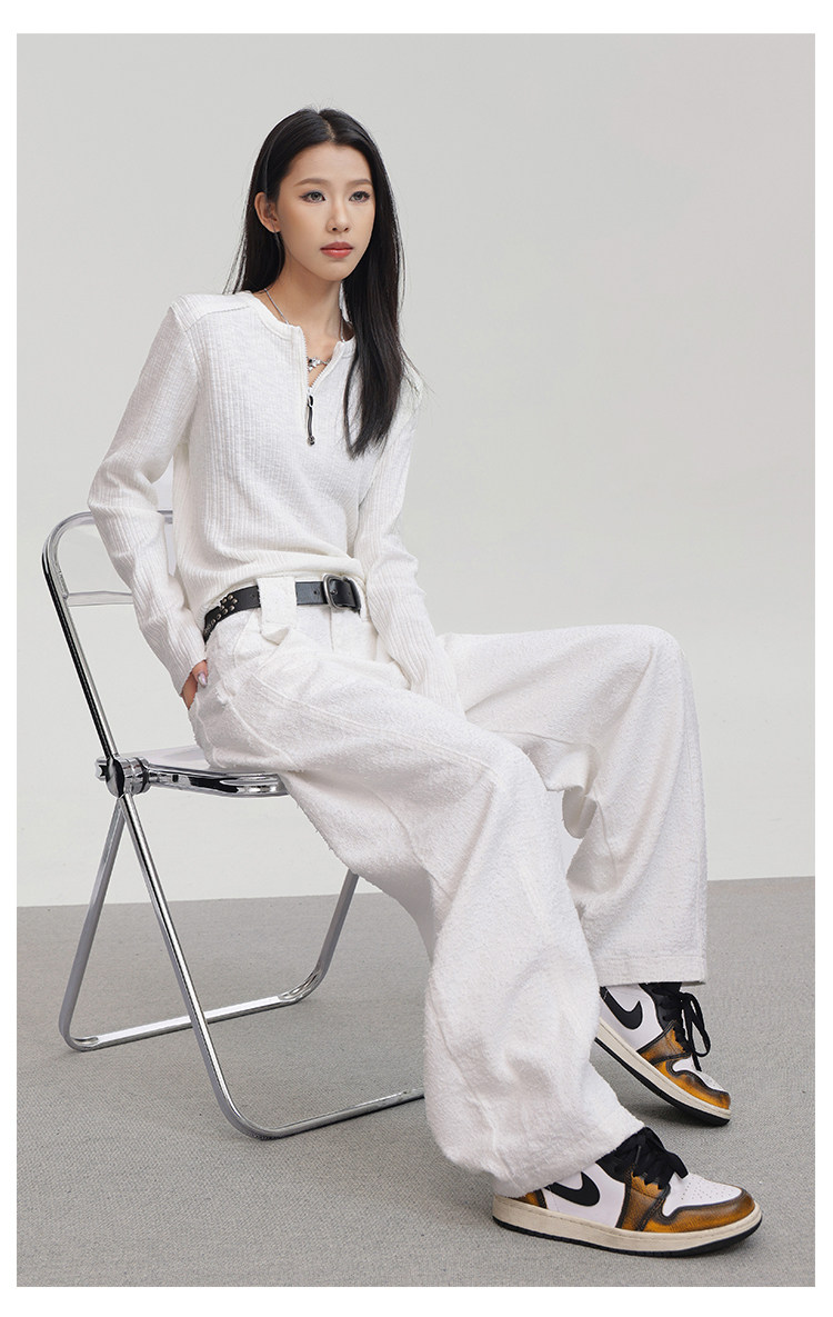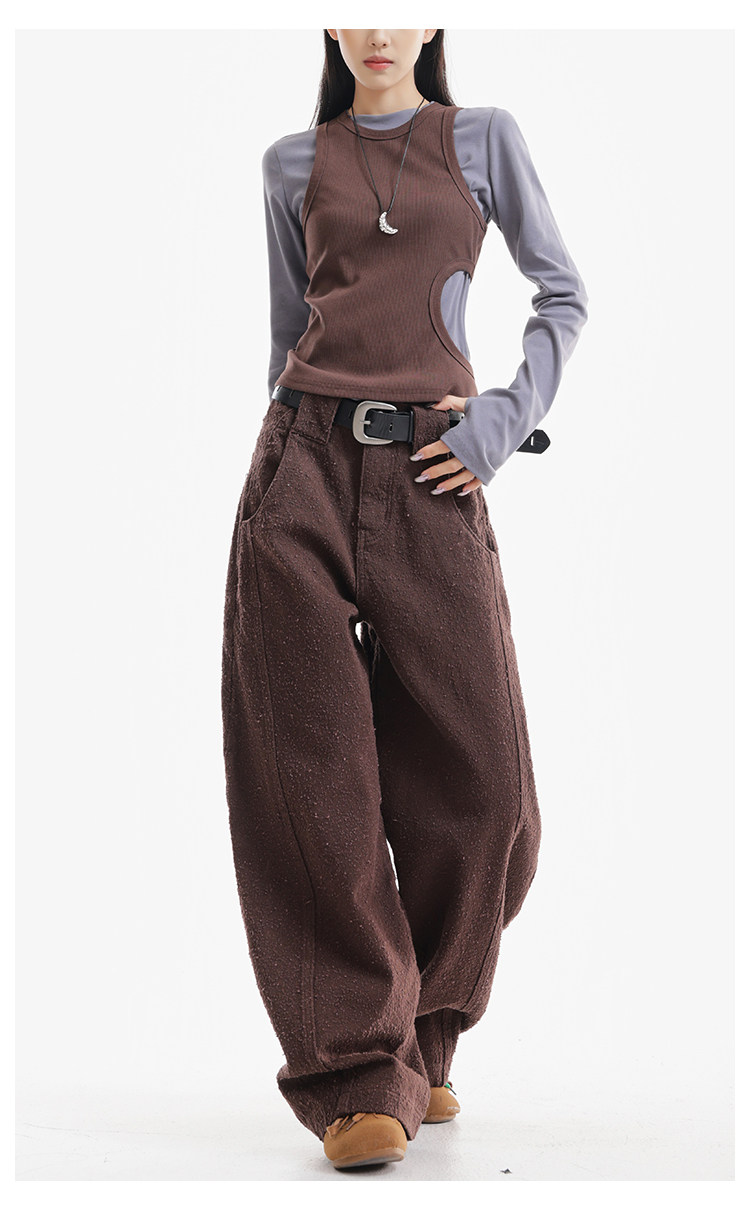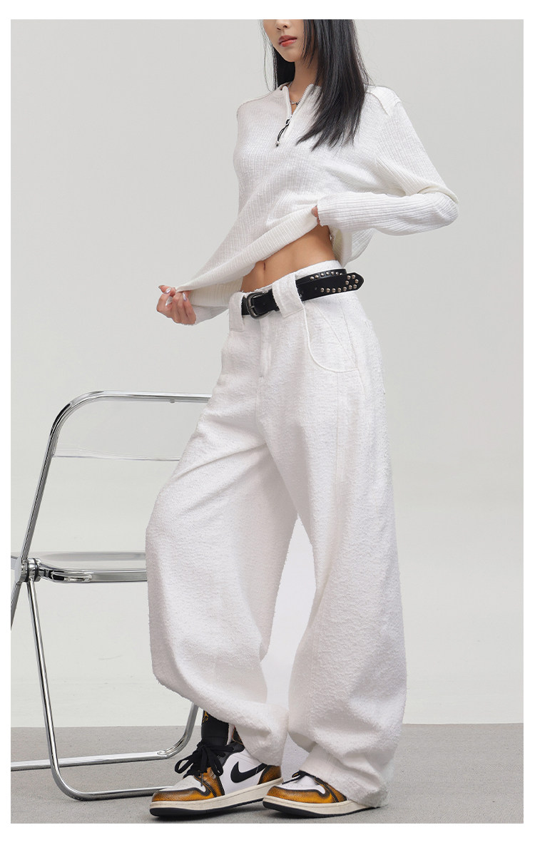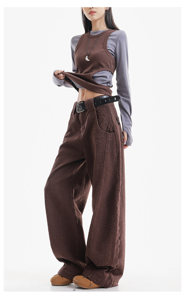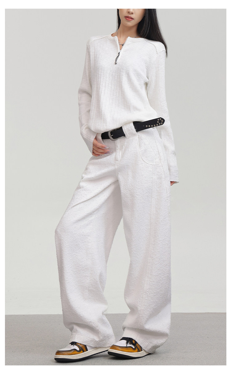 Kenabstudio Coral Red Wide-Leg Jeans for Women, Jacquard Craftsmanship, Loose Fit, Slimming, Versatile, Floor-Length Pants
