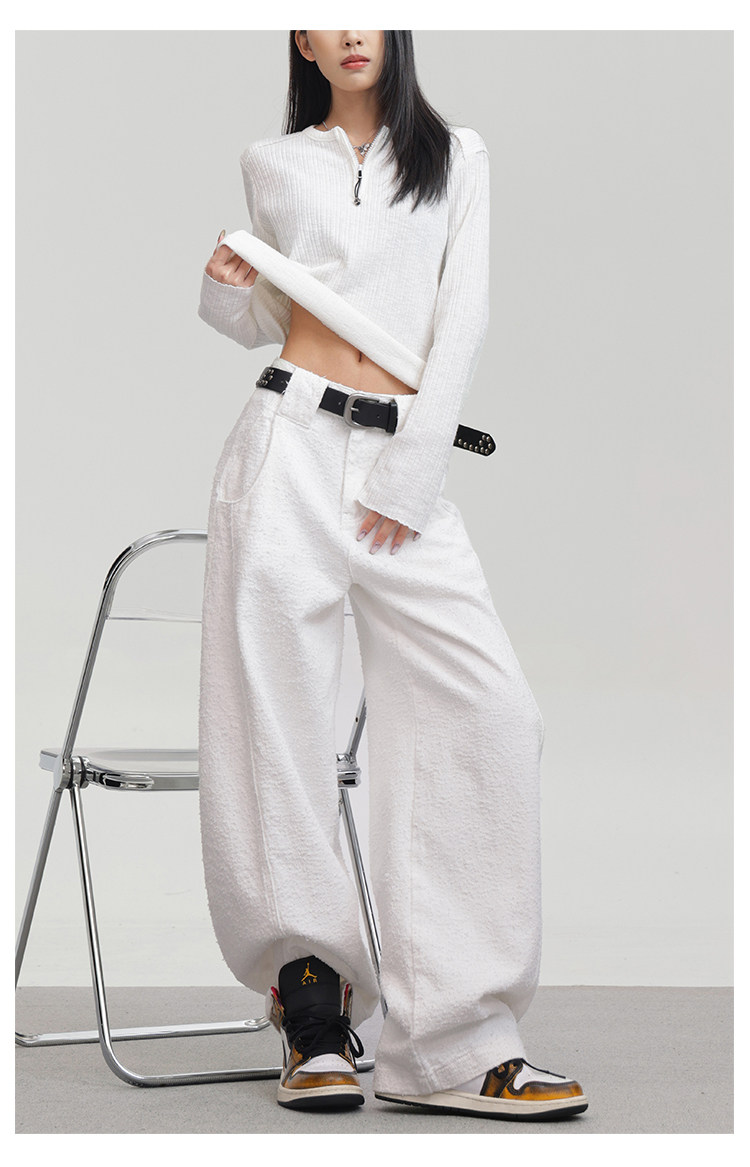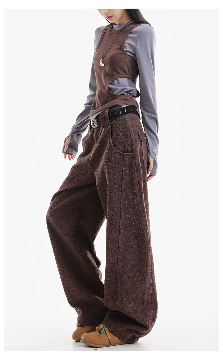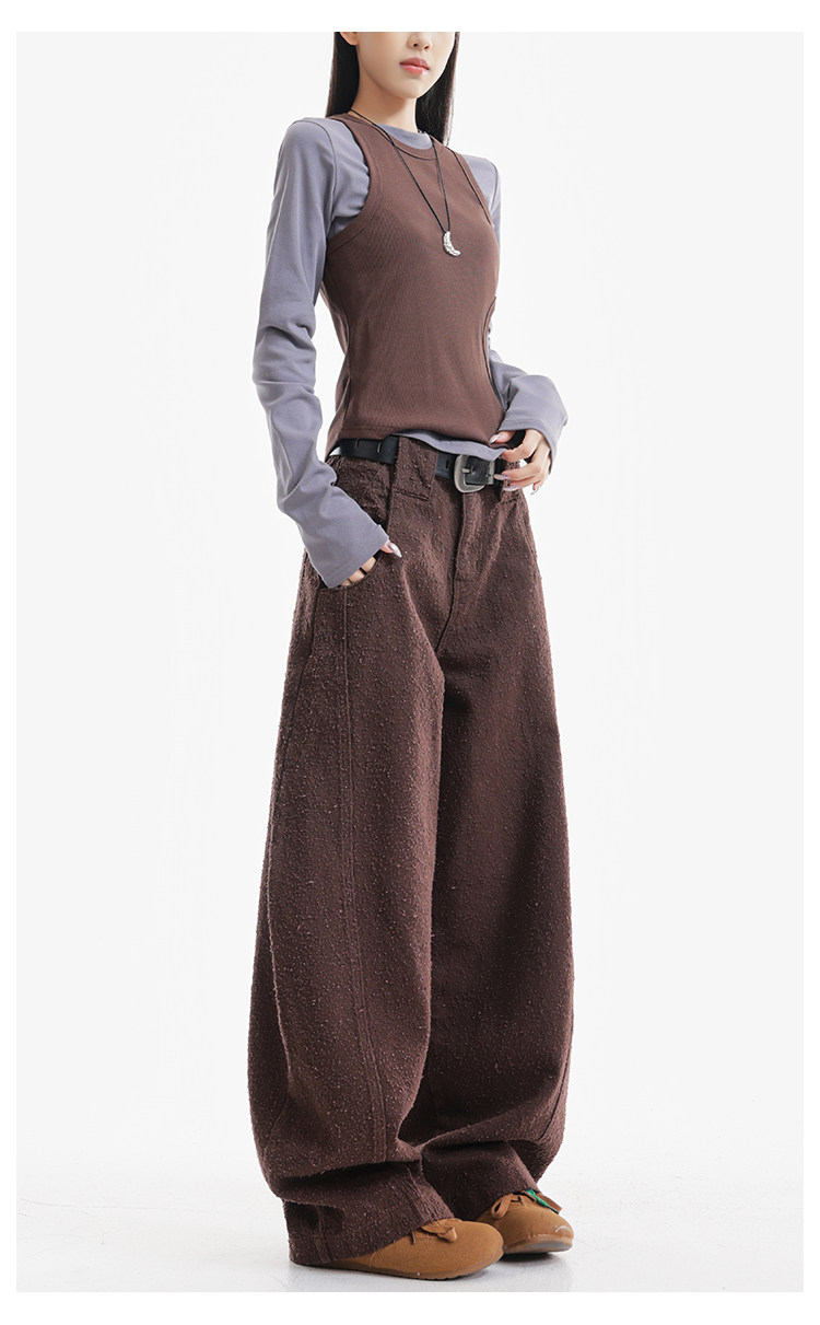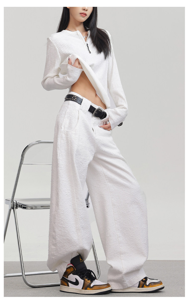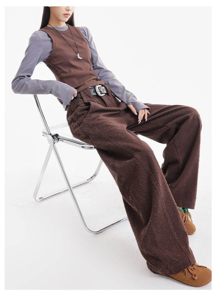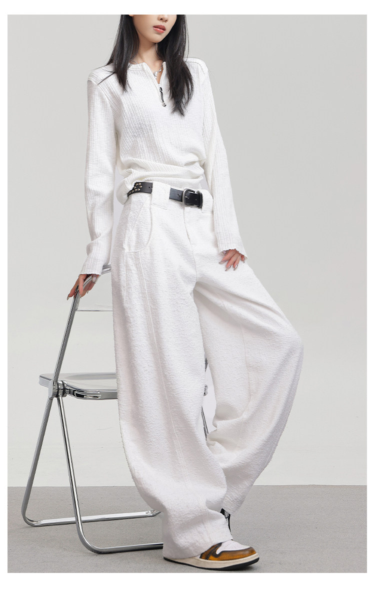Kenabstudio Coral Red Wide-Leg Jeans for Women, Jacquard Craftsmanship, Loose Fit, Slimming, Versatile, Floor-Length Pants
