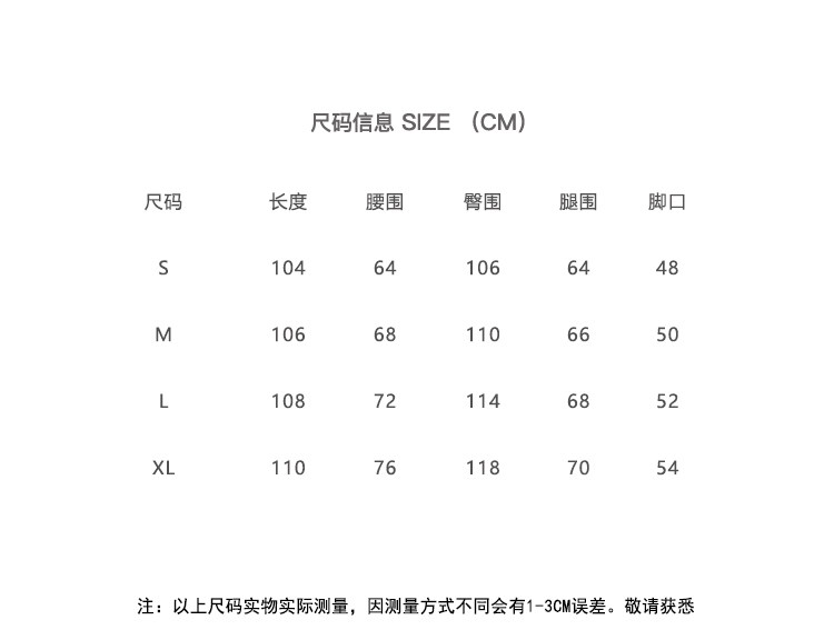 Outseam (cm) 99 cm 101.5 cm 104 cm 106.5 cm 109 cm