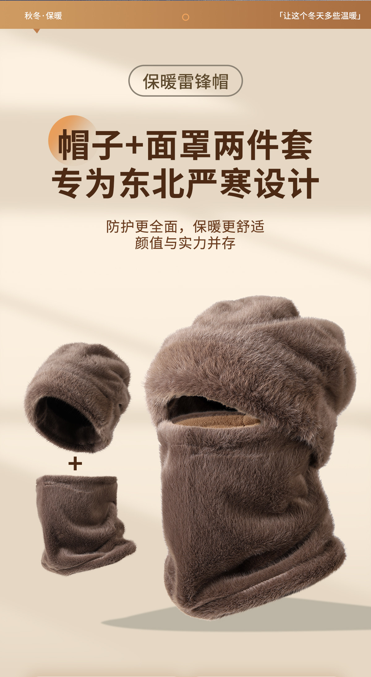 Men's Winter Warm Thickened Hat for Harbin, Northeast China, Cold-Proof Gear, Windproof Mask, Plush Outdoor Cycling Ear Protection
