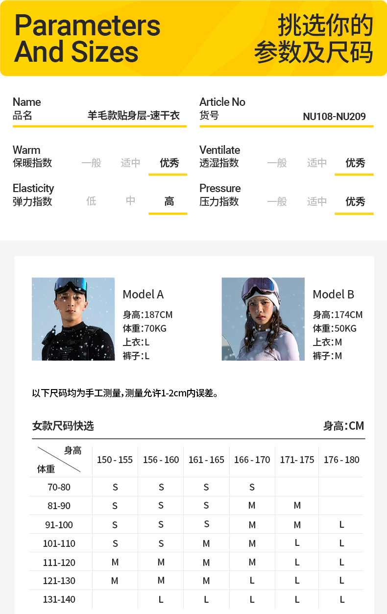 [Ice Weave]Nanen Merino Wool Quick-Dry Clothing for Women, Outdoor Skiing and Mountaineering Thermal Underwear, Winter Base Layer for Men