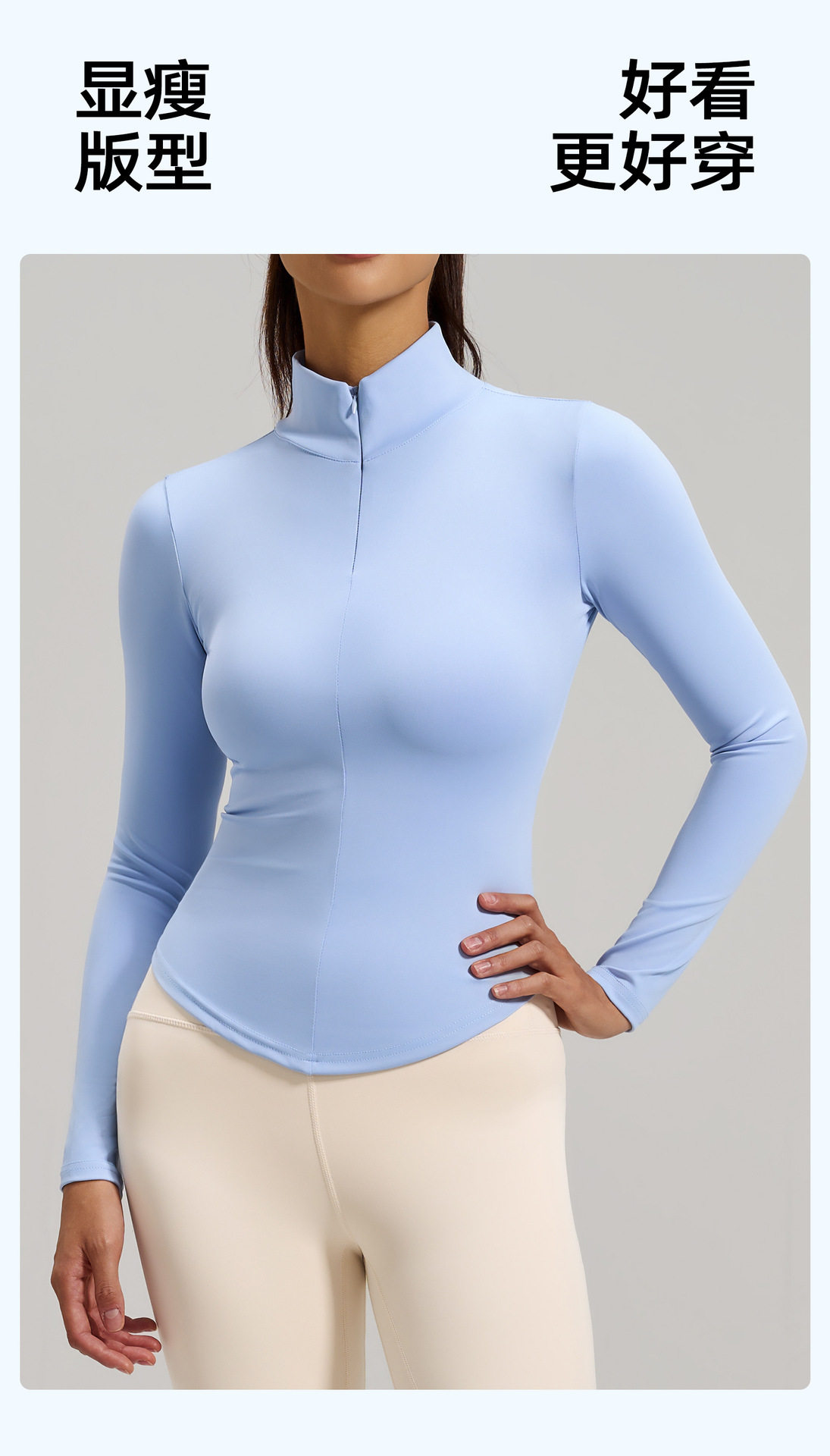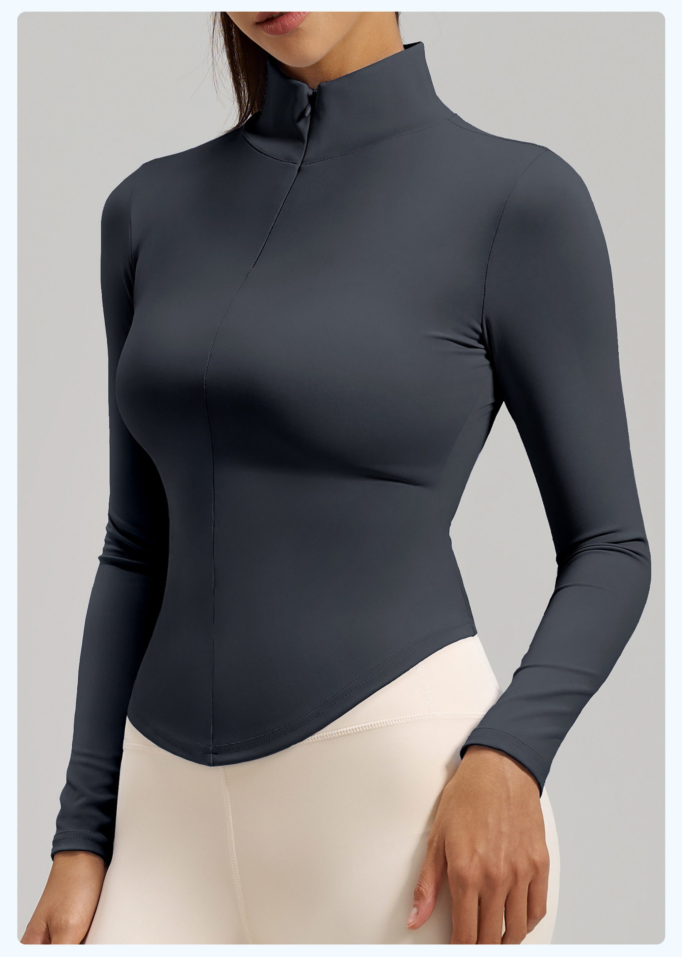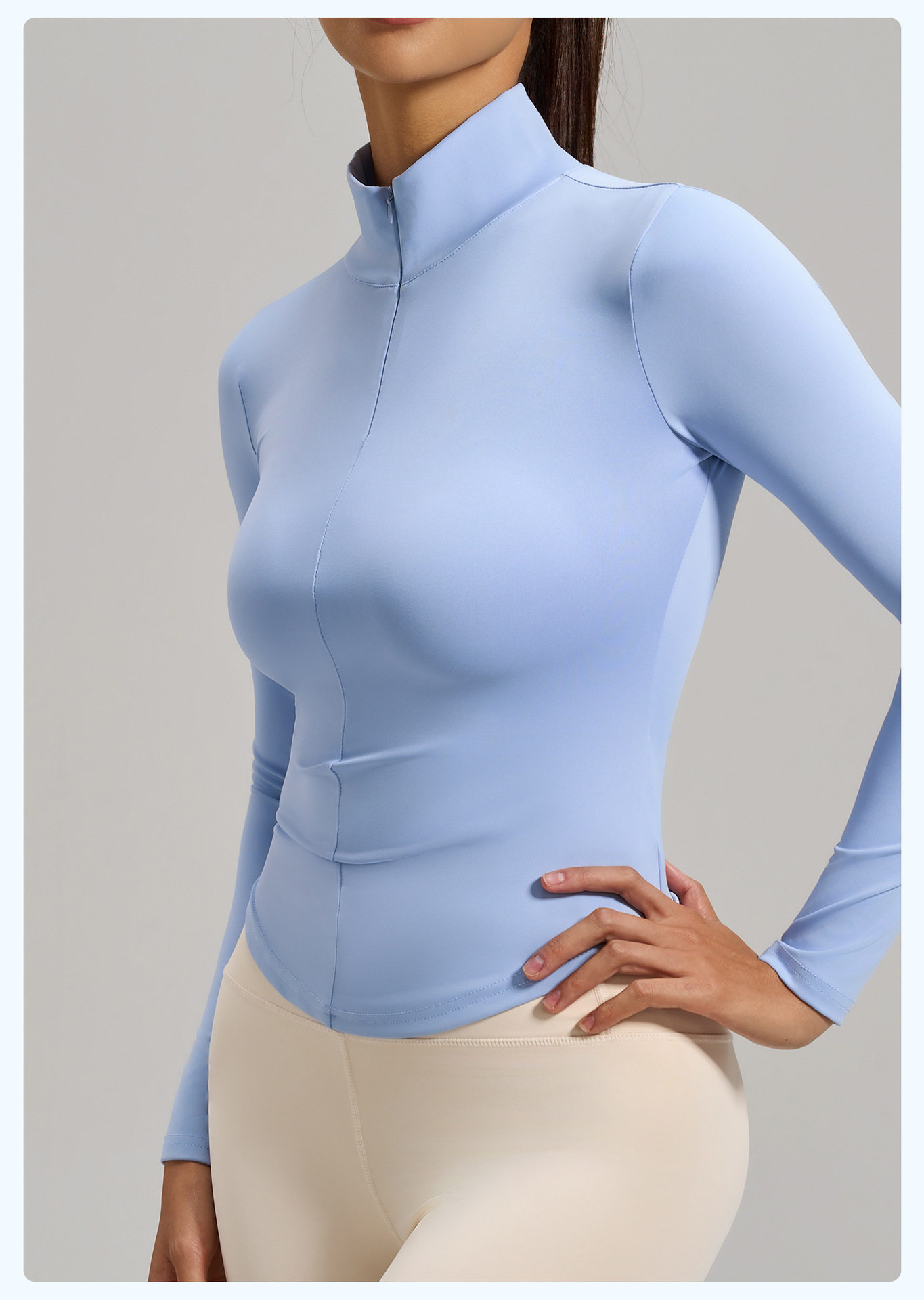 Simple style stand-up collar half-zip yoga T-shirt women's long-sleeved nude tight-fitting quick-drying sports fitness clothing top