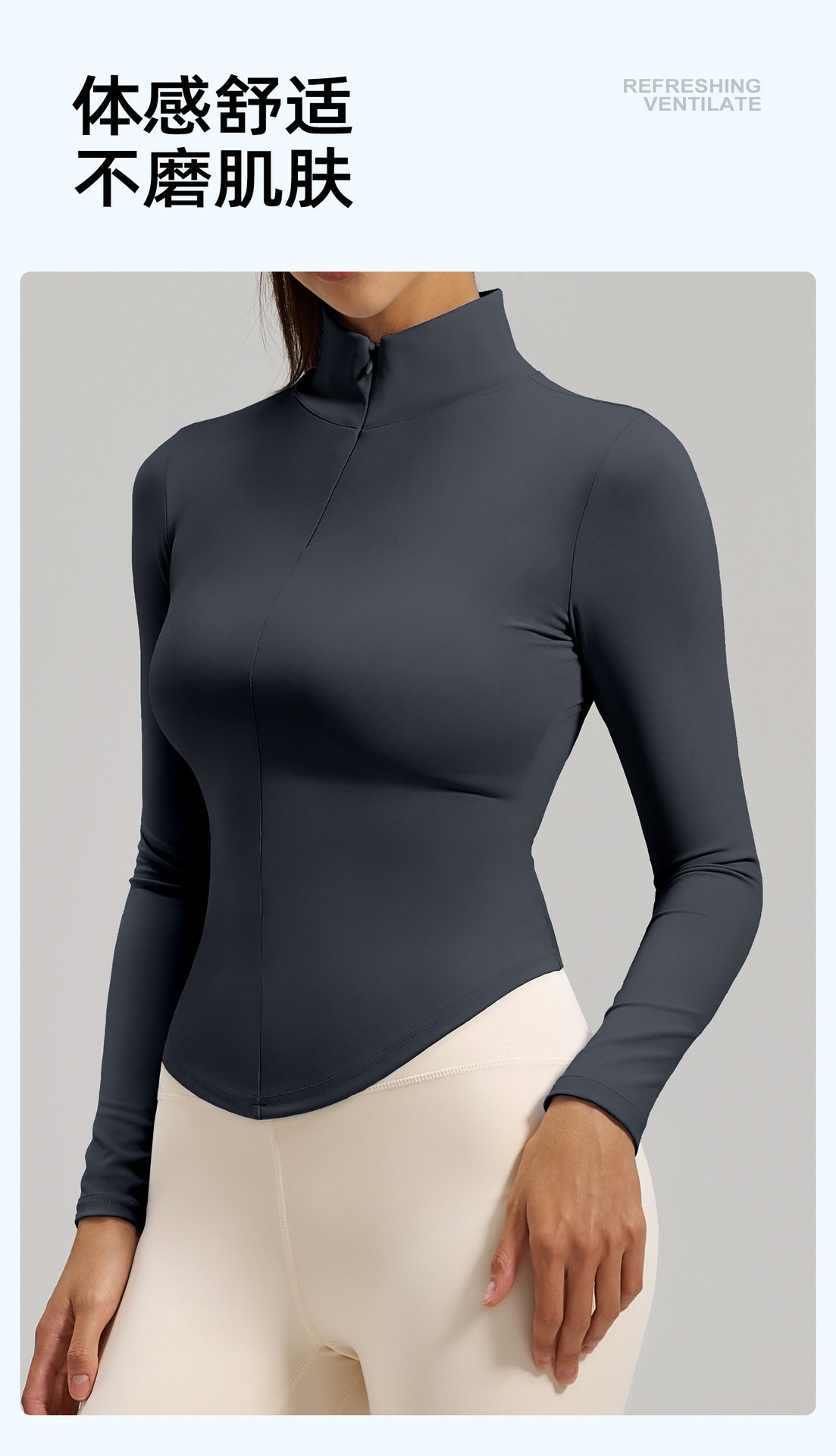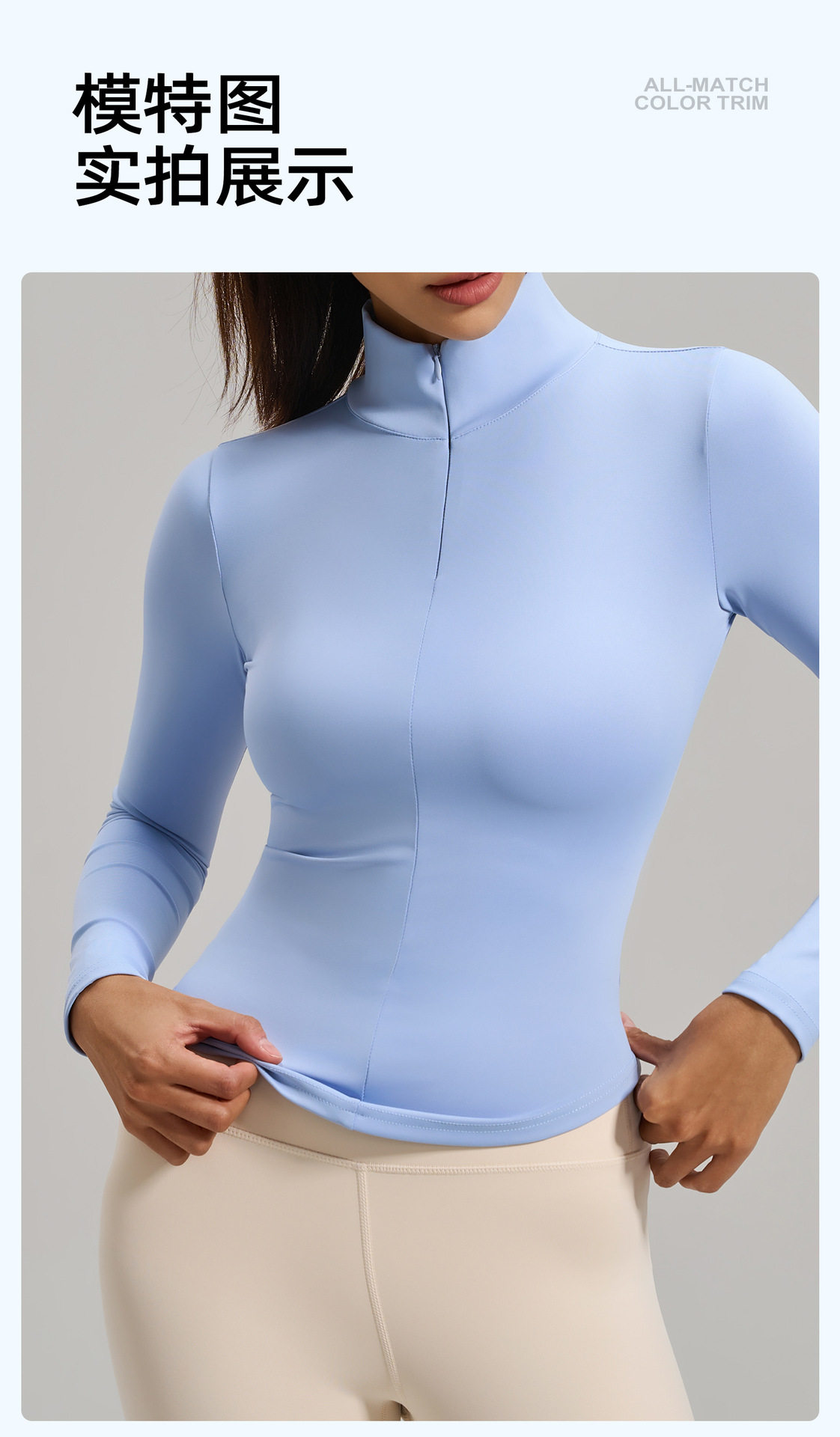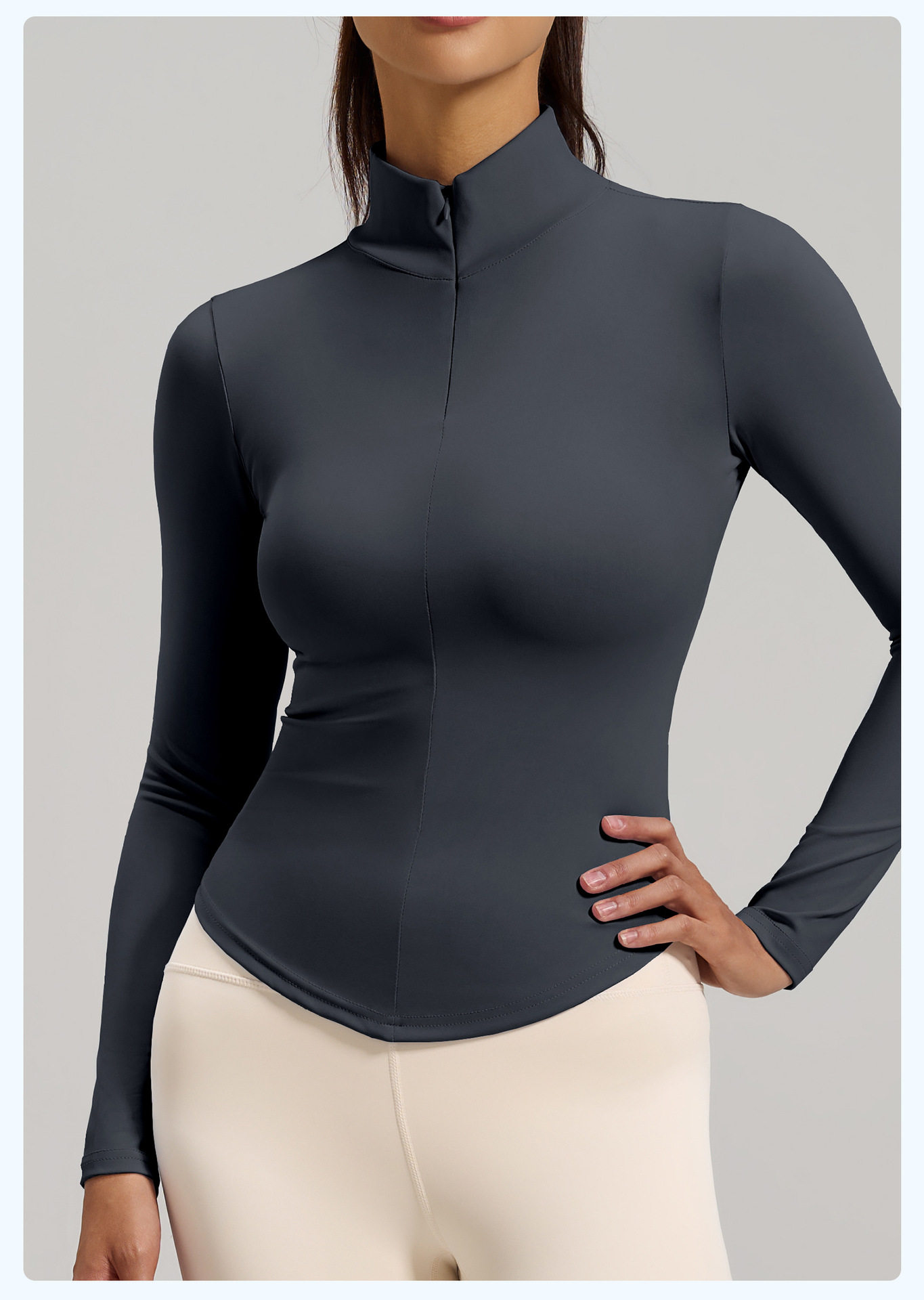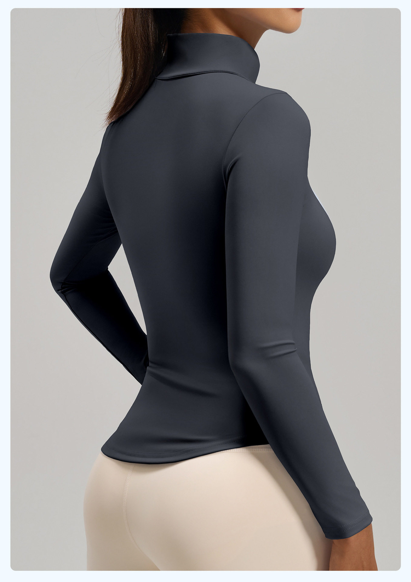 Simple style stand-up collar half-zip yoga T-shirt women's long-sleeved nude tight-fitting quick-drying sports fitness clothing top