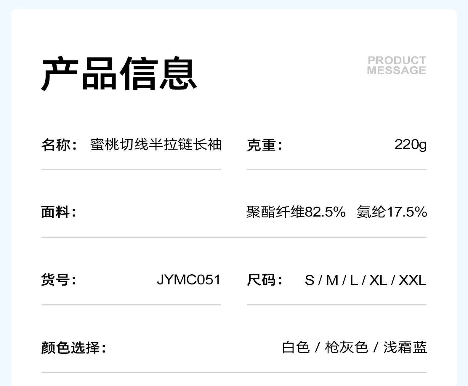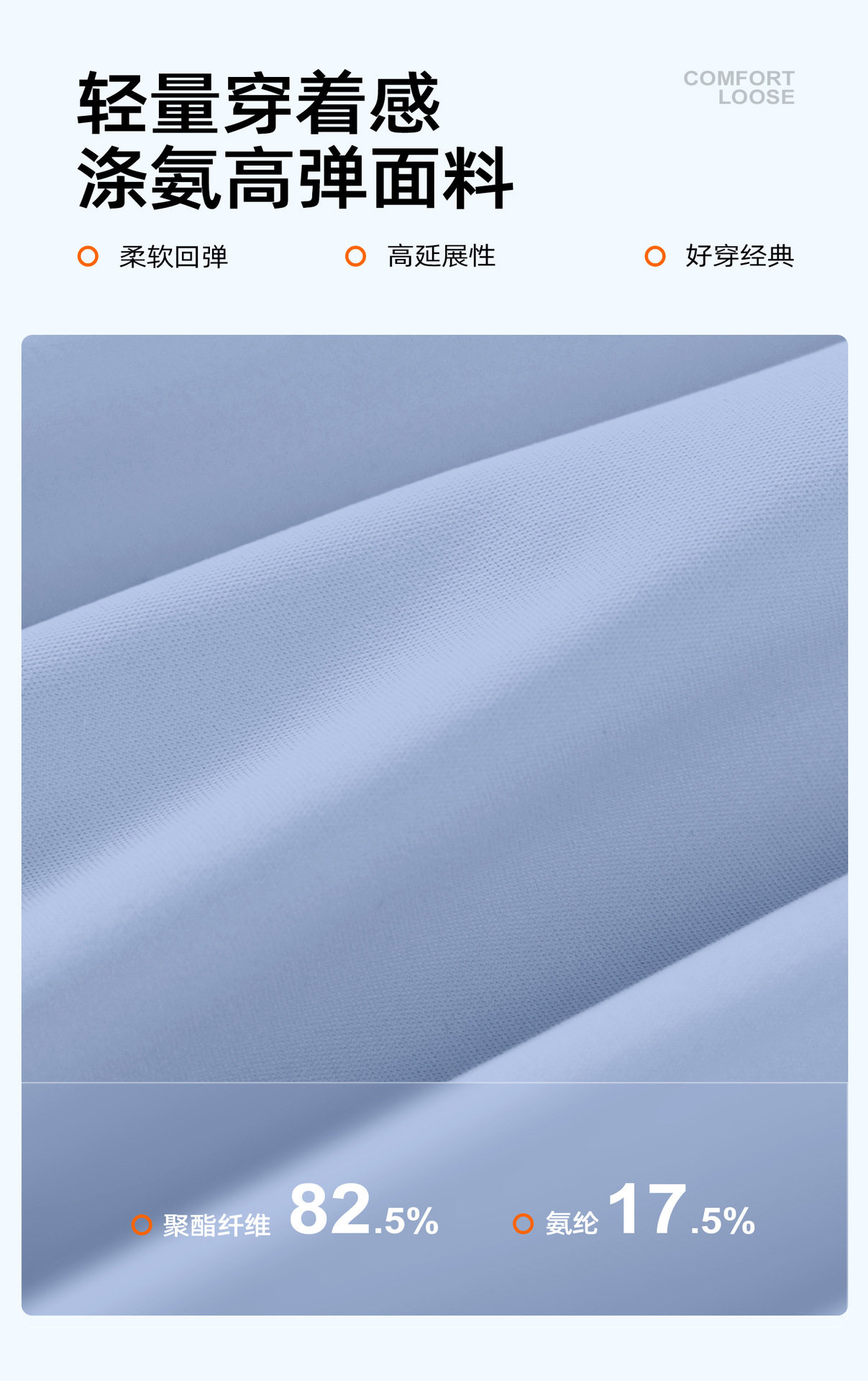 Material ingredients Polyester fiber 82.5% polyurethane elastic fiber (spandex) 17.5%