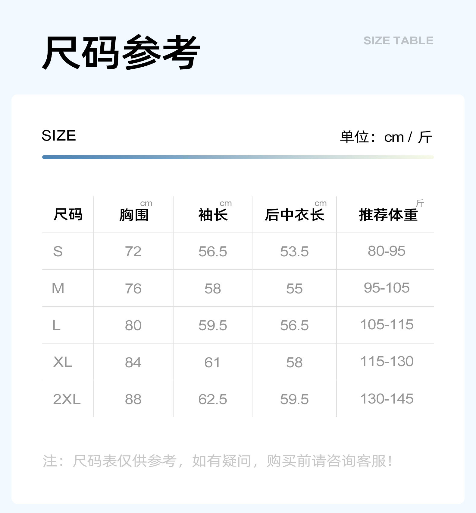 China(cm) 72-76 76-81 81-87 87-93 93-98