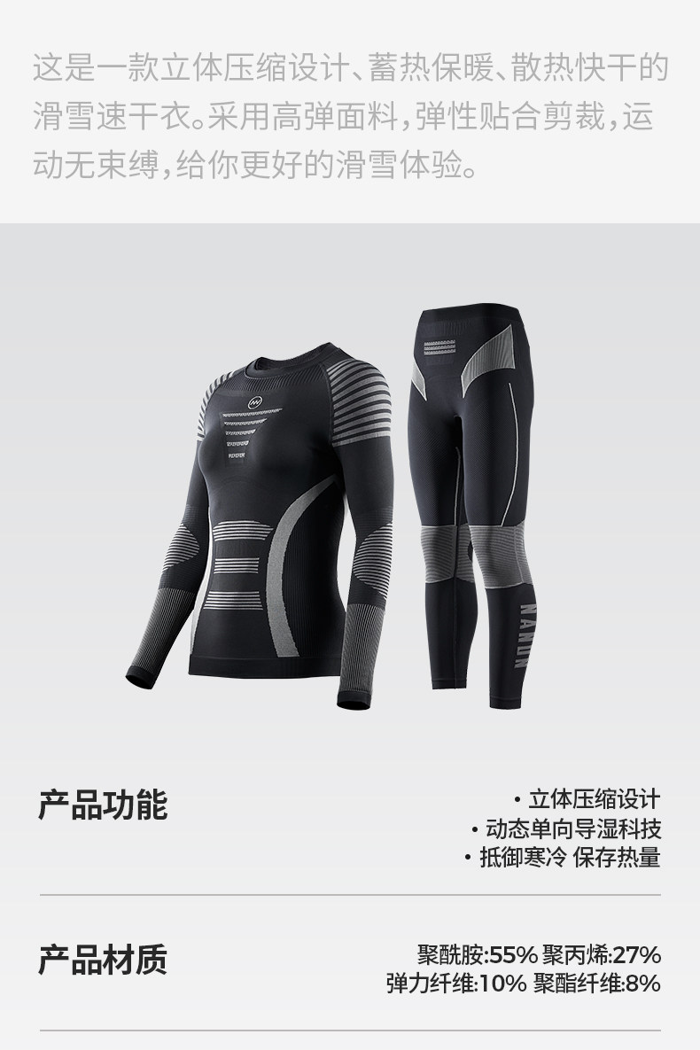 Nanen Quick-Drying Ski Clothing for Women, Sweat-Wicking Compression Functional Underwear, Men's Tight-Fitting Breathable Thermal Set
