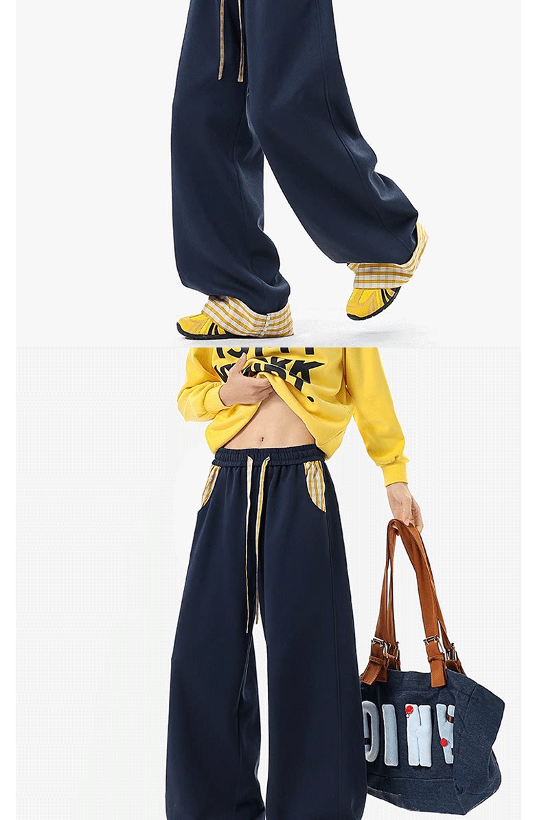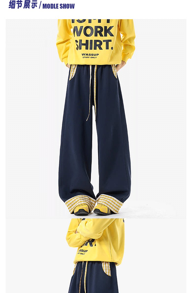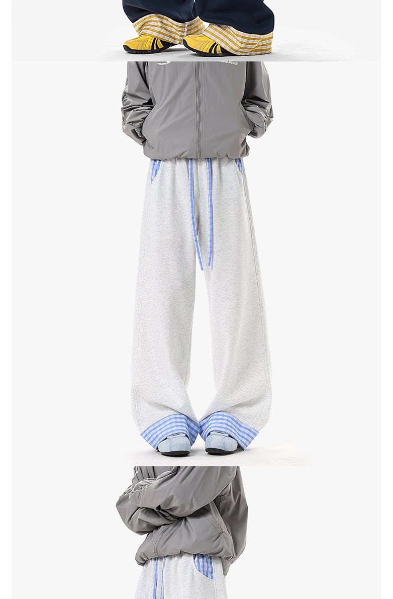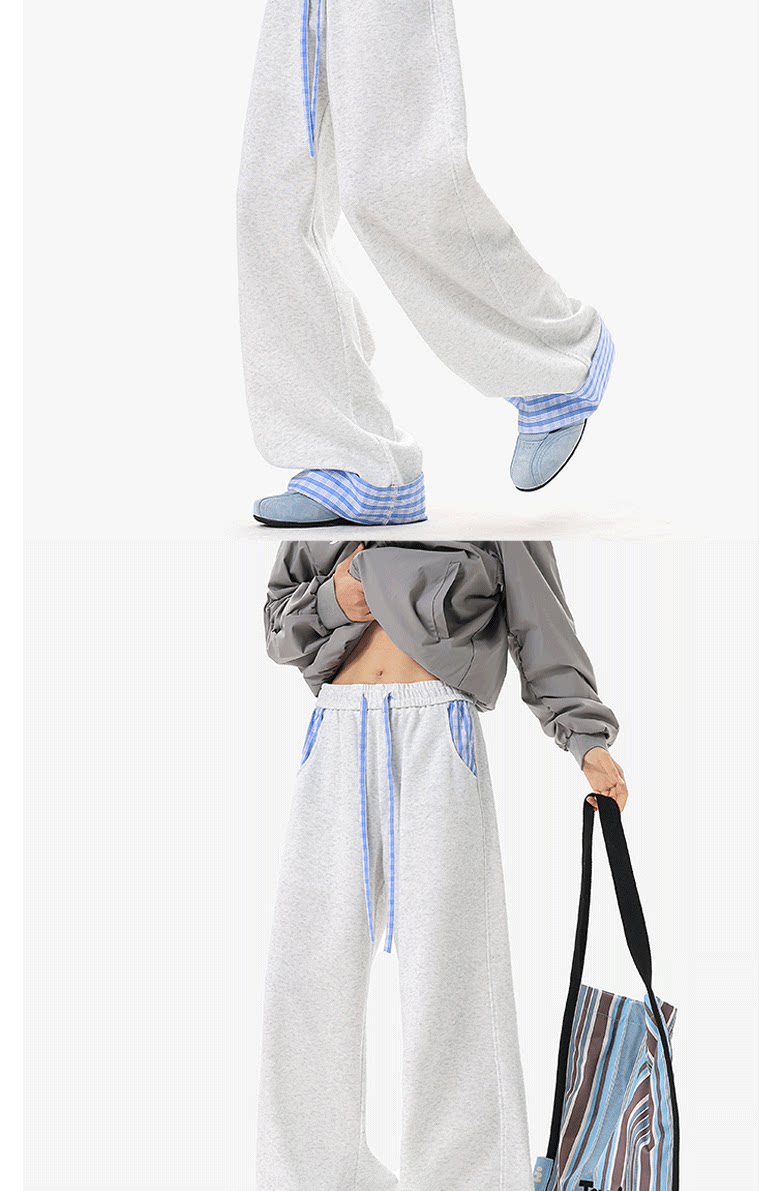 Wassup Tenet American-Style Plaid Color-Blocked Curved Hem Sweatpants for Men, Spring Casual Drapey Long Pants with a Relaxed Fit
