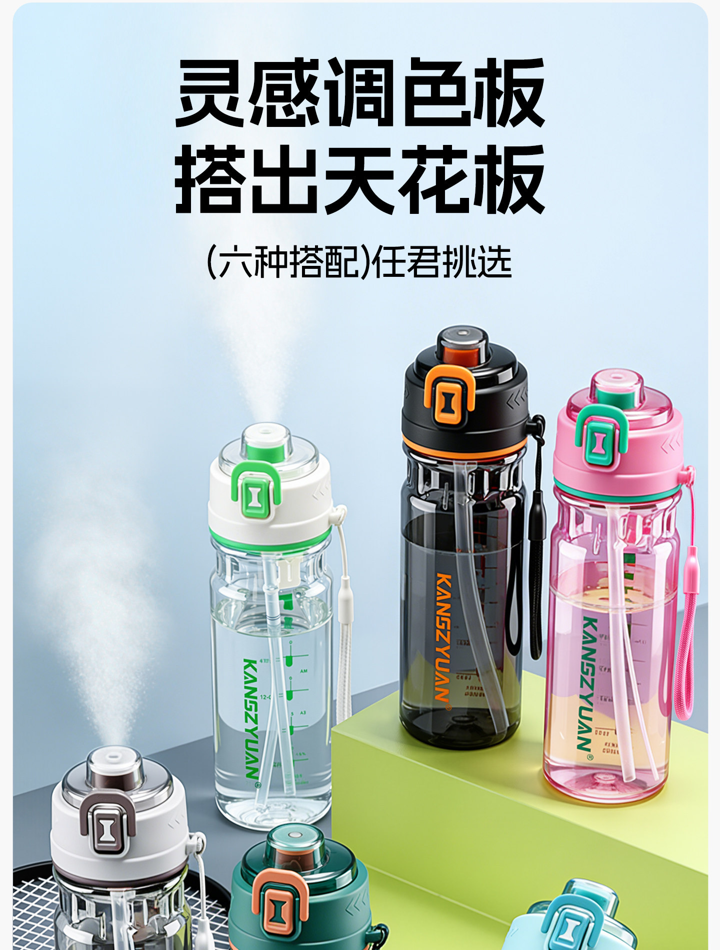 Color Classification Mint Blue 750ml [Imported Tritan + Anti-Fall and Durable] Spray Cooling,Fresh Orange Black 750ml [Imported Tritan + Anti-Fall and Durable] Spray Cooling,Cui Zhu Bai 750ml [Imported Tritan + Drop-Resistant & Durable] Spray Cooling,Khaki Gray 750ml [Imported Tritan + Drop Resistant and Durable] Spray Cooling,Xiachong Green 750ml [Imported Tritan + Anti-Fall and Durable] Spray Cooling,Barbie Pink 750ml [Imported Tritan + Drop-Resistant & Durable] Spray Cooling