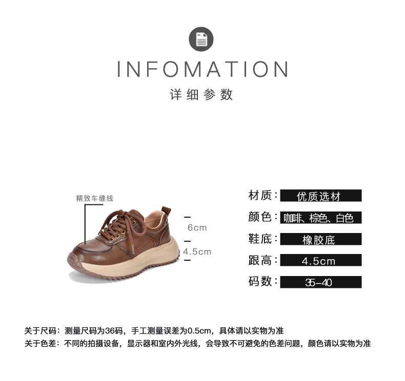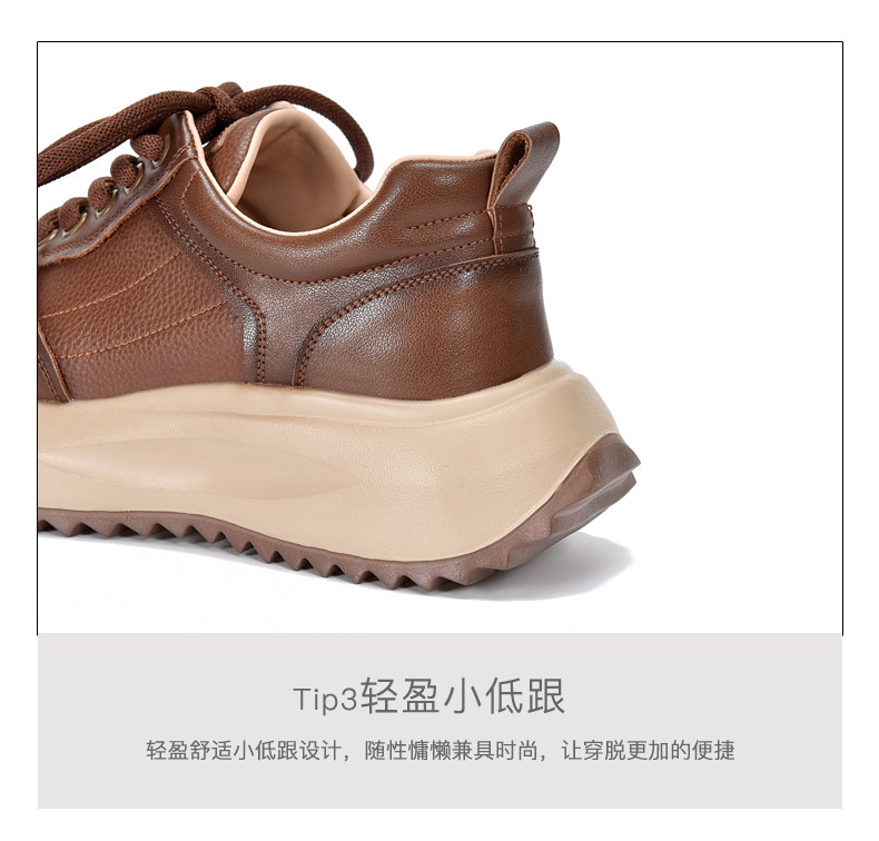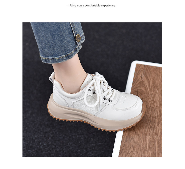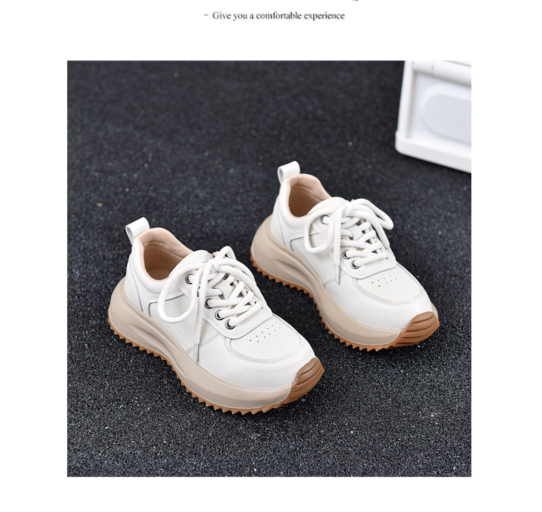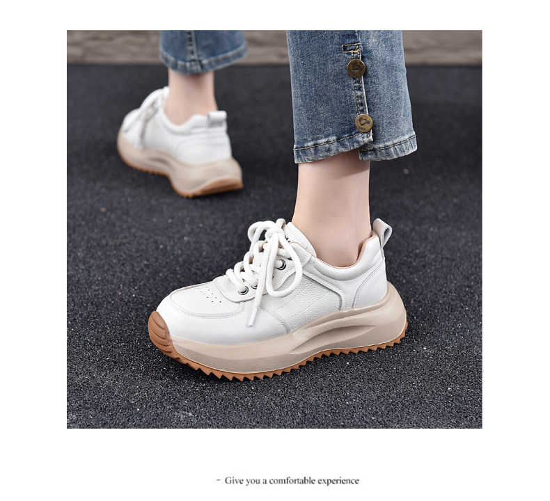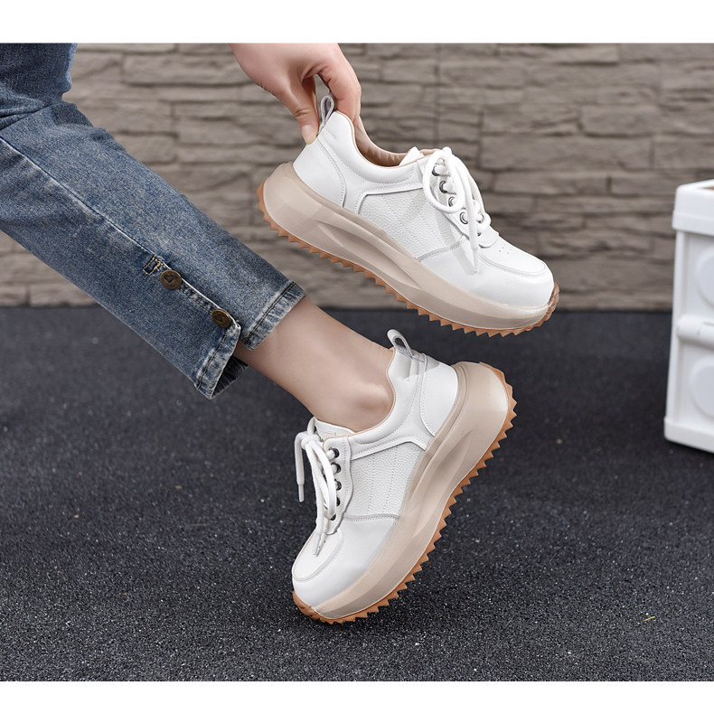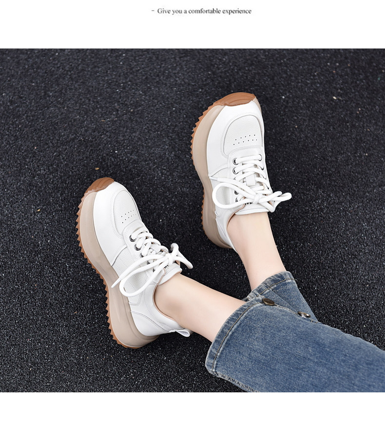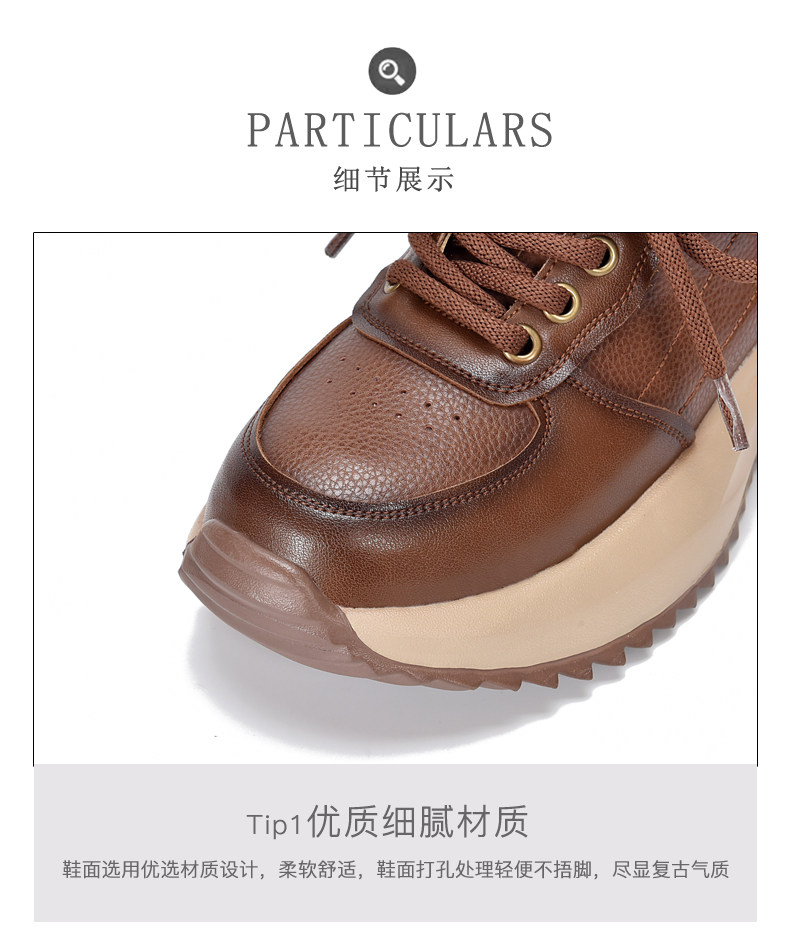 Genuine Leather Women's Shoes 2026 Spring and Autumn Thick-Soled Dad Shoes for Women in Khaki Color, Height-Increasing Versatile Sports Casual Shoes