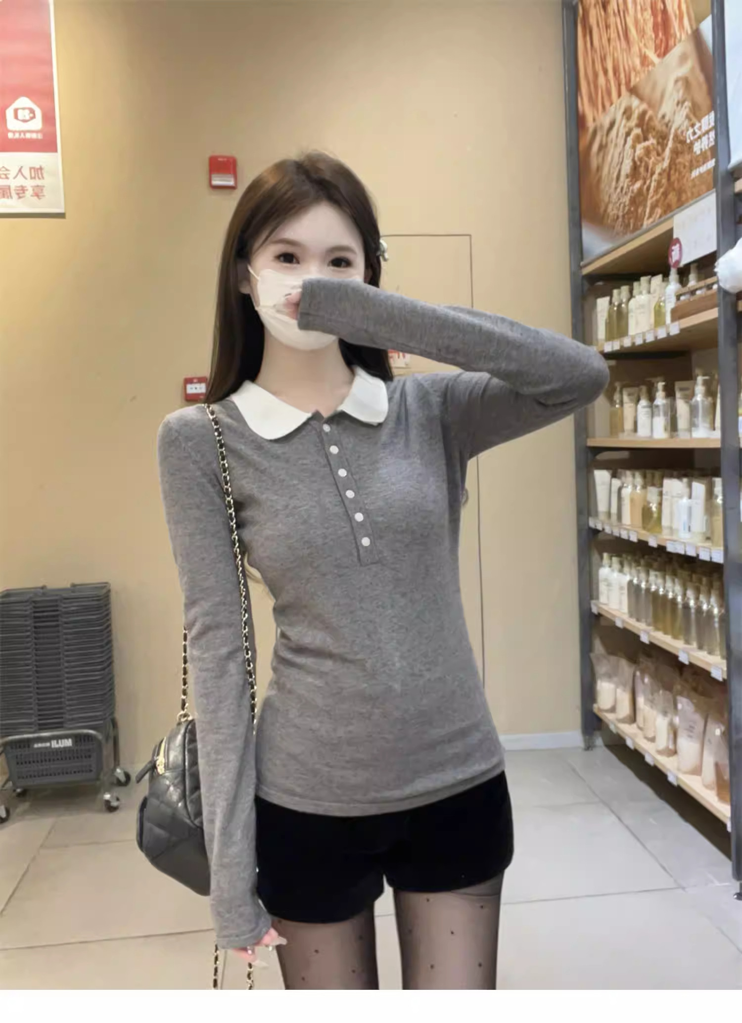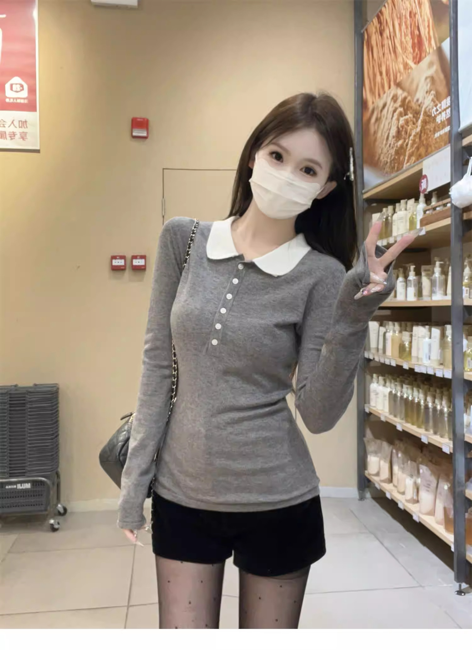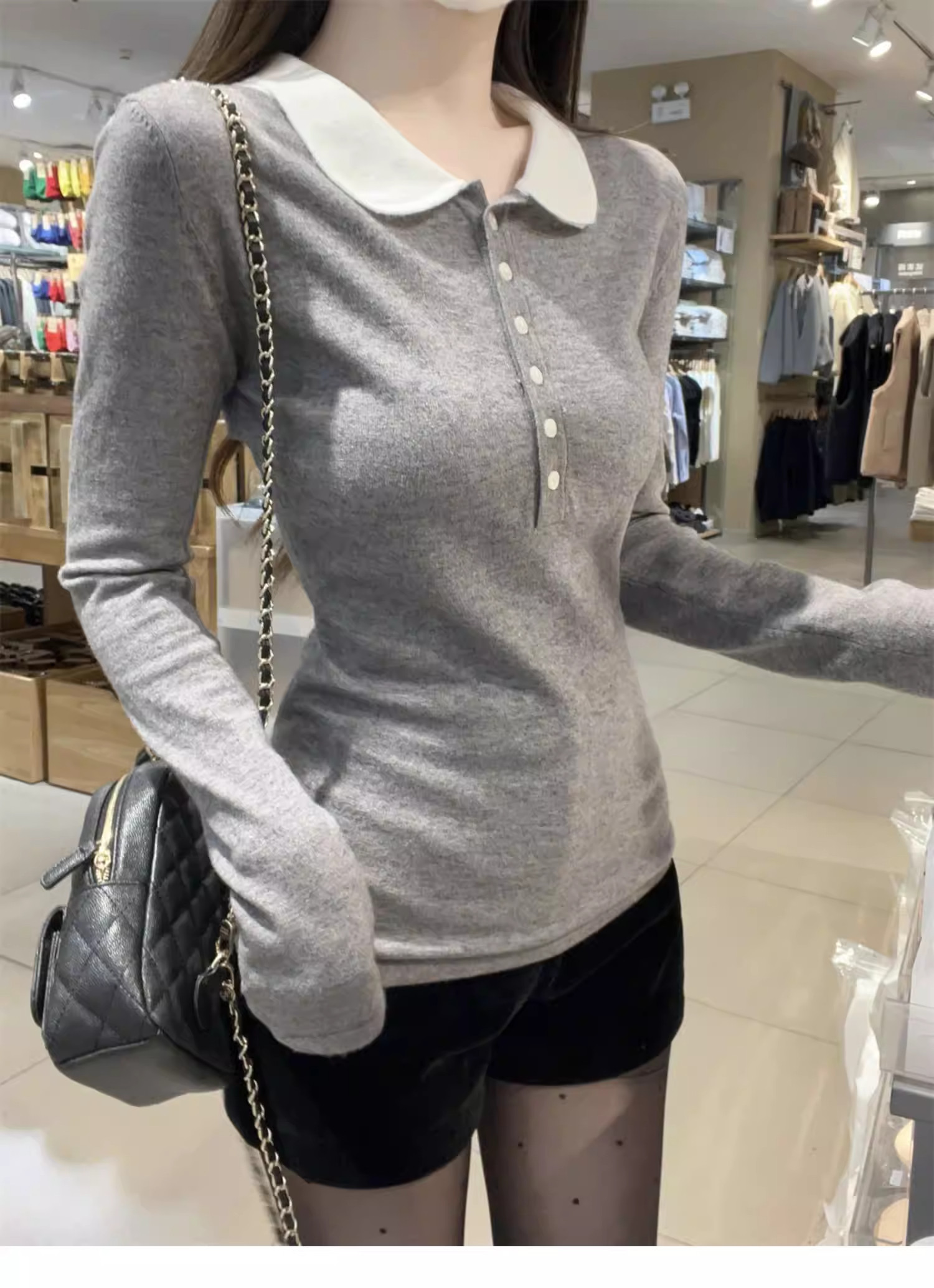 Main colors Gray new style/spring/spring/Korean version/slim/spring/autumn/2025/age-reducing/foreign style/chic/long-sleeved/pure cotton/small shirt/early winter/temperament/casual/sweater/t-shirt/fashionable/chic/inner wear/small/women's style/high-end
