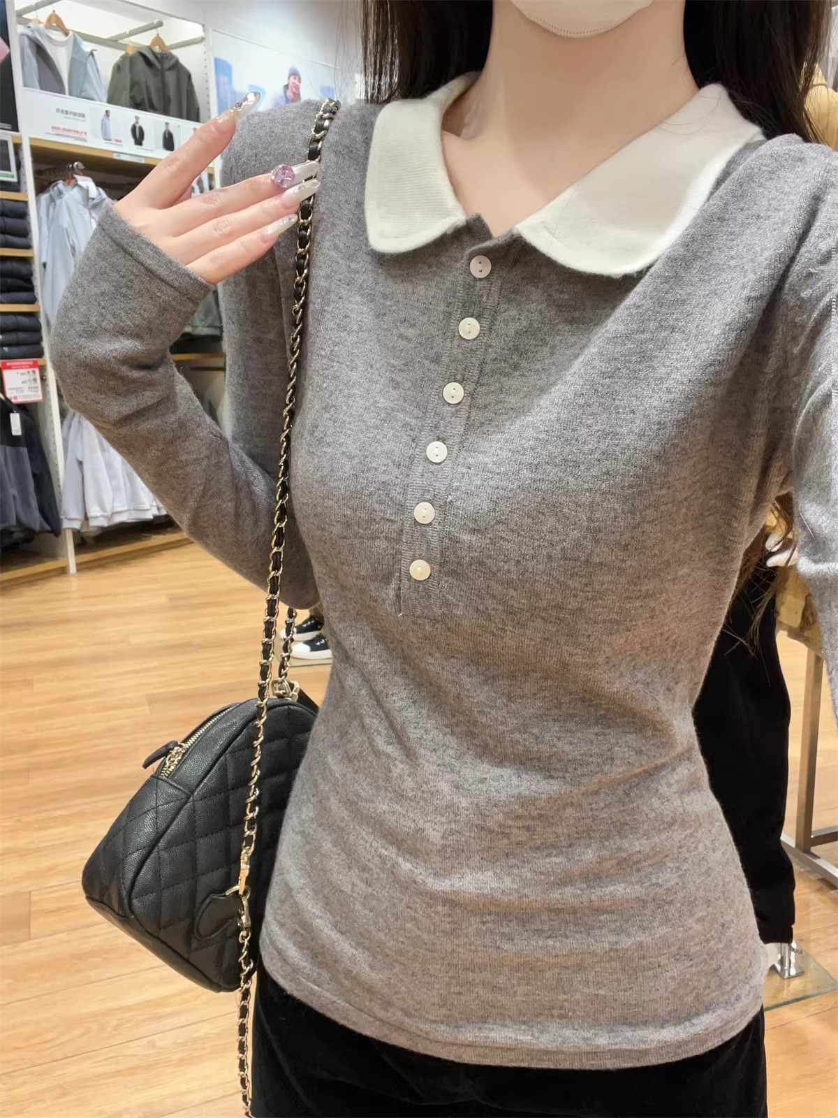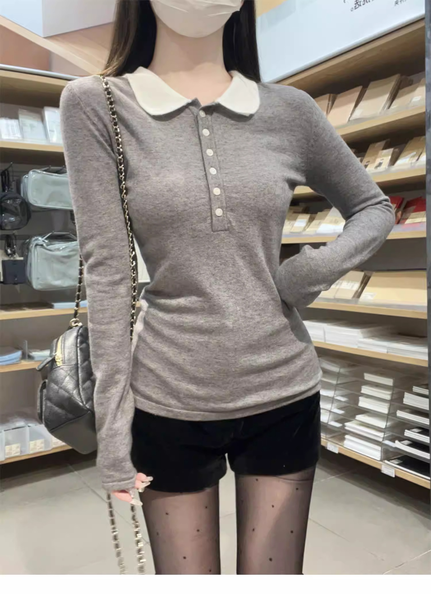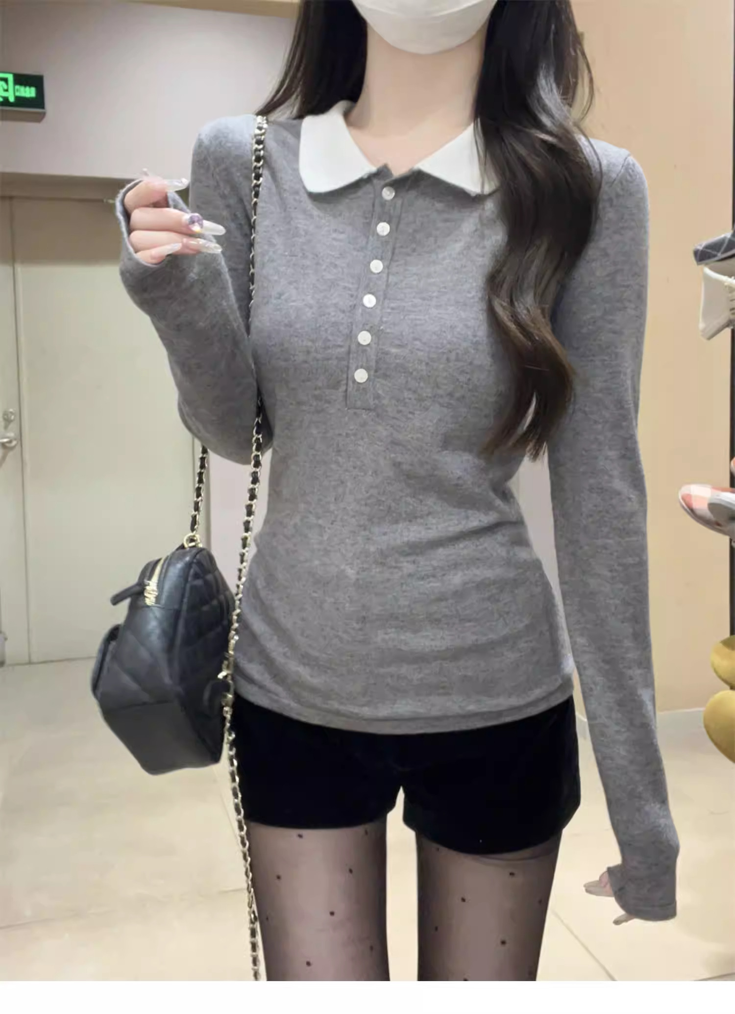 Main colors Gray new style/spring/spring/Korean version/slim/spring/autumn/2025/age-reducing/foreign style/chic/long-sleeved/pure cotton/small shirt/early winter/temperament/casual/sweater/t-shirt/fashionable/chic/inner wear/small/women's style/high-end