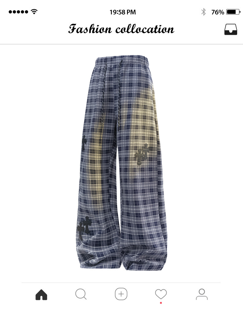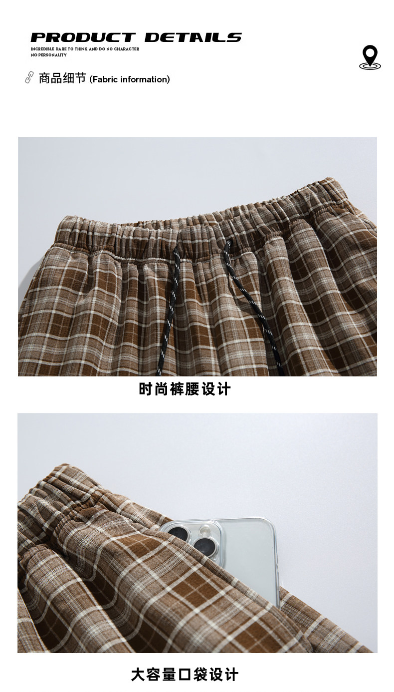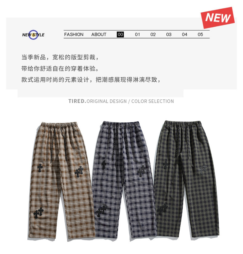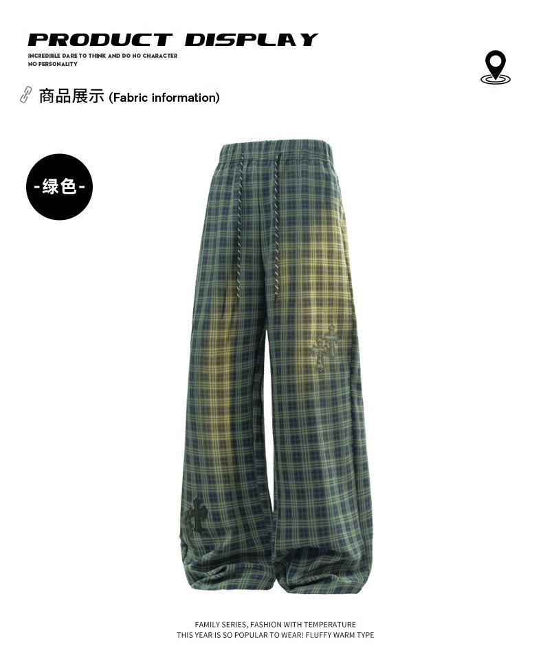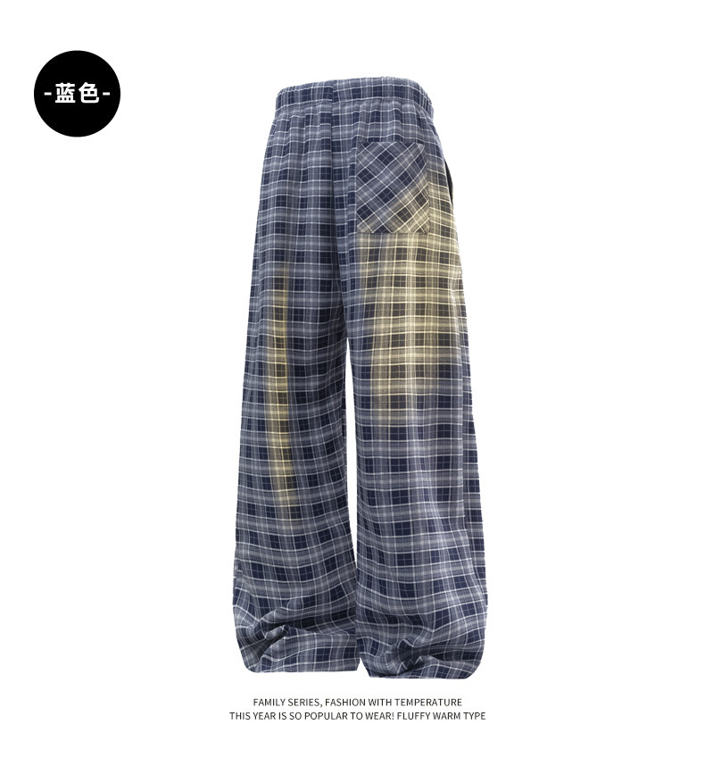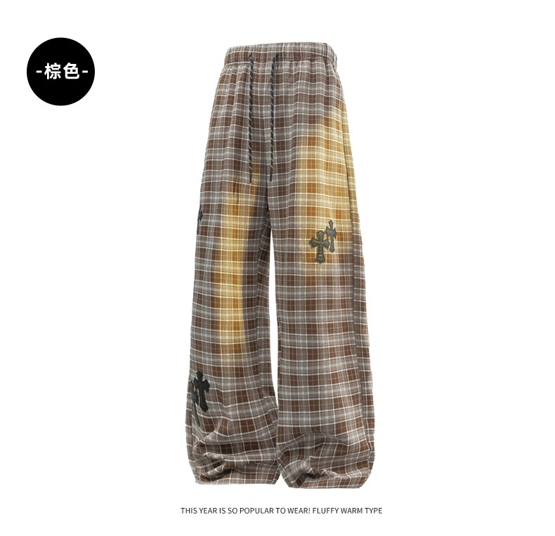 Wassup Dozen American-Style Men's Plaid Pants 2026 New Casual Pants Loose Straight Wide-Leg Long Pants High Street Style