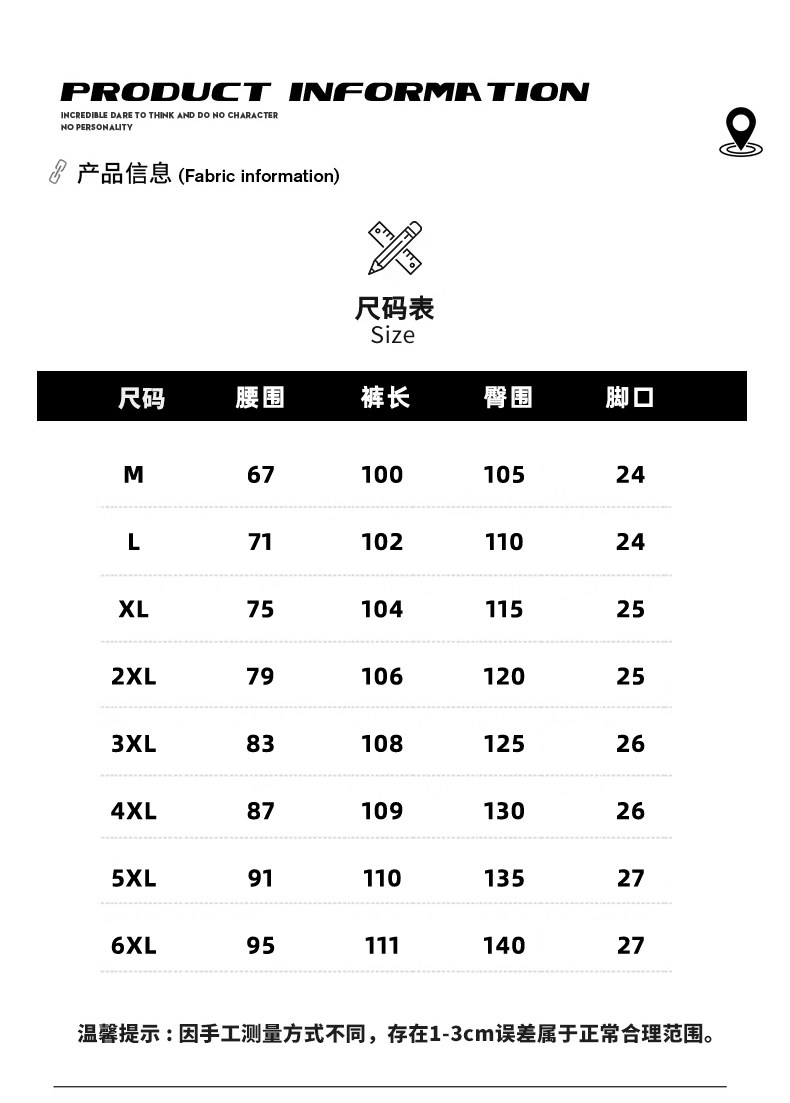 Outseam (cm) 99 cm 101.5 cm 104 cm 106.5 cm 109 cm