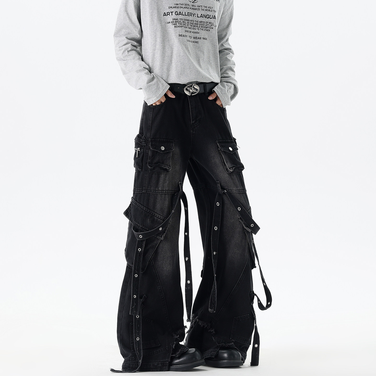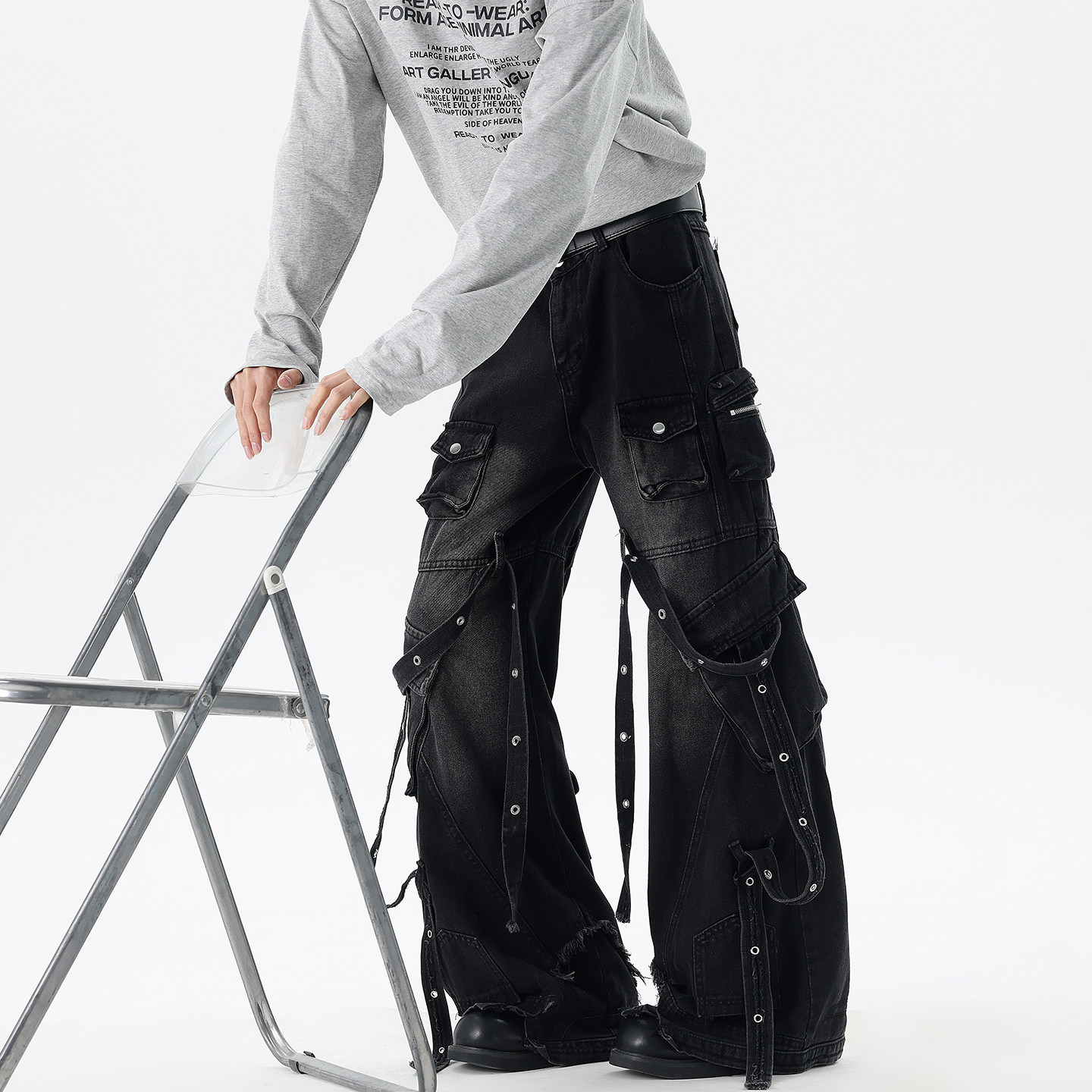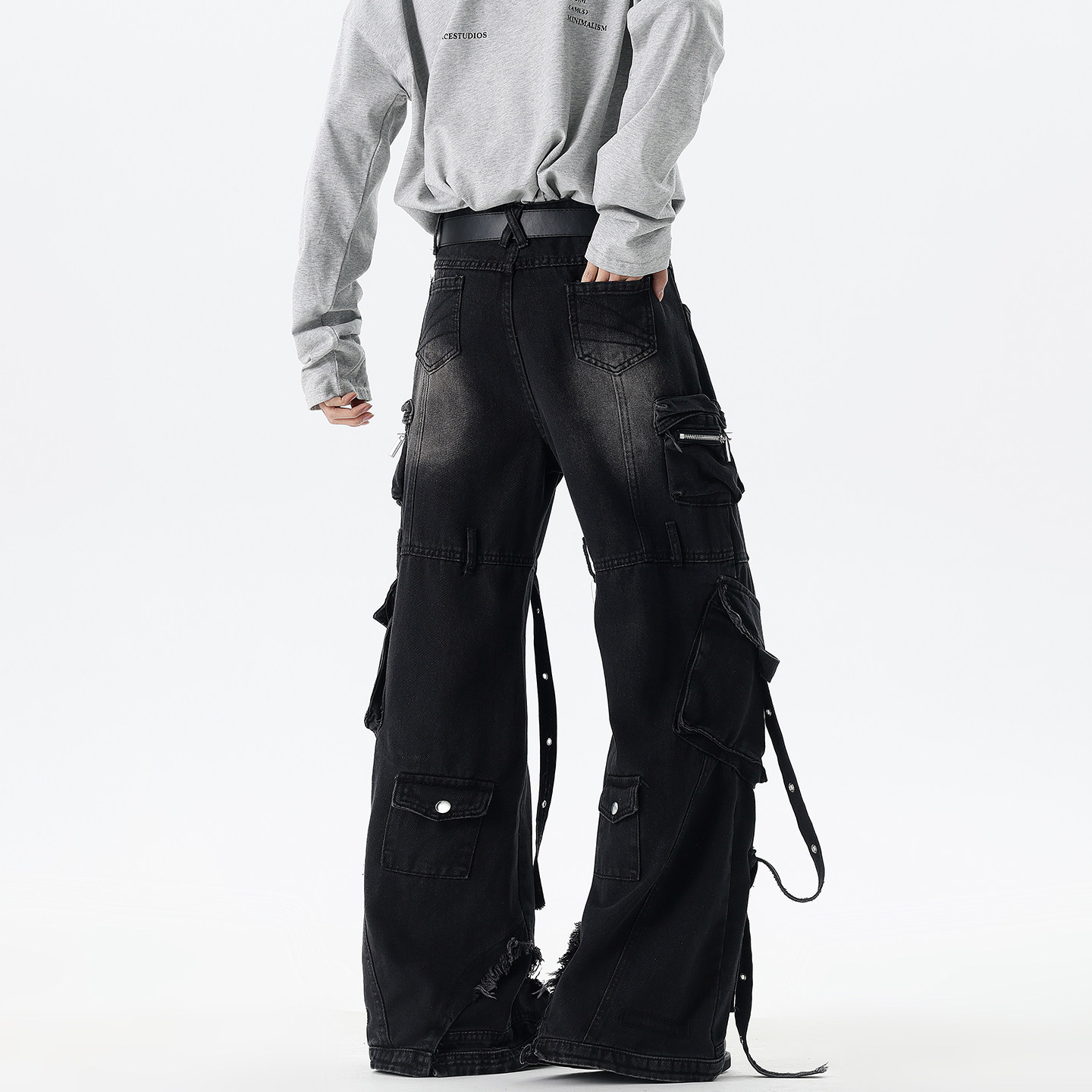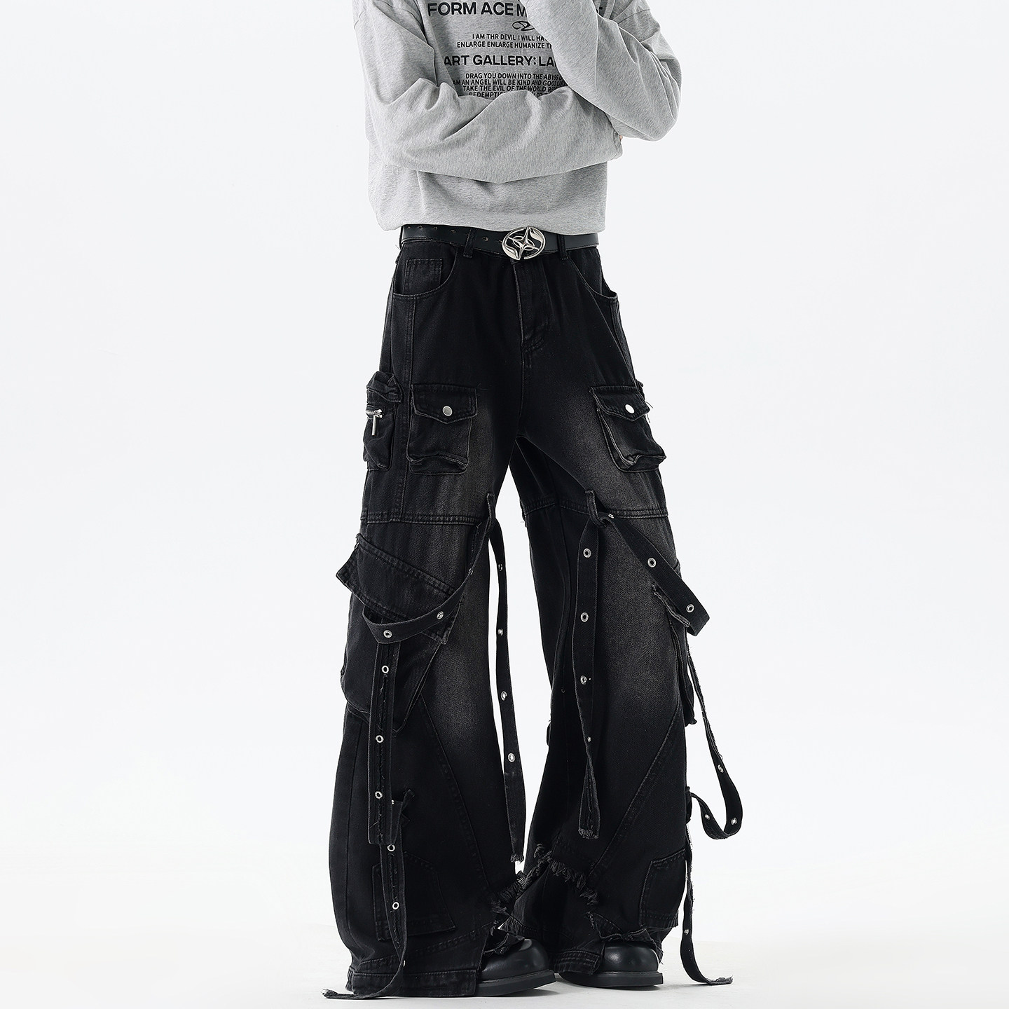 Dark Style High Street Multi-Pocket Workwear Scimitar Jeans for Men and Women, American Trendy Brand with a High-End Feel, Cool and Stylish Pants