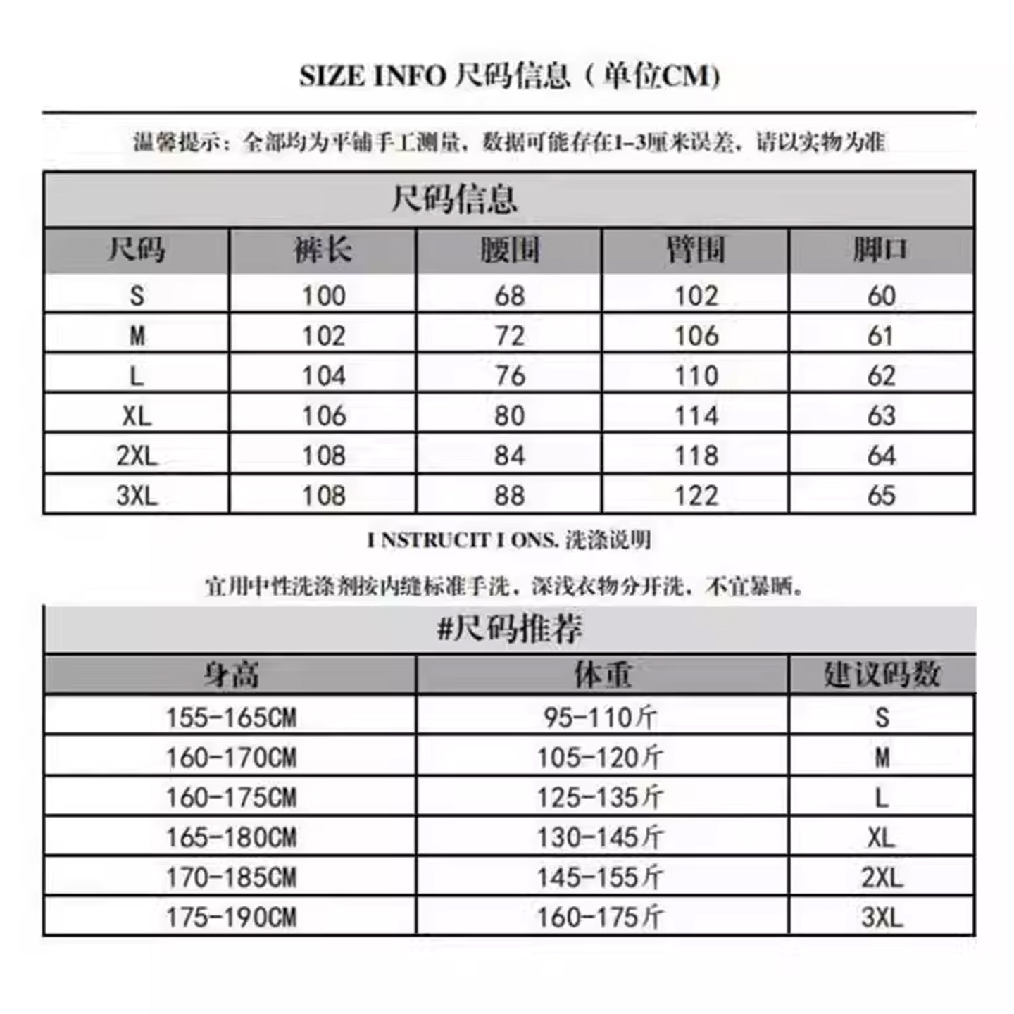 China (cm) 160-165/84-86 165-170 / 88-90 167-172 / 92-96 168-173 / 98-102 170-176 / 106-110